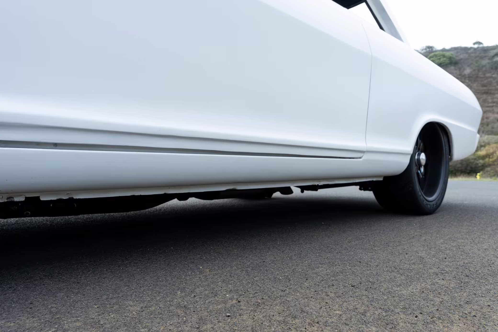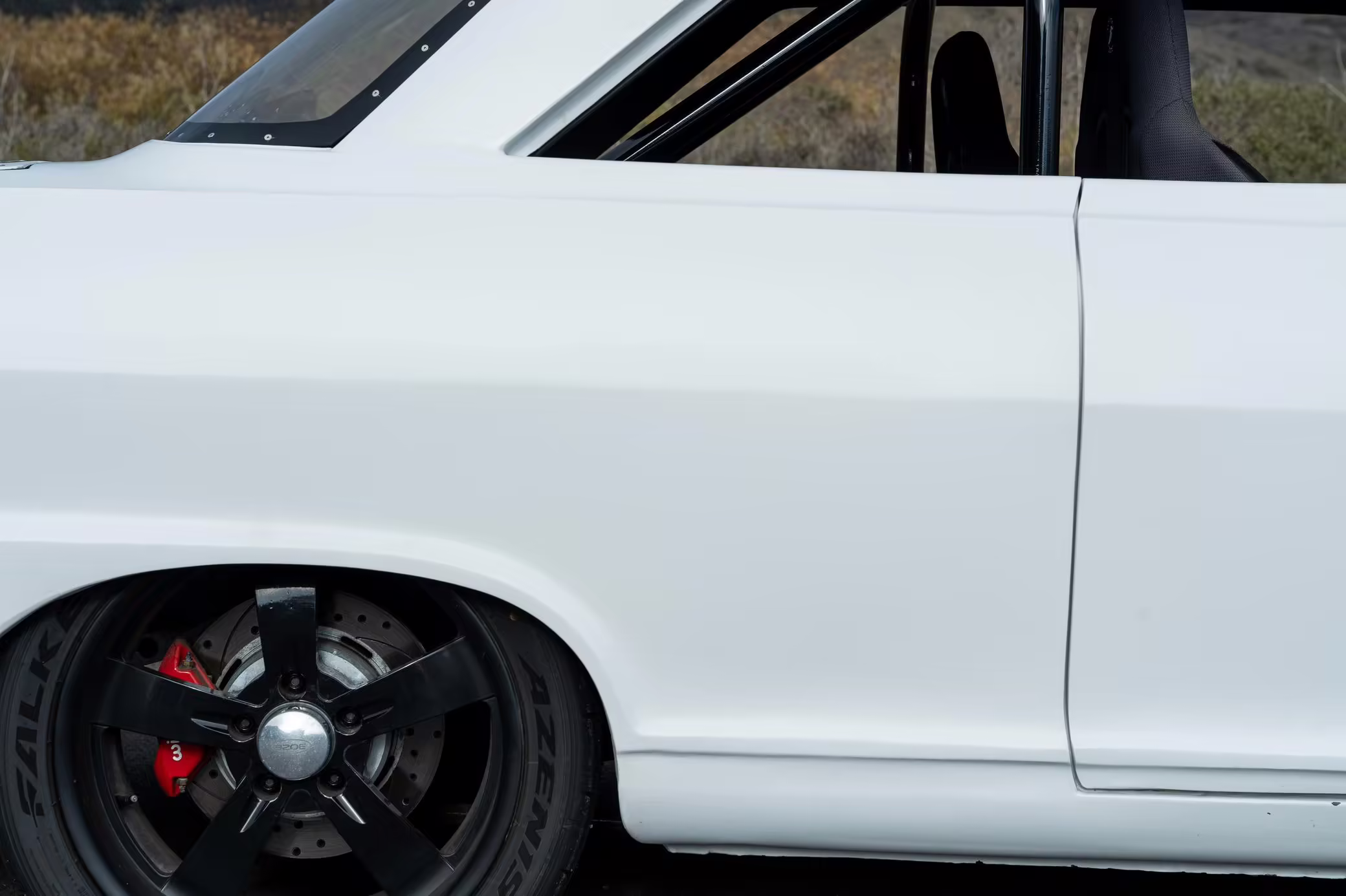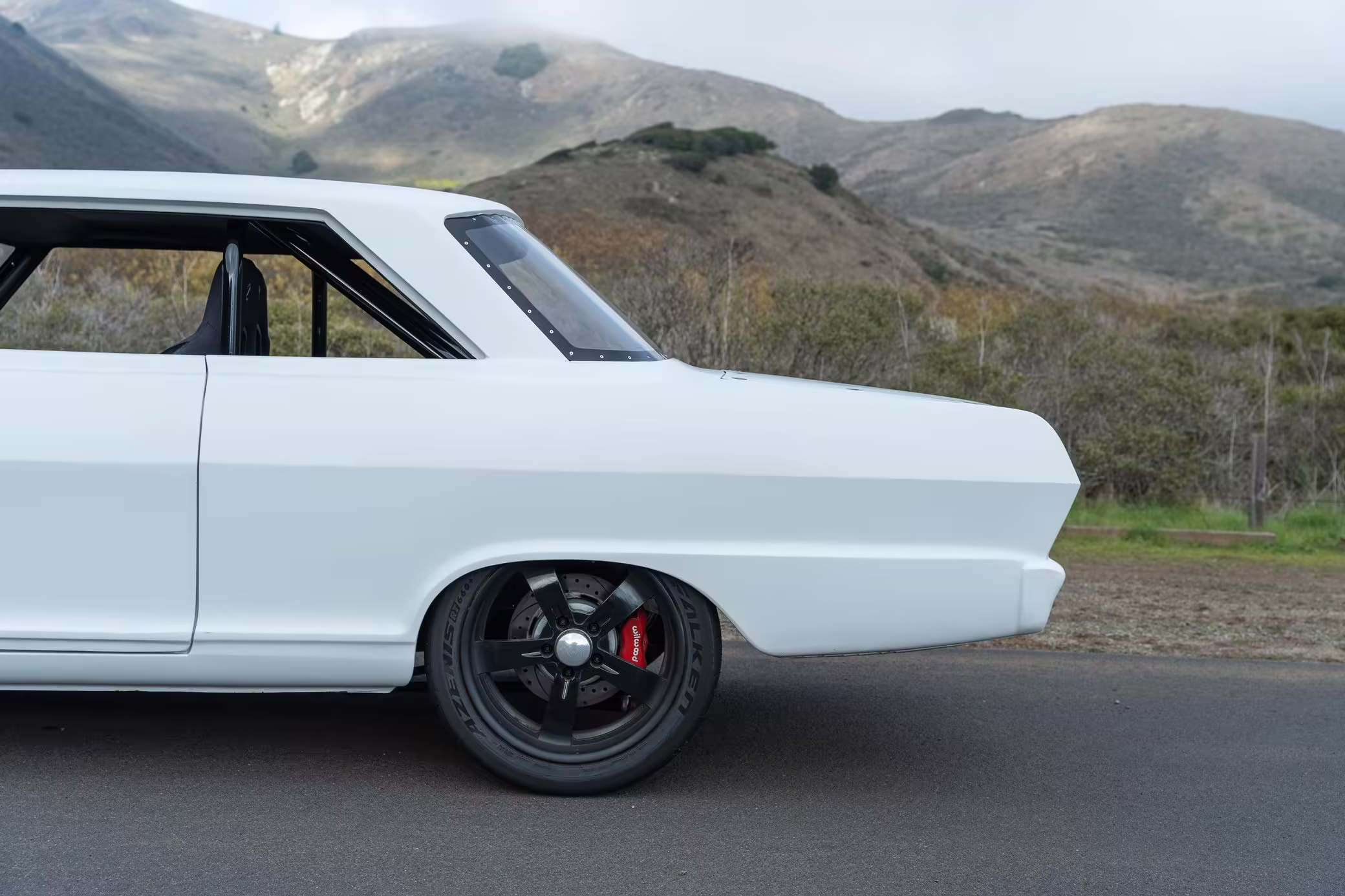 • This Chevy II has been extensively modified for racing. Its factory-fitted drivetrain has reportedly been replaced by a General Motors-sourced 6.2-liter LS3 V8 and a Tremec T-56 6-speed manual transmission.