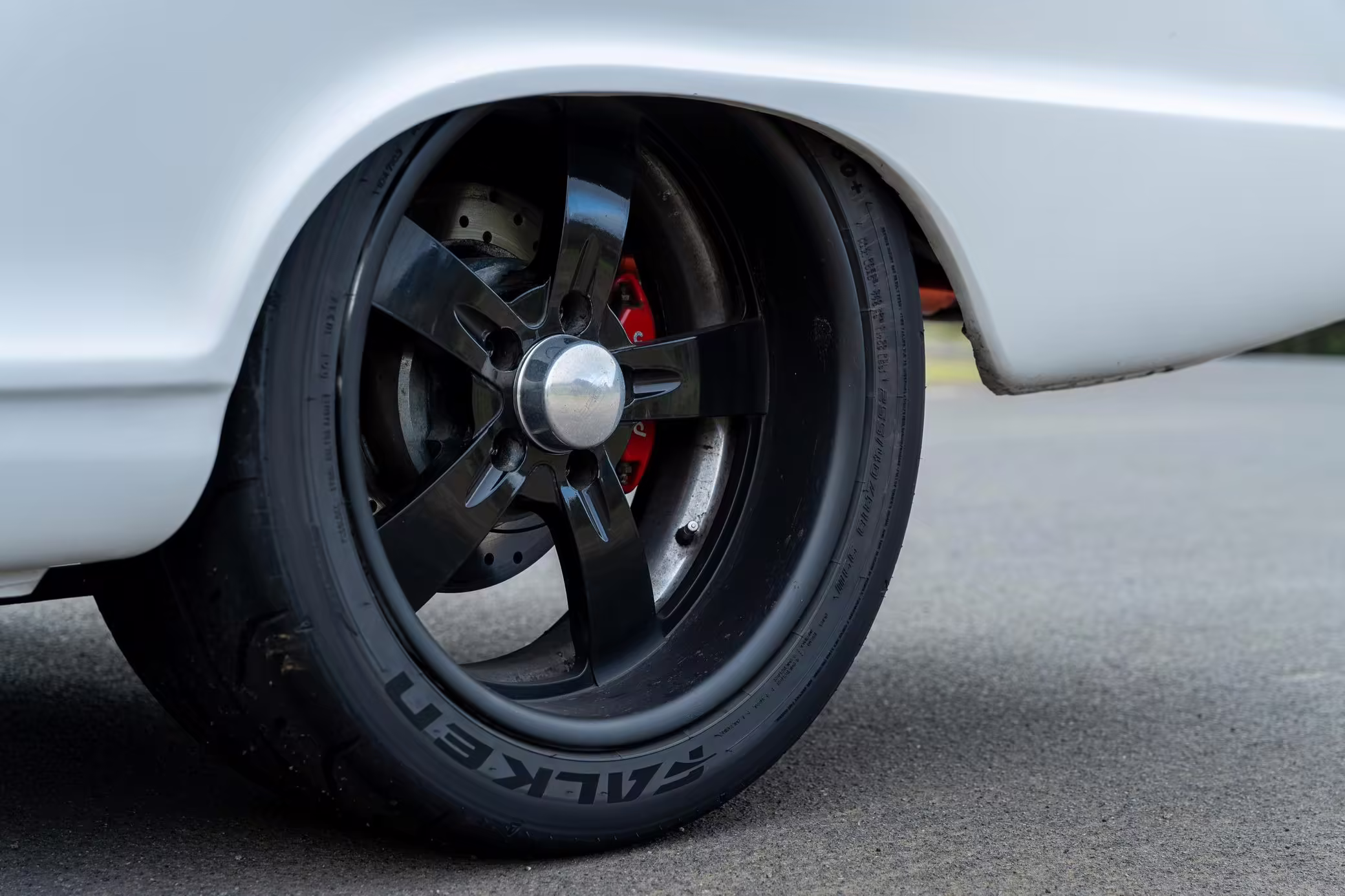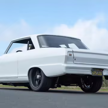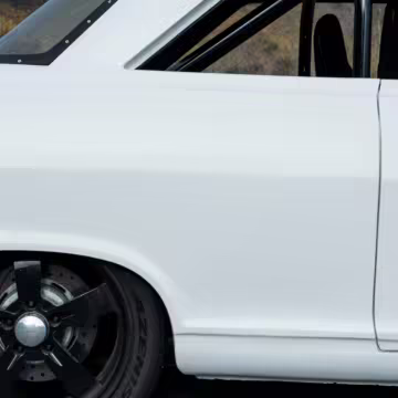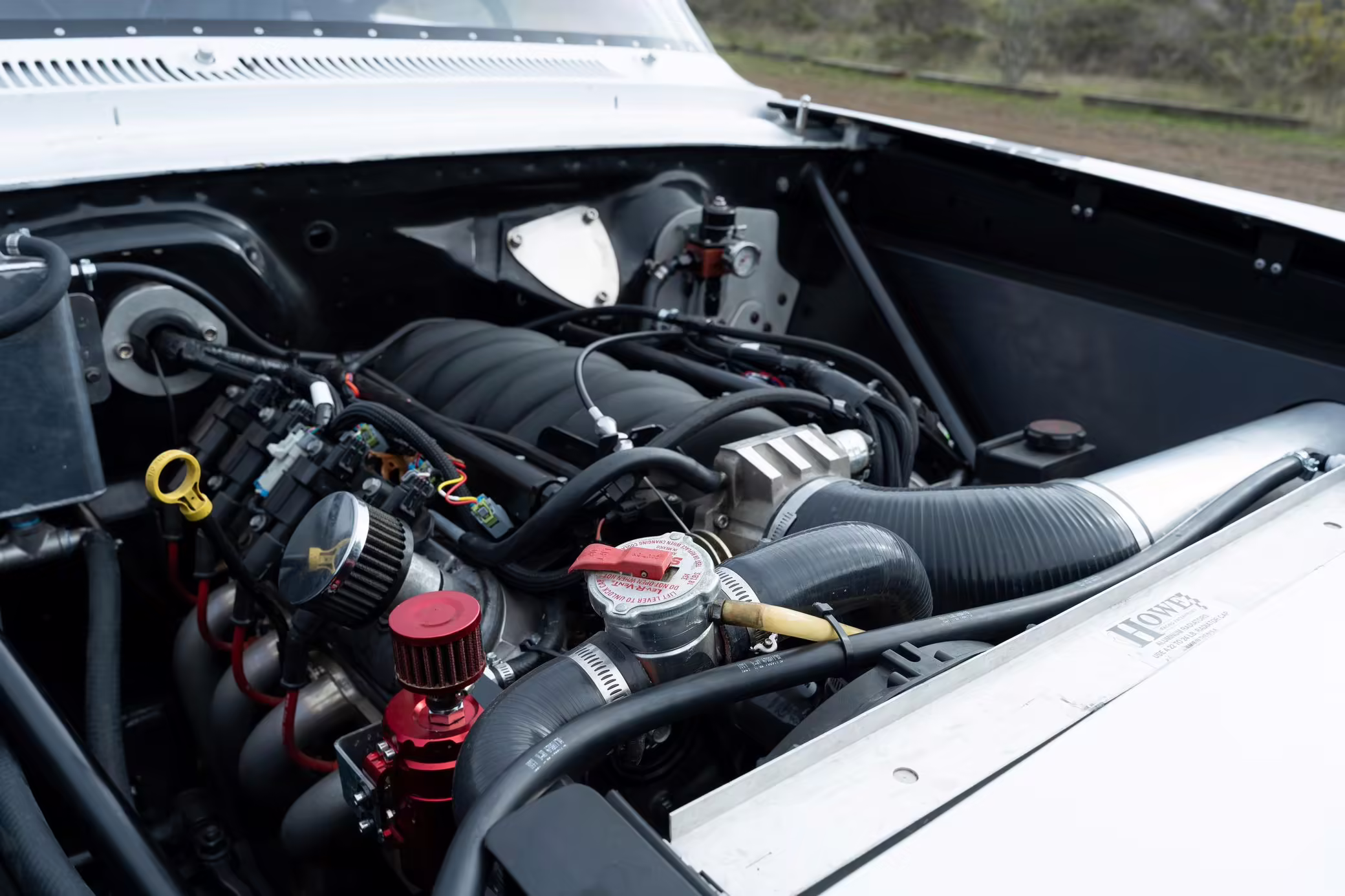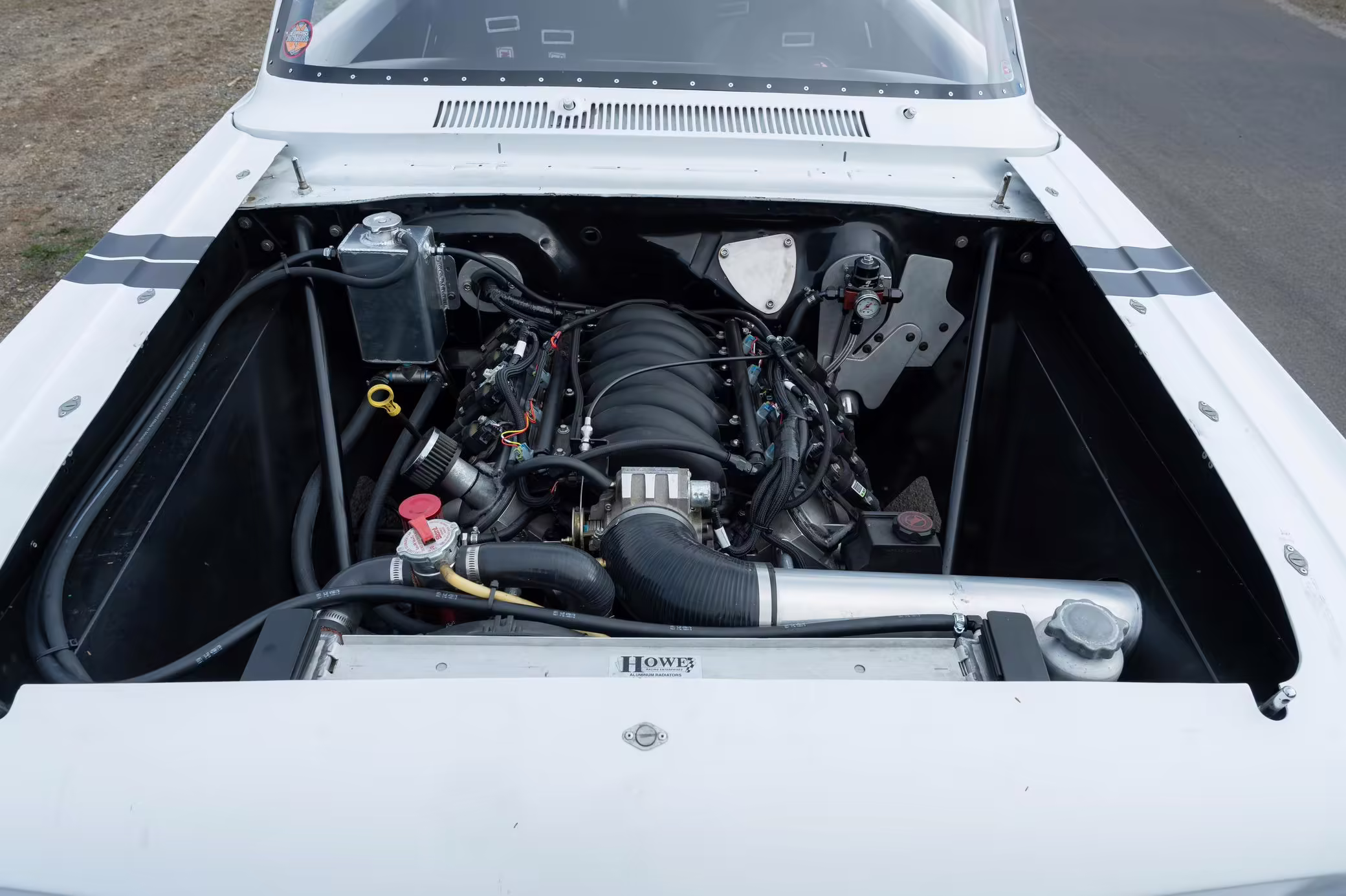 • This Chevy II has been extensively modified for racing. Its factory-fitted drivetrain has reportedly been replaced by a General Motors-sourced 6.2-liter LS3 V8 and a Tremec T-56 6-speed manual transmission.