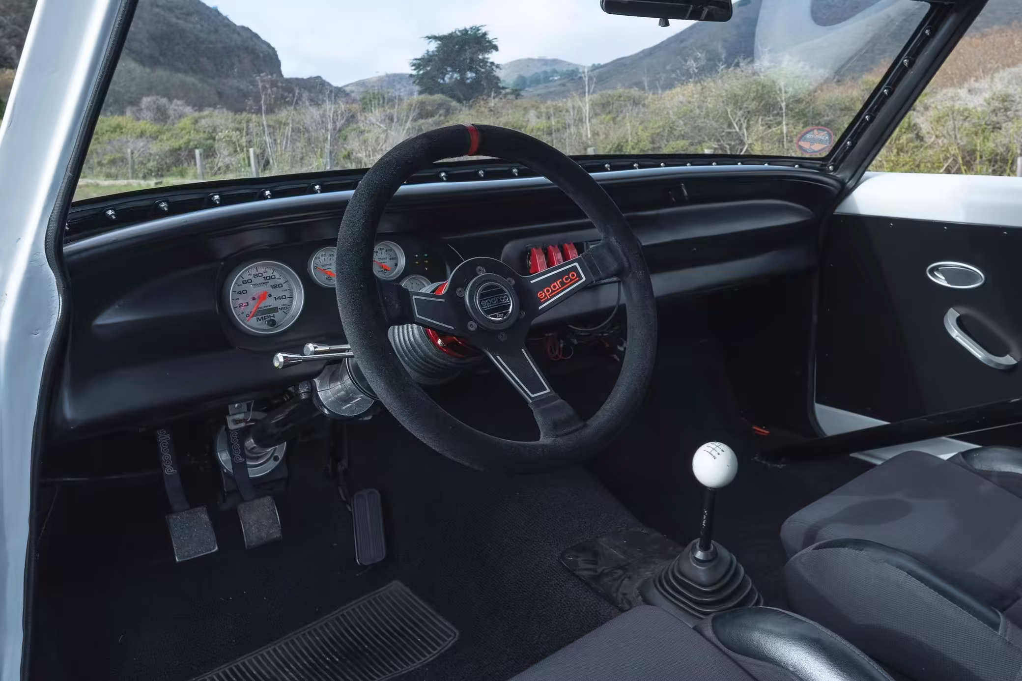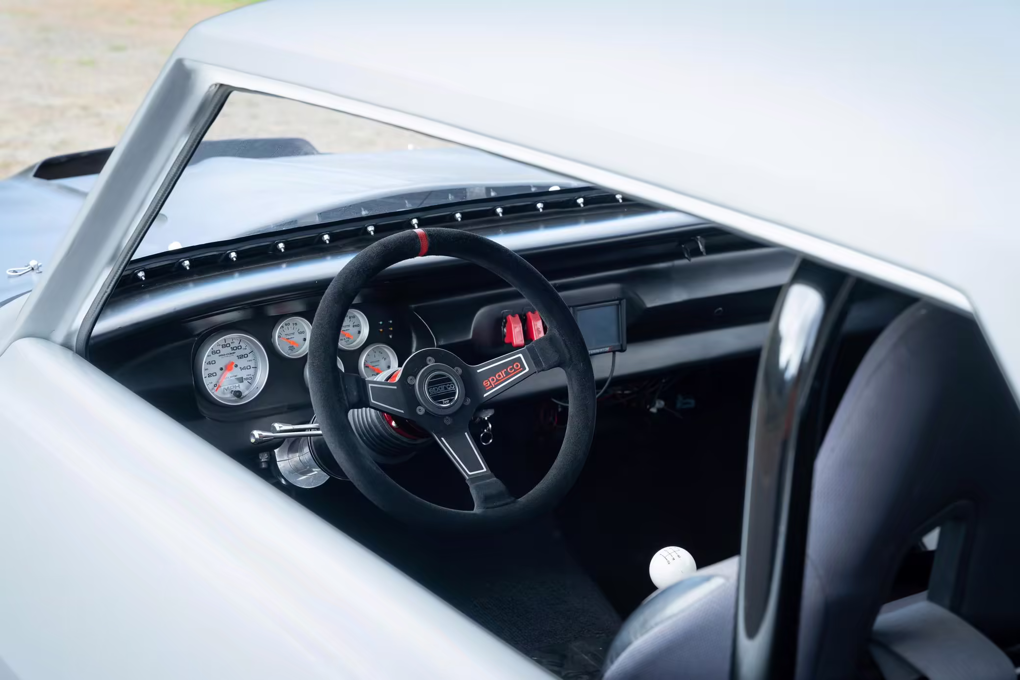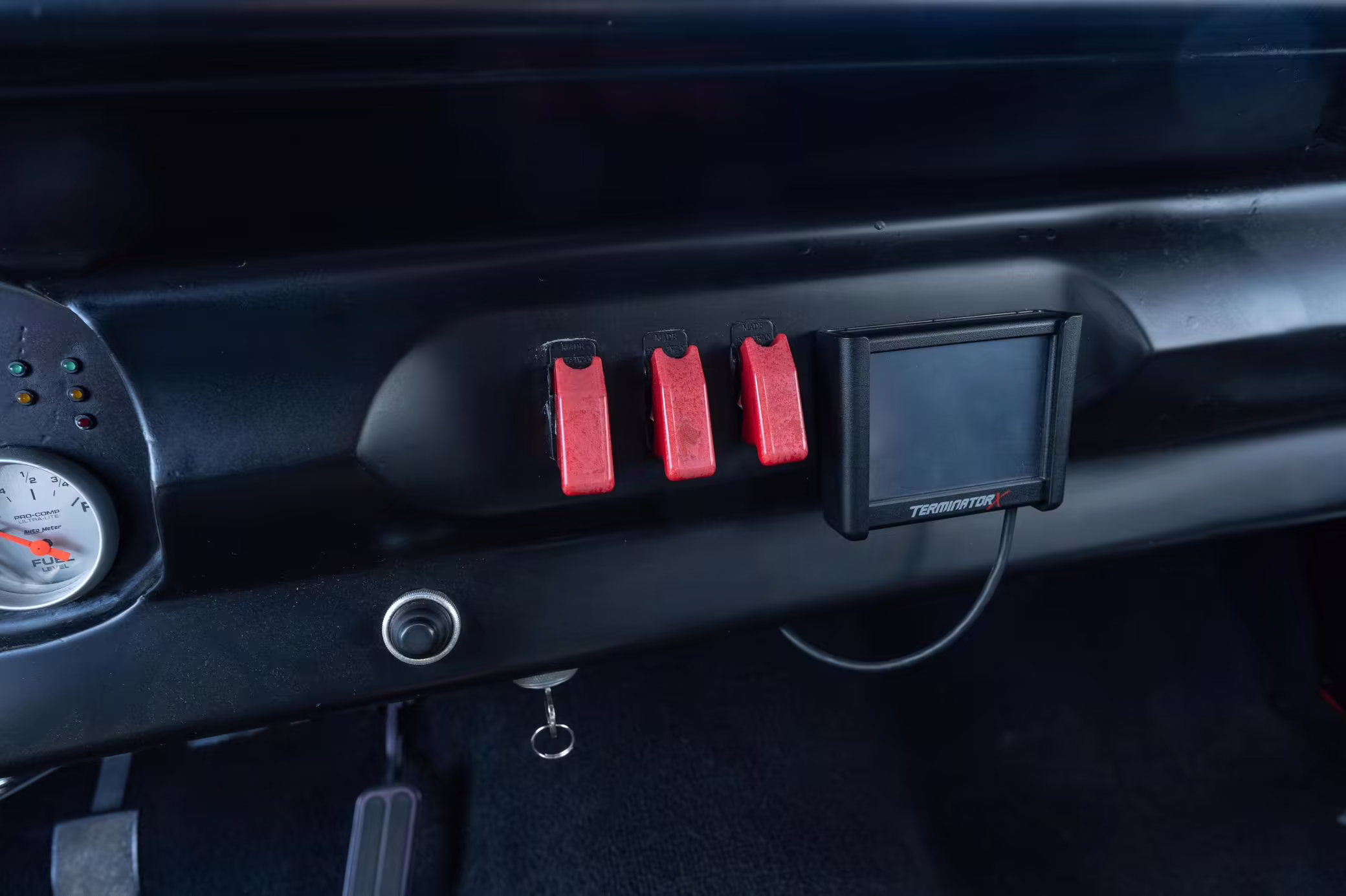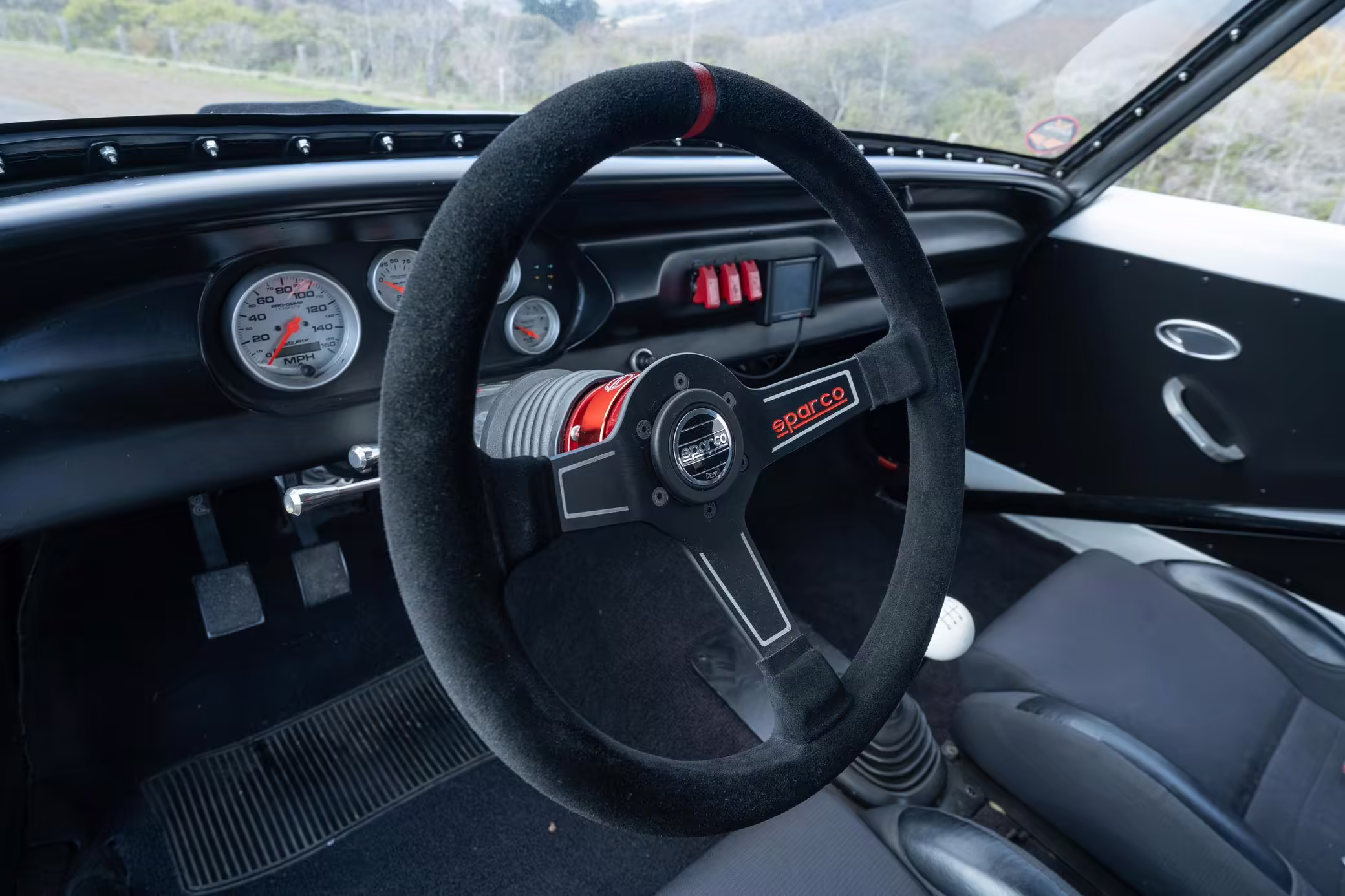 • A partial list of notable currently installed equipment reported by the seller includes a Holley Terminator X engine management system, a trunk-mounted fuel cell, a Total Cost Involved front and rear suspension system, Wilwood Engineering front and rear disc brakes, fiberglass body panels, and Corbeau front seats.