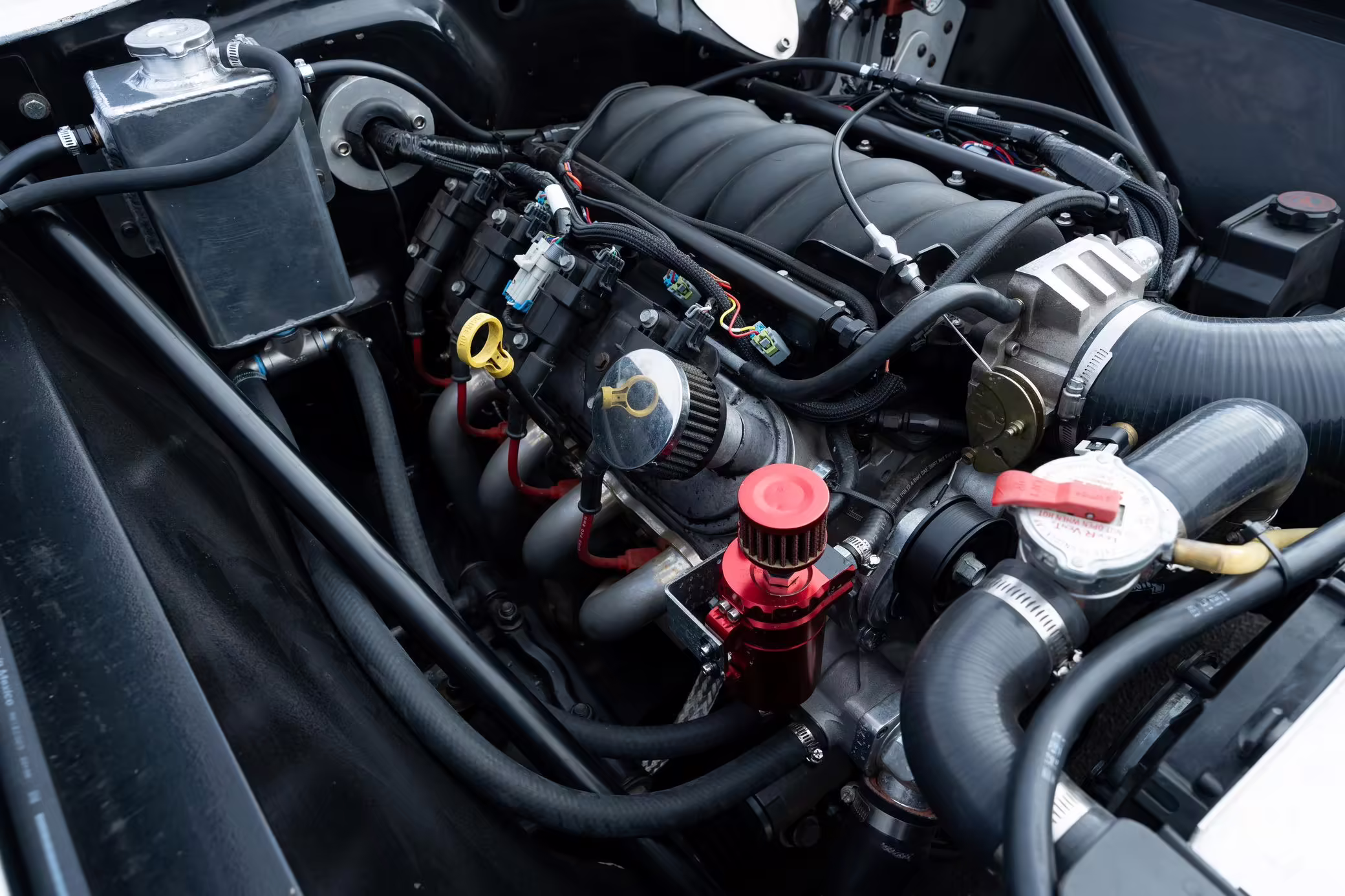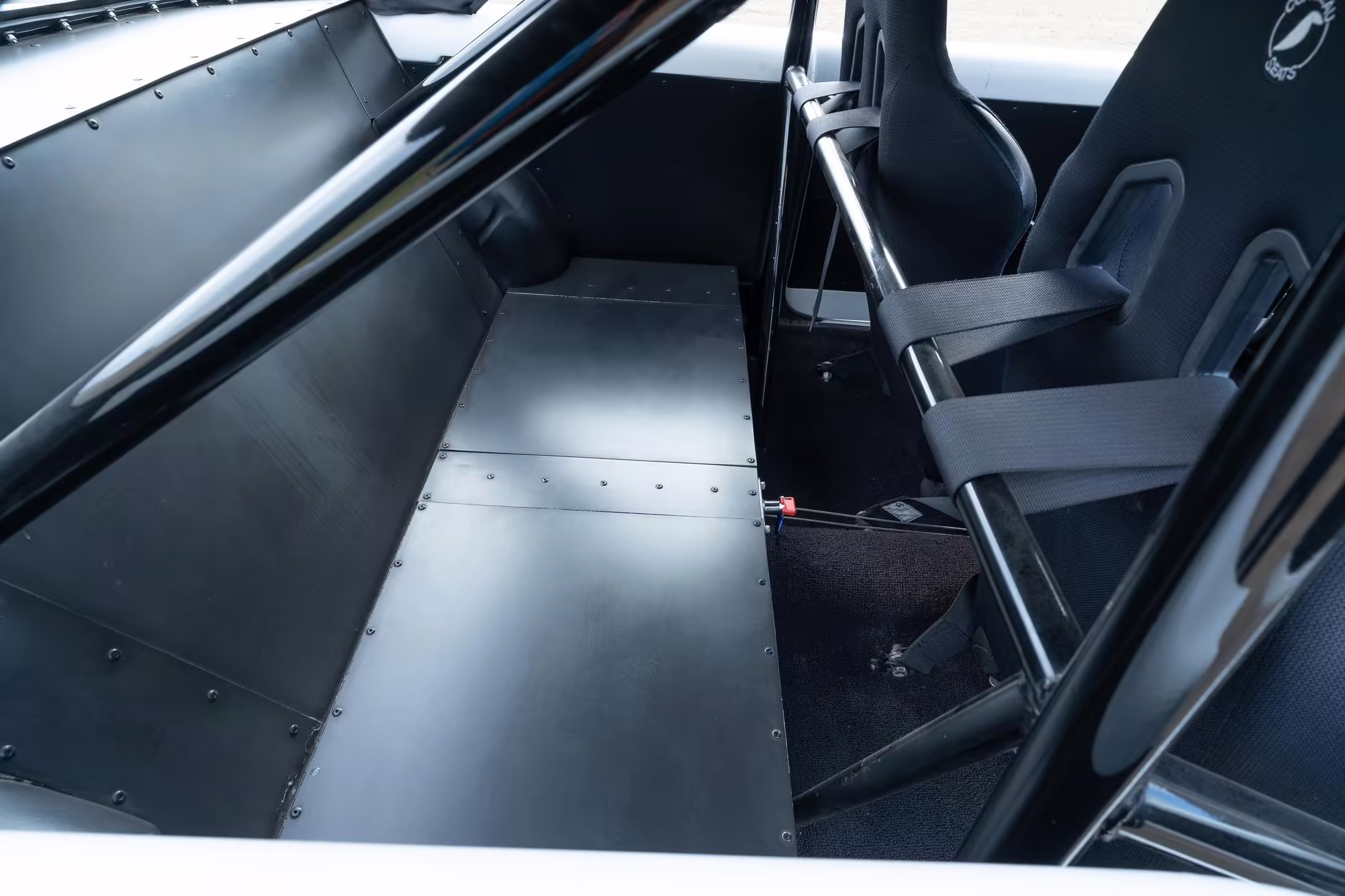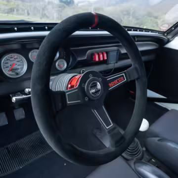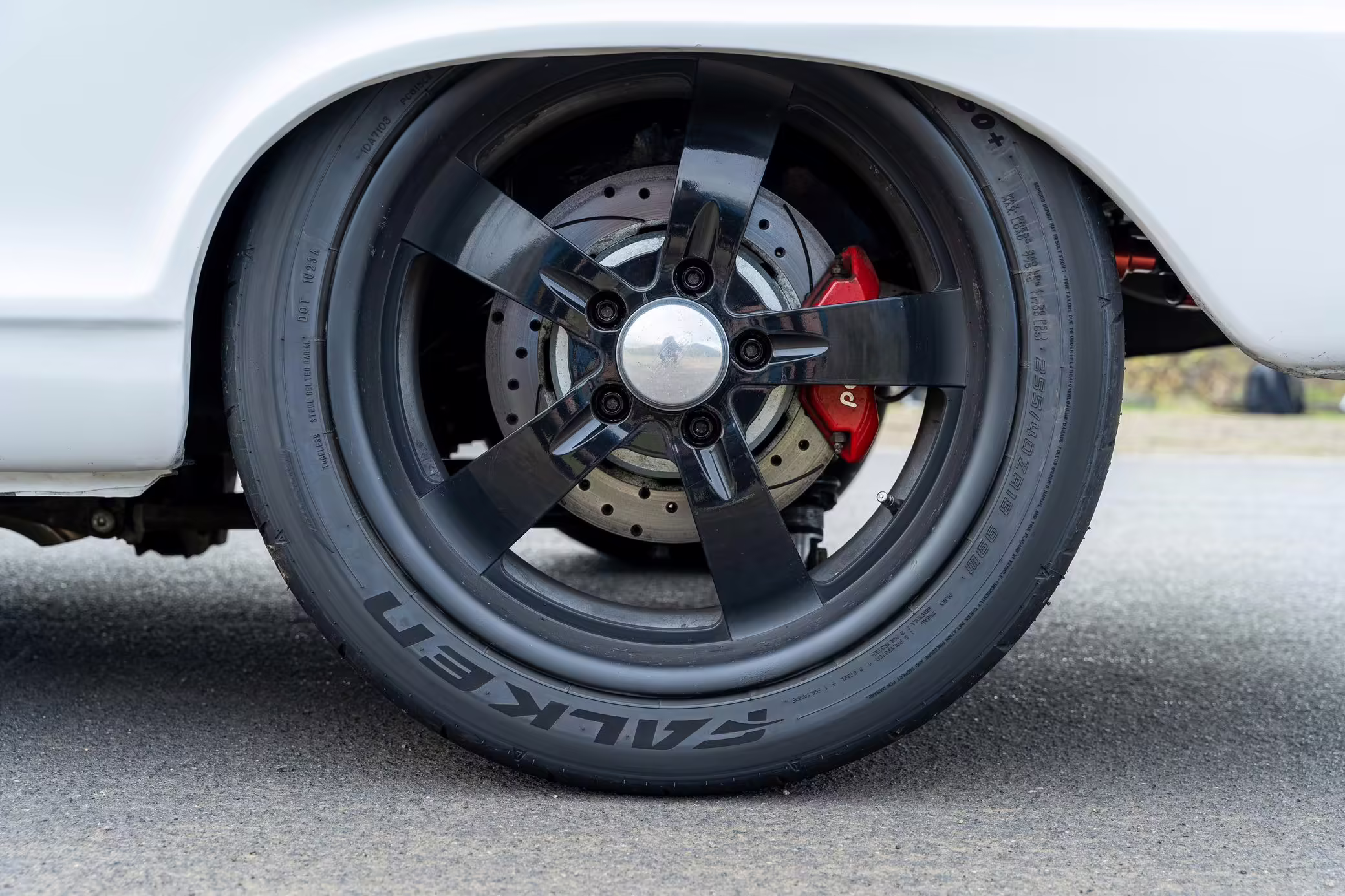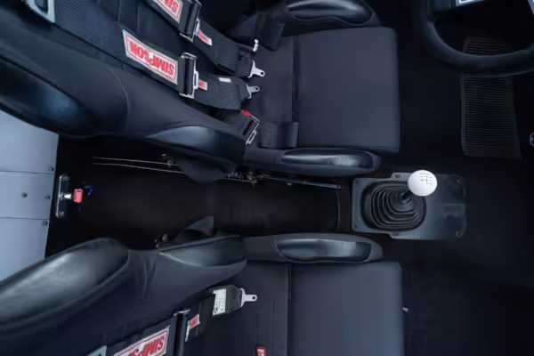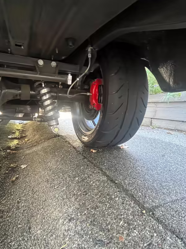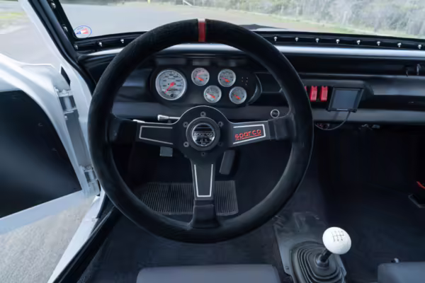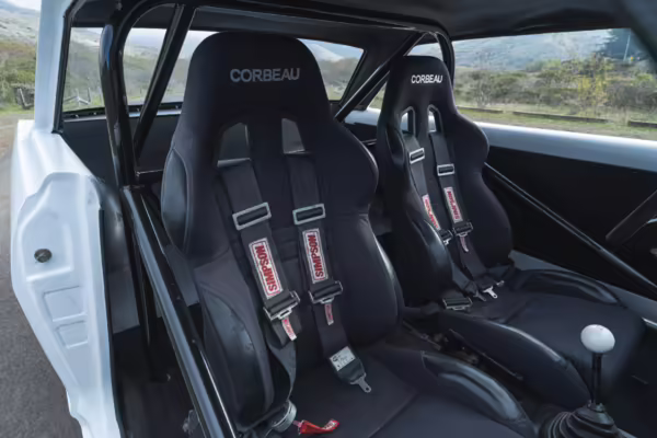 • A partial list of notable currently installed equipment reported by the seller includes a Holley Terminator X engine management system, a trunk-mounted fuel cell, a Total Cost Involved front and rear suspension system, Wilwood Engineering front and rear disc brakes, fiberglass body panels, and Corbeau front seats.