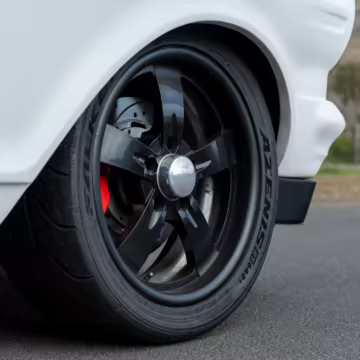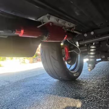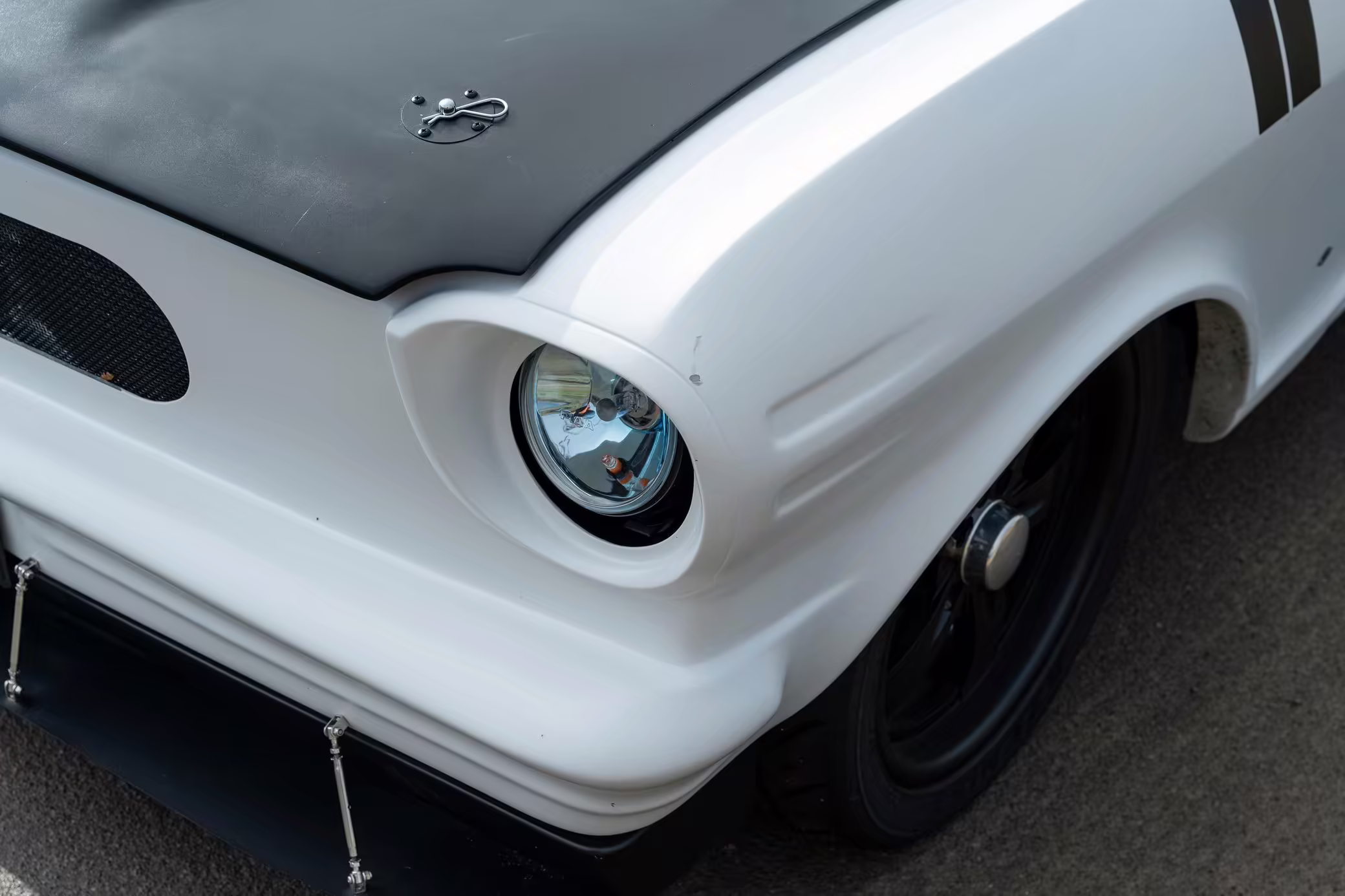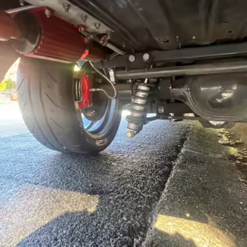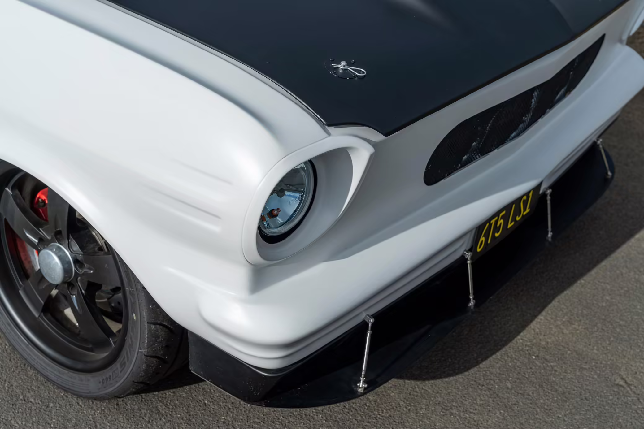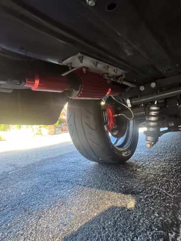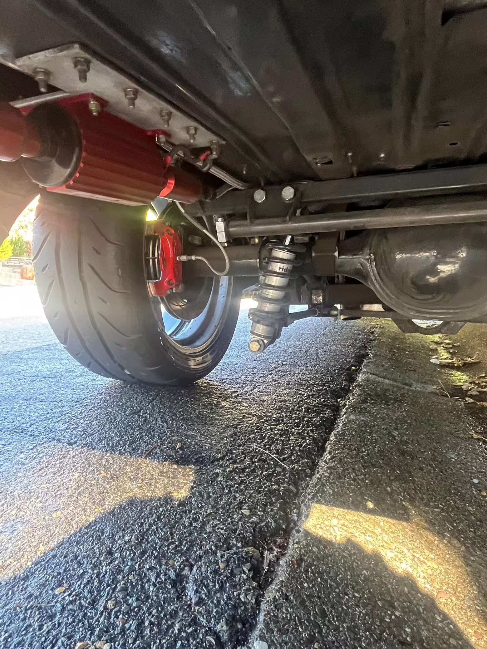 • A partial list of notable currently installed equipment reported by the seller includes a Holley Terminator X engine management system, a trunk-mounted fuel cell, a Total Cost Involved front and rear suspension system, Wilwood Engineering front and rear disc brakes, fiberglass body panels, and Corbeau front seats.