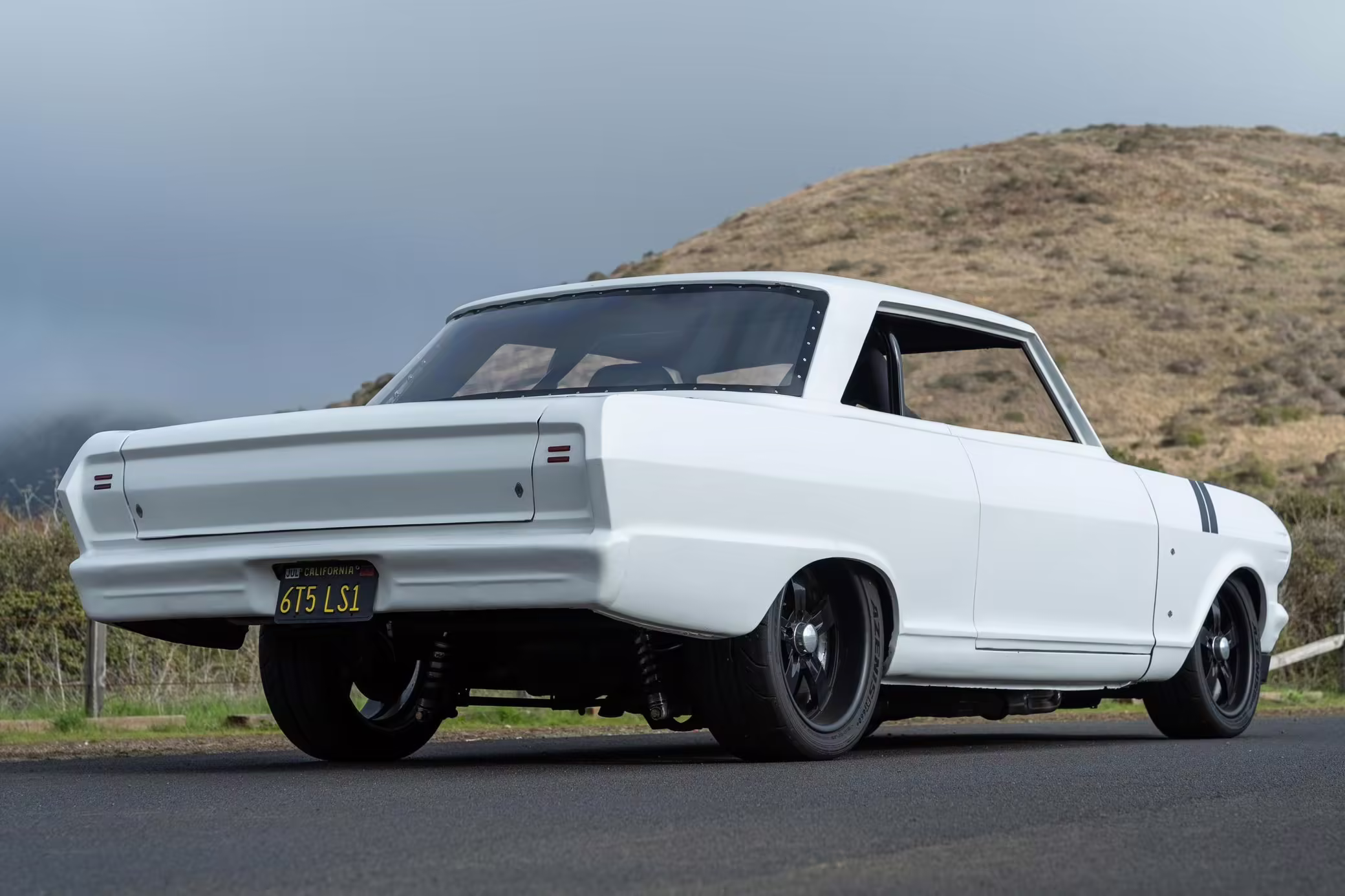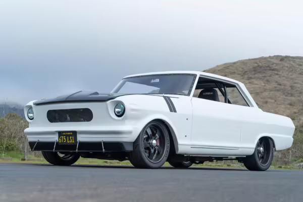 Although Chevrolet marketed it as a sporty coupe, the first-generation Chevy II’s image was that of an economical sedan. But when muscle car and hot rod enthusiasts realized the car’s performance potential thanks to easy engine swap capabilities and light weight, the Chevy II’s reputation changed. This particular Chevy II takes that approach to an extreme, as it touts a swapped-in 6.2-liter LS3 V8 paired with a Tremec 6-speed manual transmission, along with other extensive modifications like Wilwood disc brakes, fiberglass body panels, and a Ridetech coilover suspension setup. This Nova is also titled for road use, which further enhances the appeal for anyone seeking a combination of custom style and thrilling power.