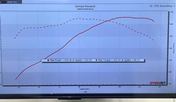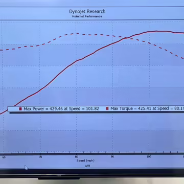 • Power comes from a 6.2-liter V8, rated at 429 horsepower and 425 lb-ft of torque according to a dyno sheet pictured in the gallery. Output is sent to the rear wheels via a 6-speed manual transmission.
