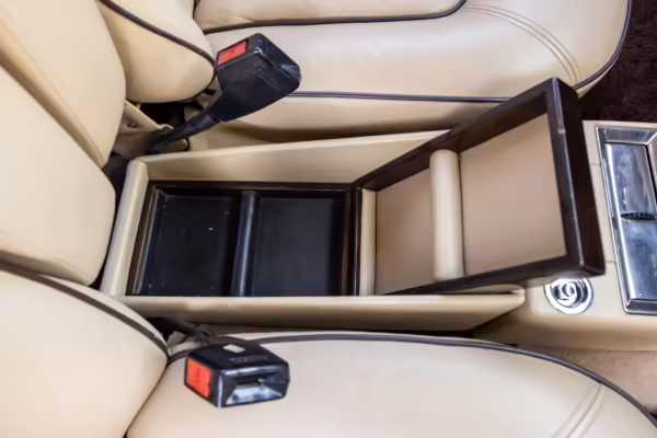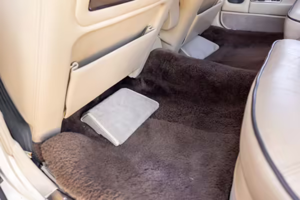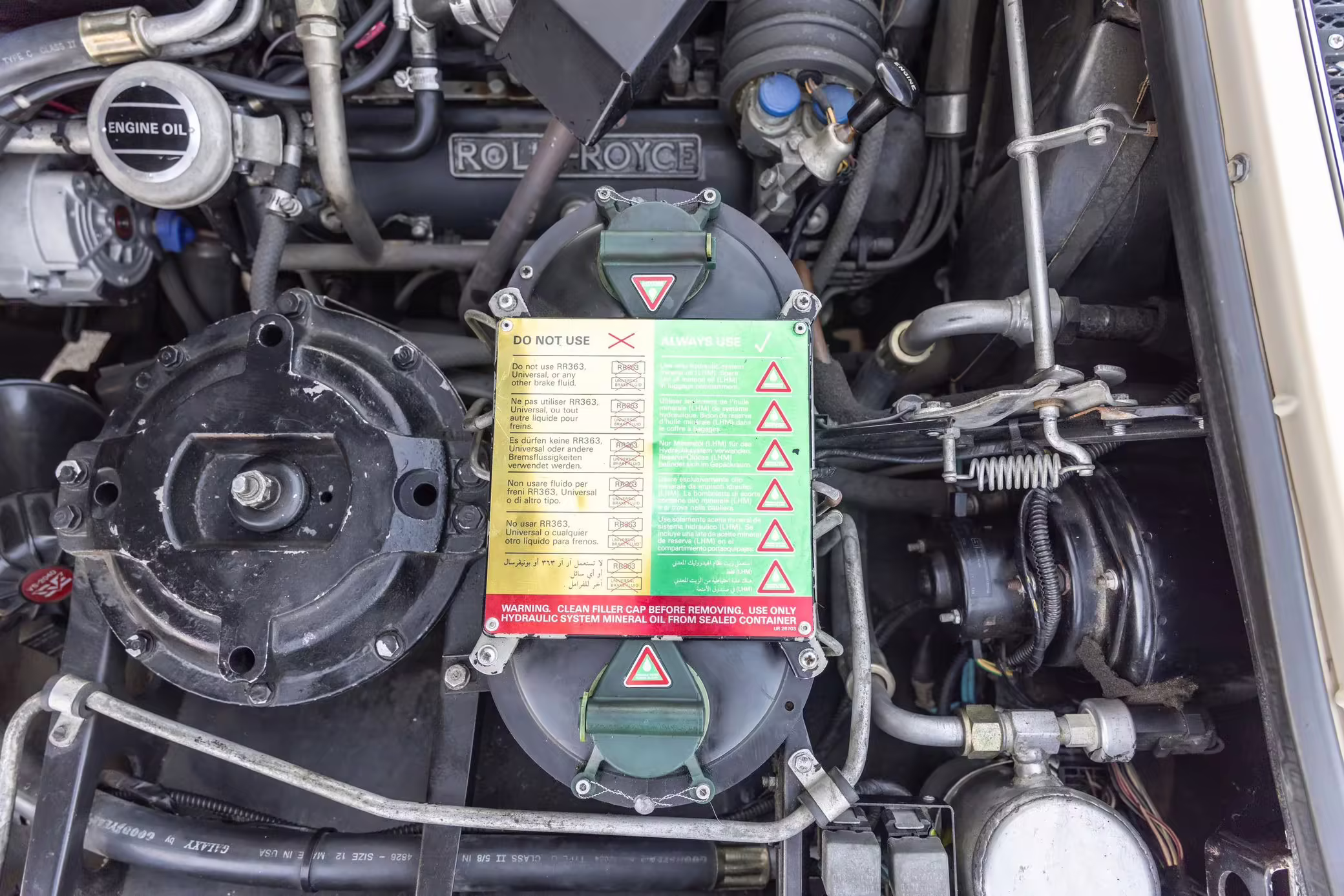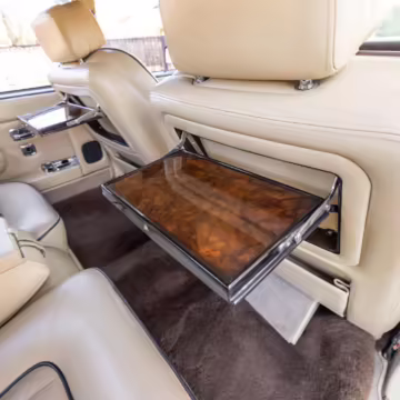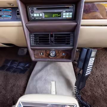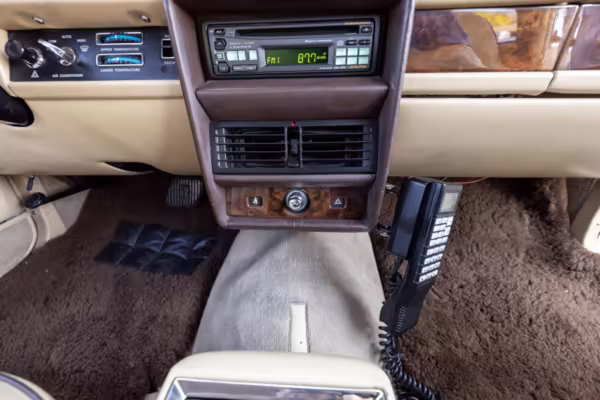A partial list of notable equipment reported by the former owner includes a hydropneumatic suspension system, a vinyl roof, and folding tables in the front seatbacks. The only notable modification reported by the former owner is an Alpine CD player.