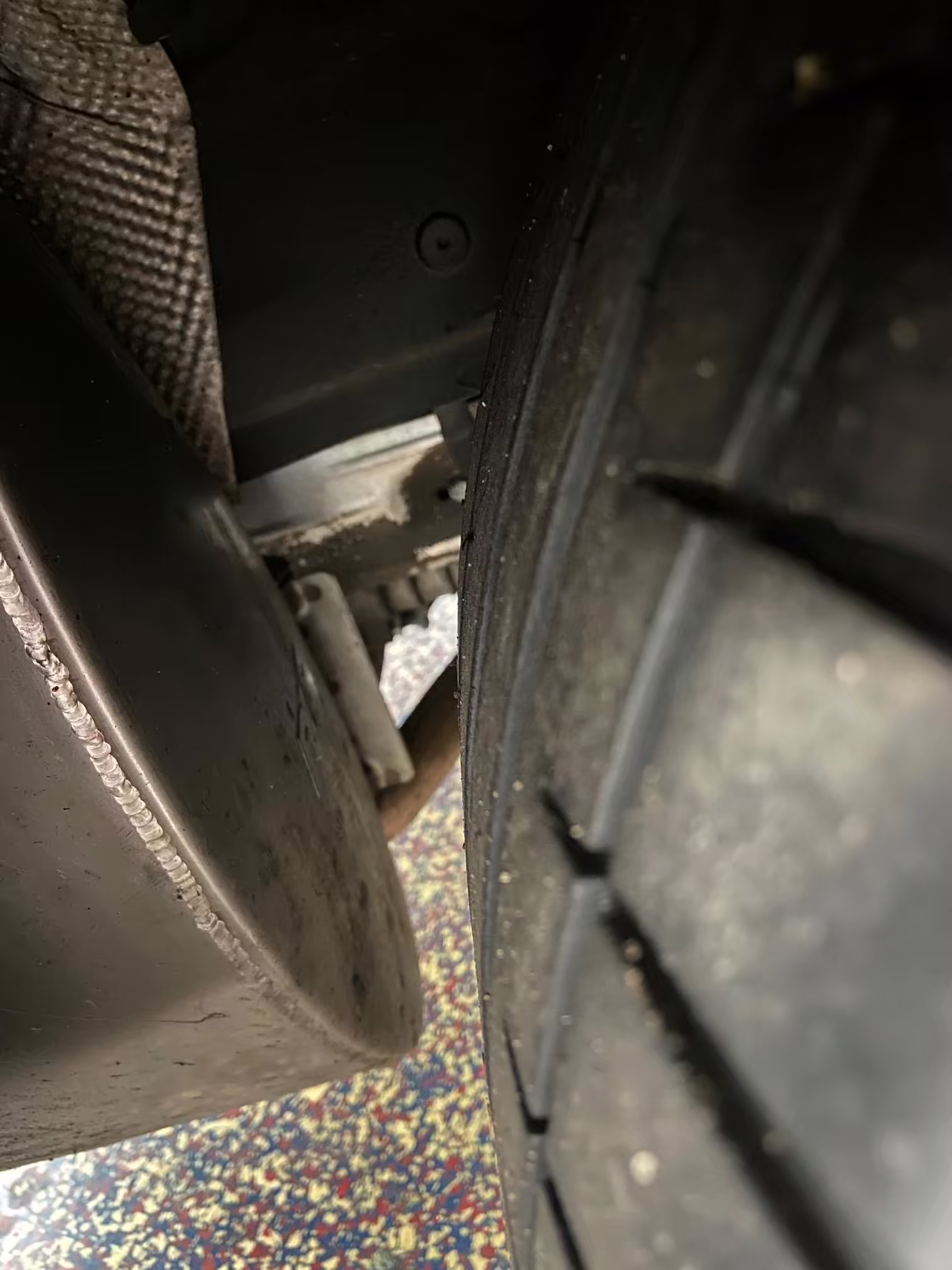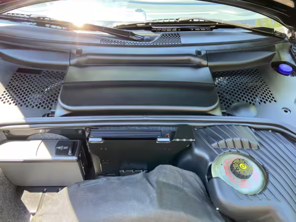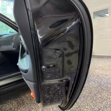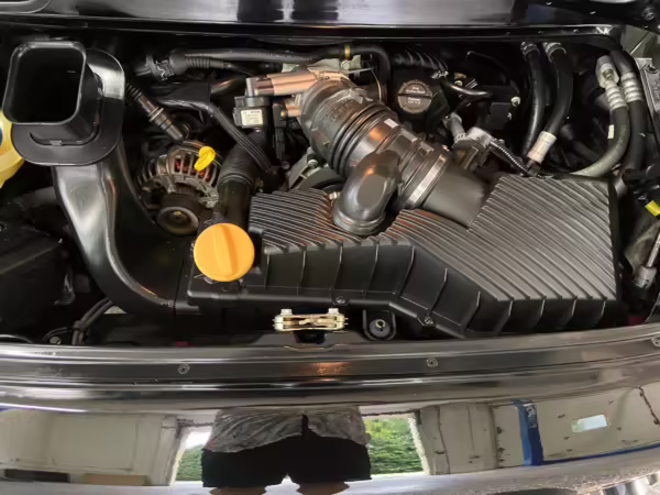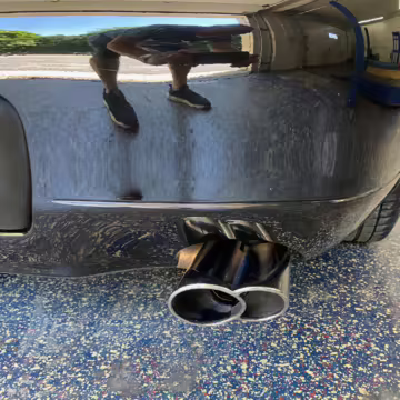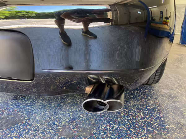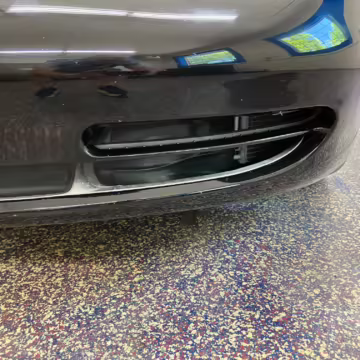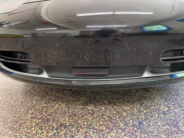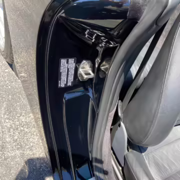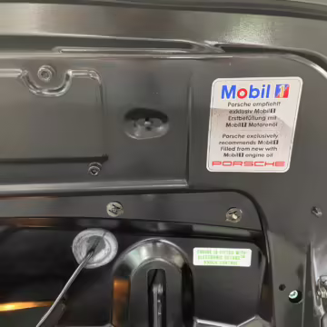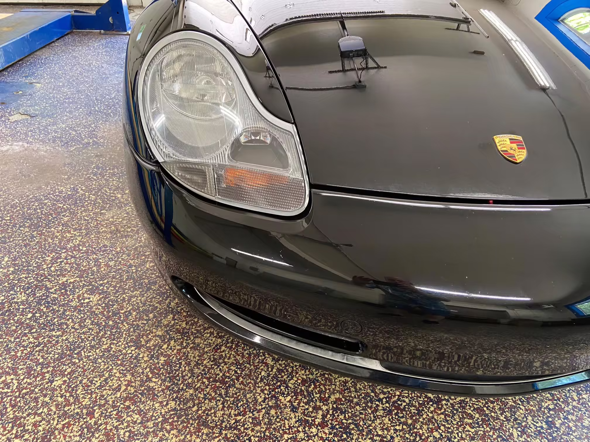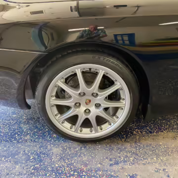 The former owner states that a scratch was touched up on the engine lid and that the wheels were refinished to address some curb rash.