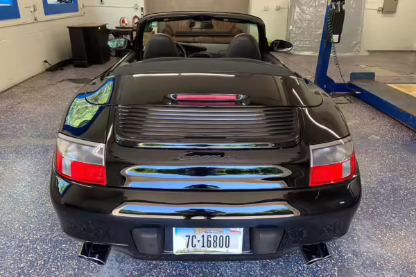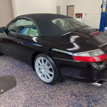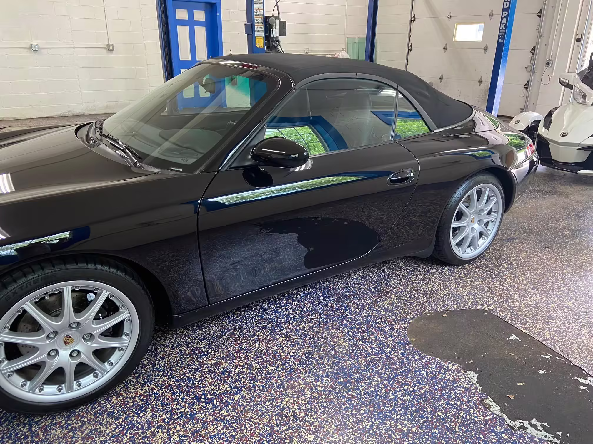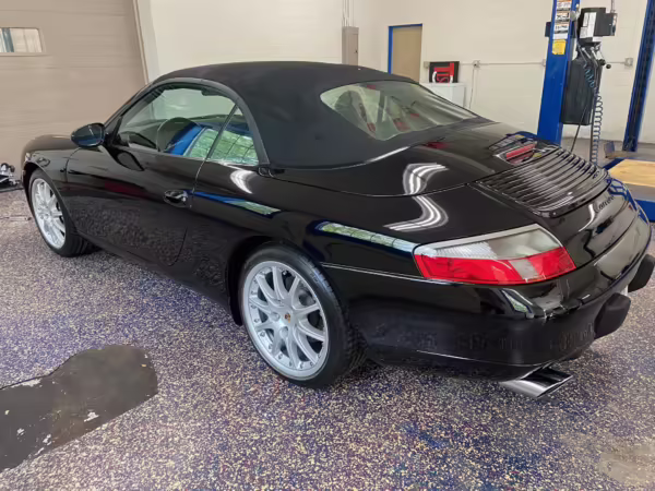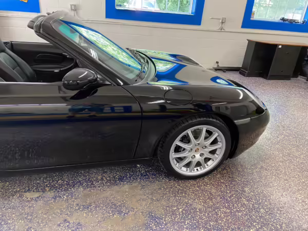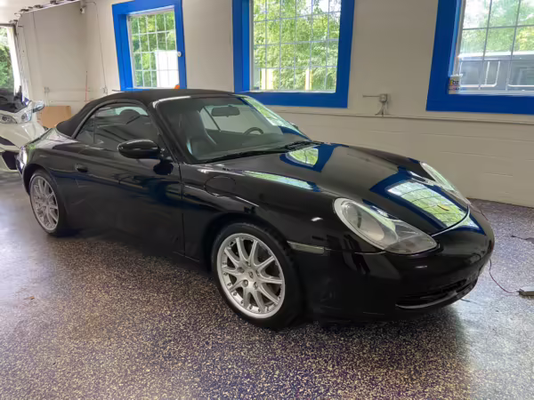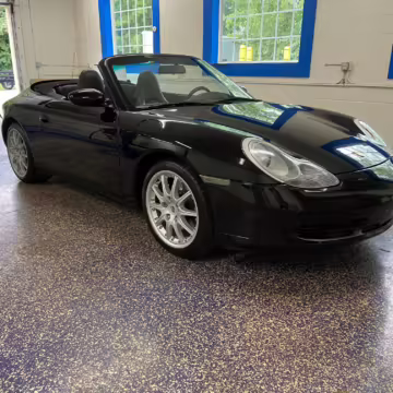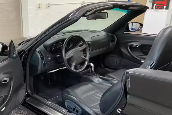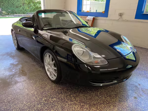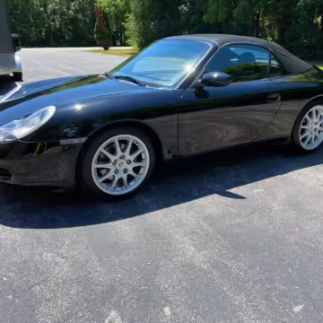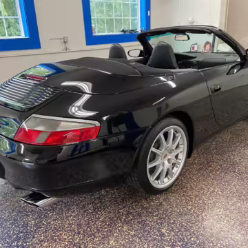 1999 Porsche 911 Carrera Cabriolet, finished in black with a black interior.