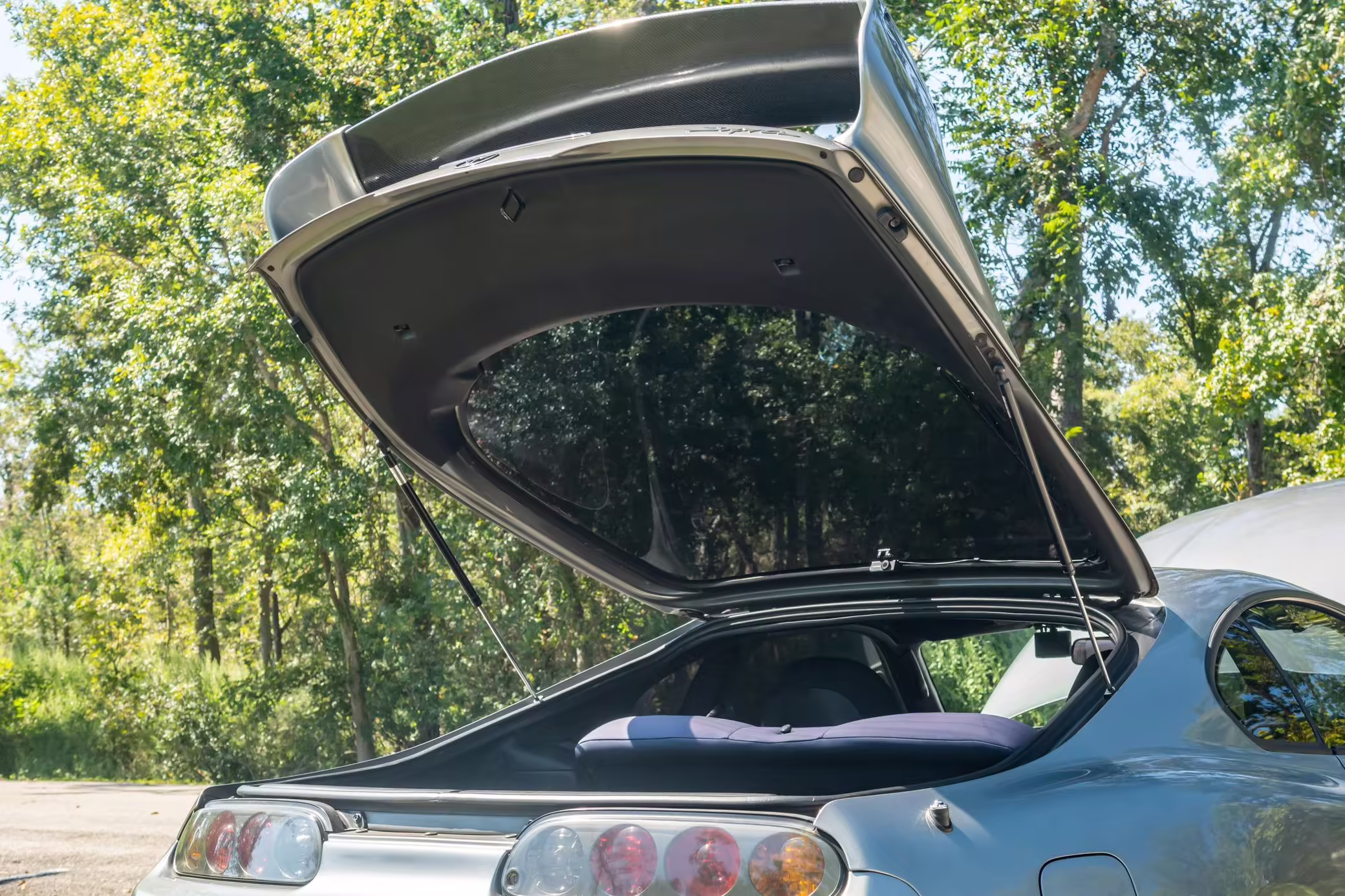 1999 Toyota Supra, finished in Moonstone Pearl with a grey interior.