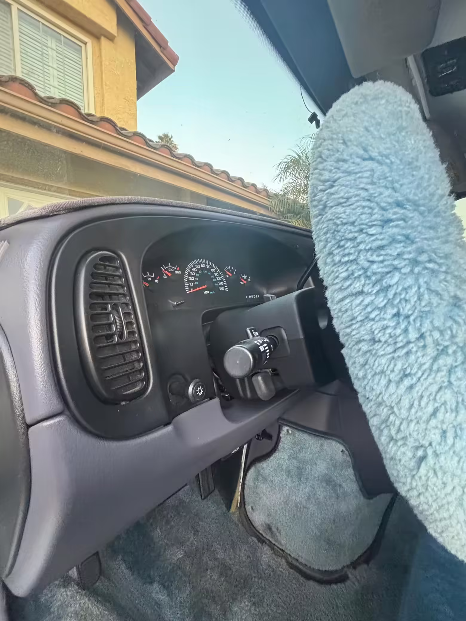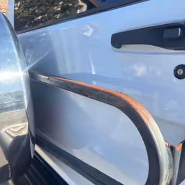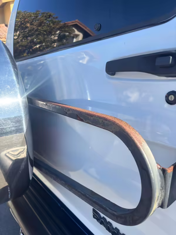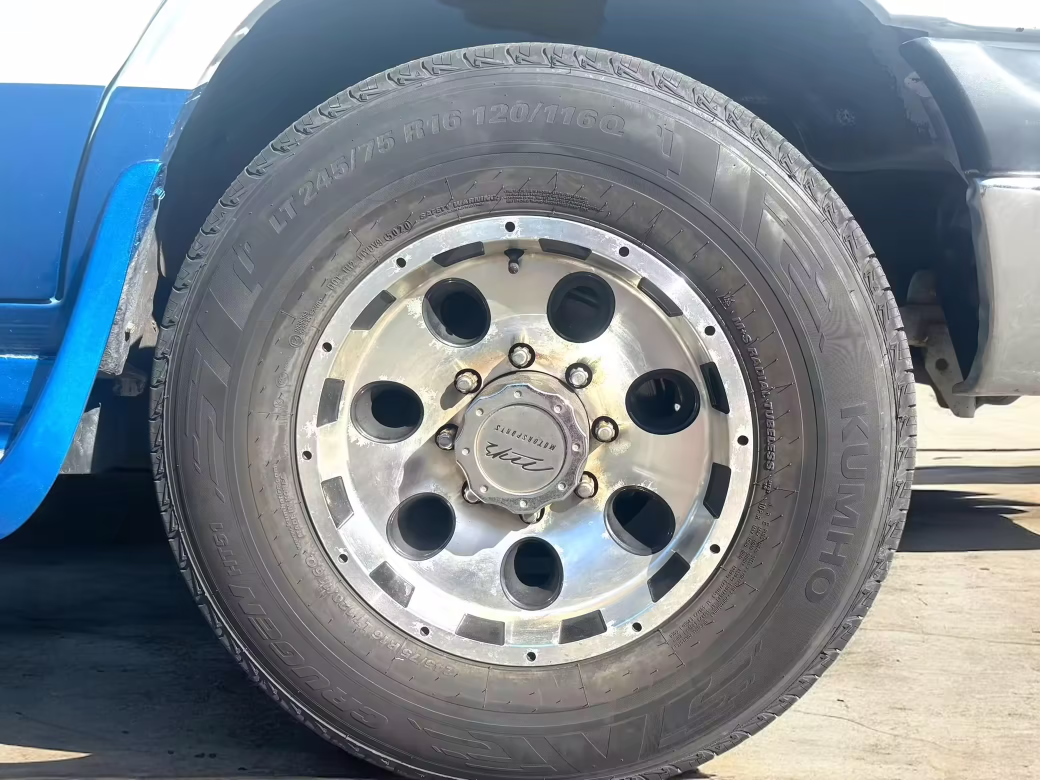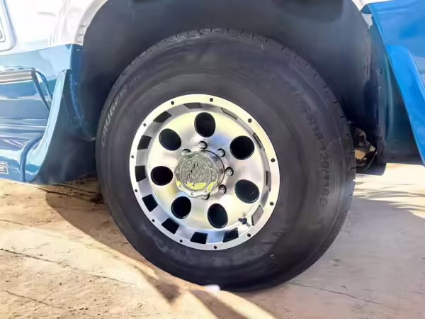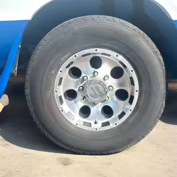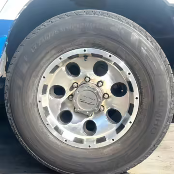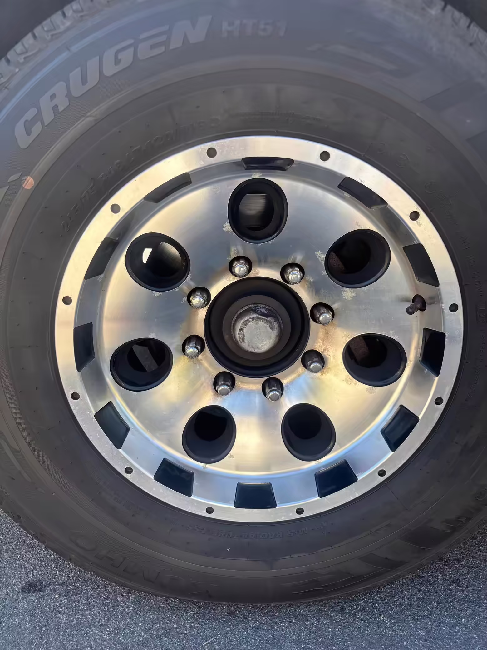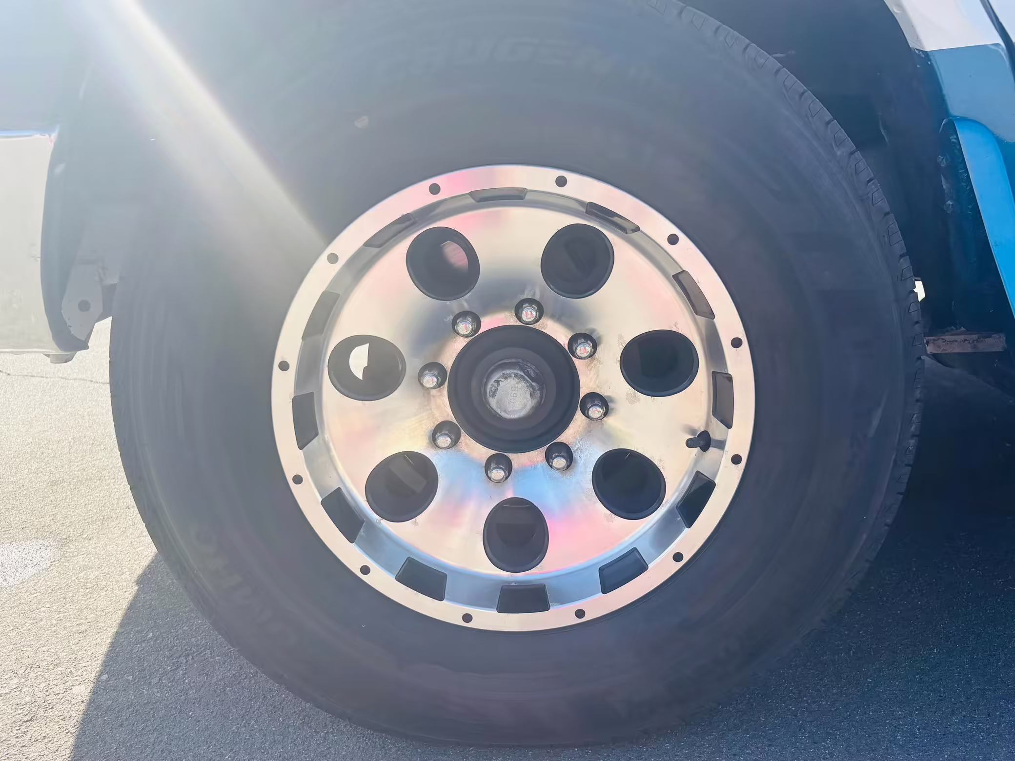 Pitting on the wheels; driver-side front center cap missing