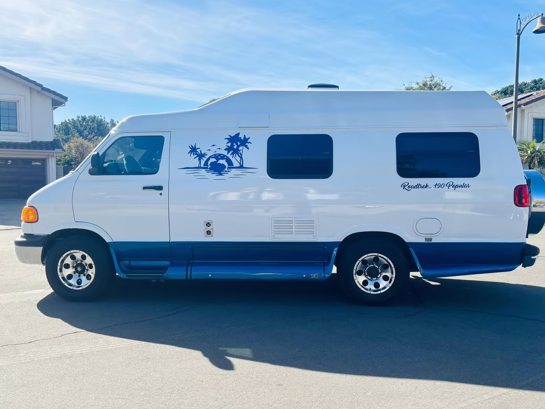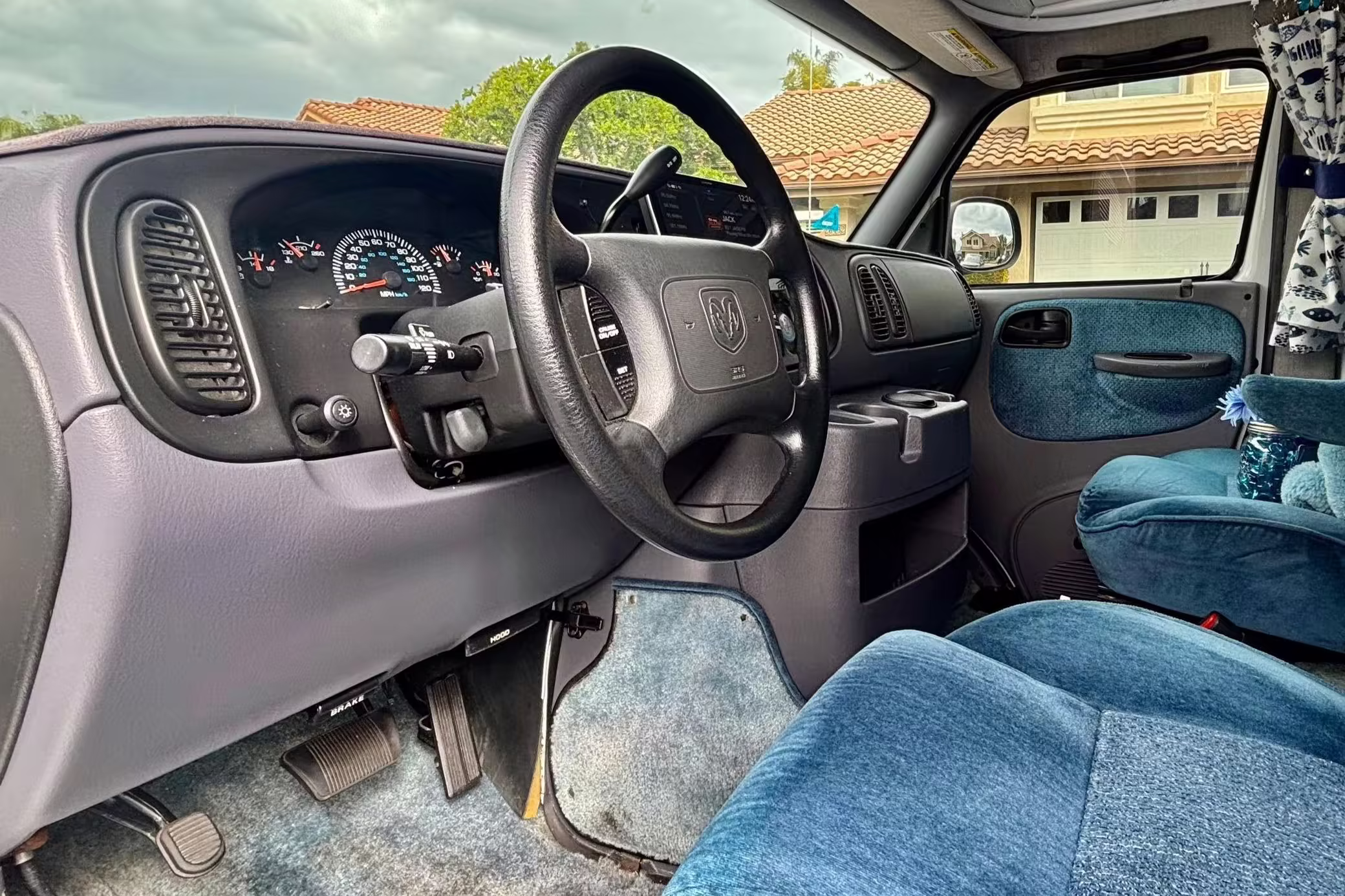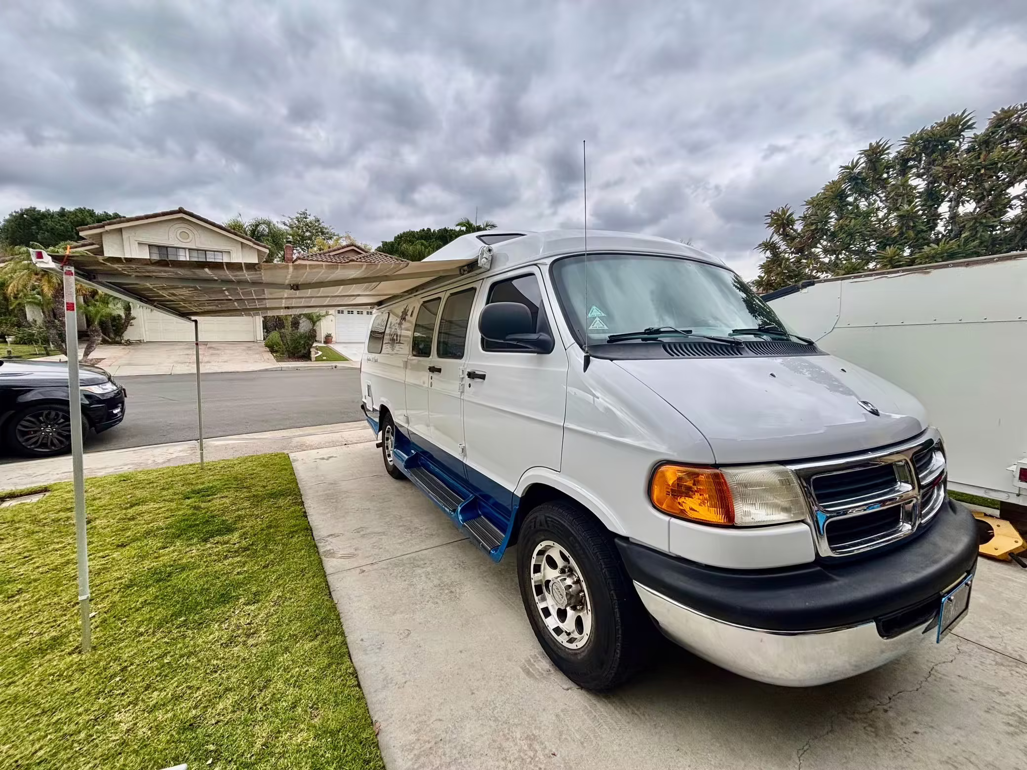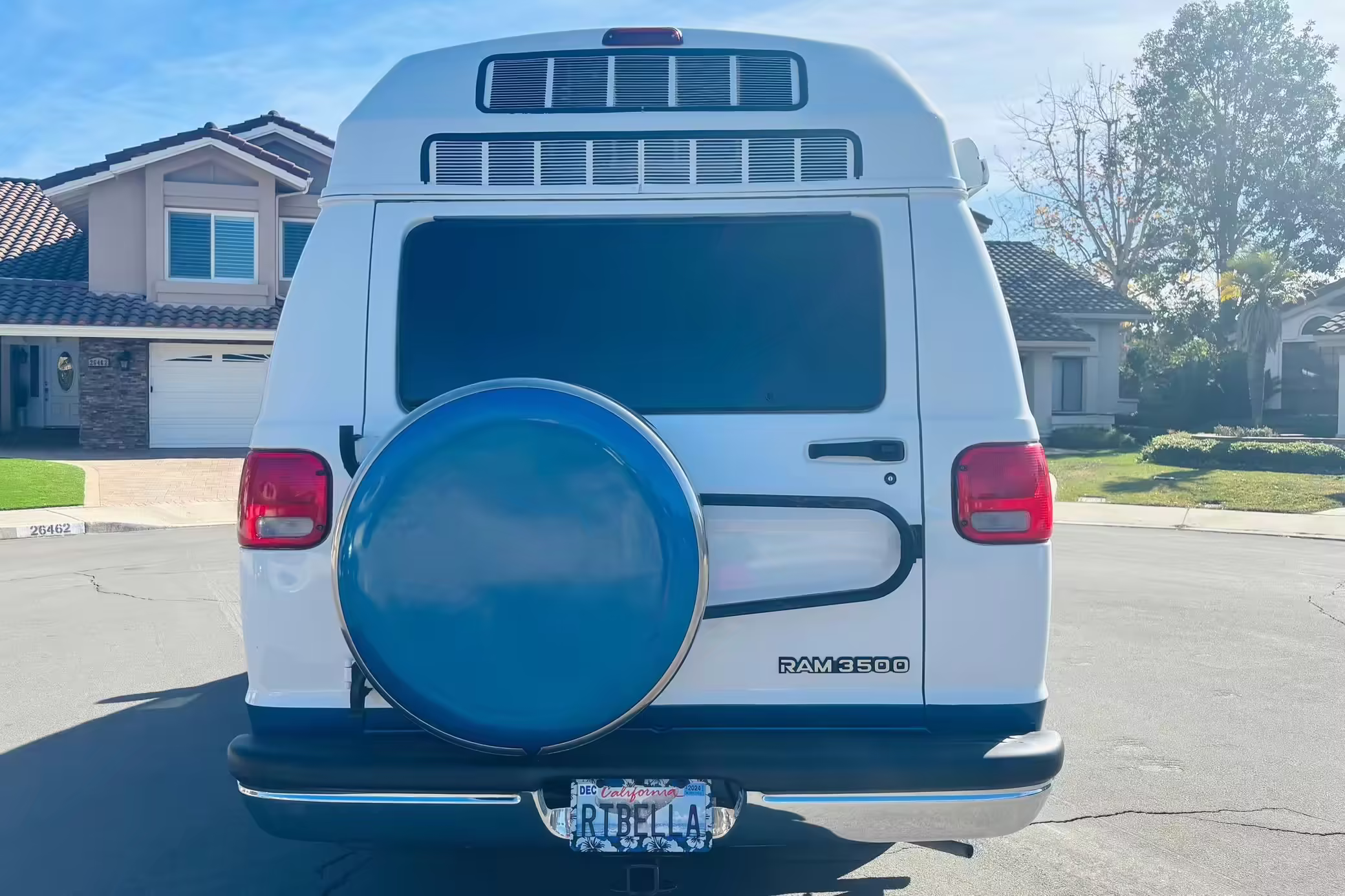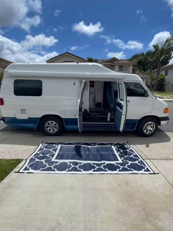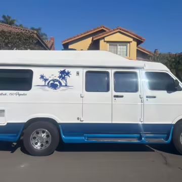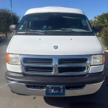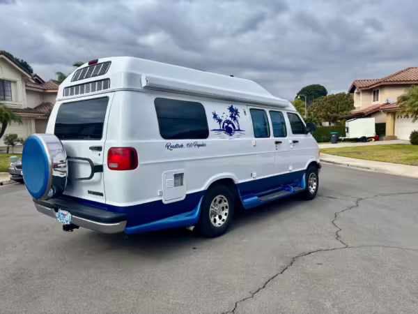 2000 Dodge Ram Van B3500, finished in white and blue with a white and blue interior.