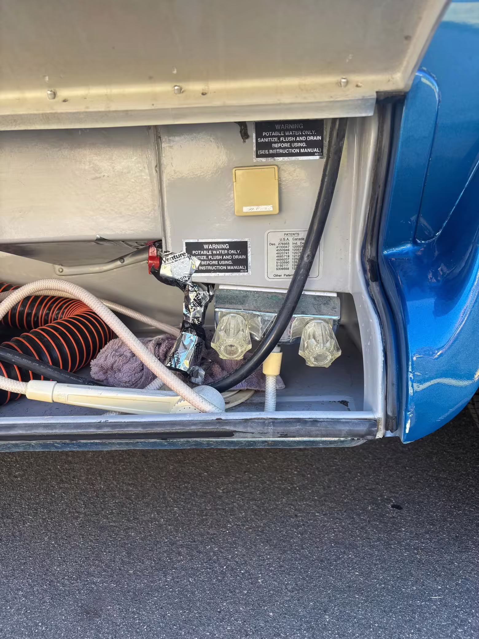 Hoses to fill and empty the water tanks