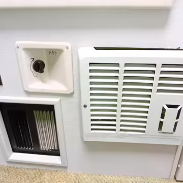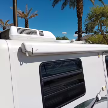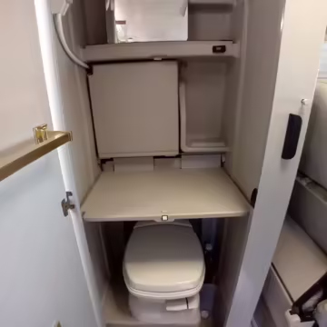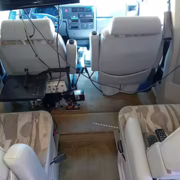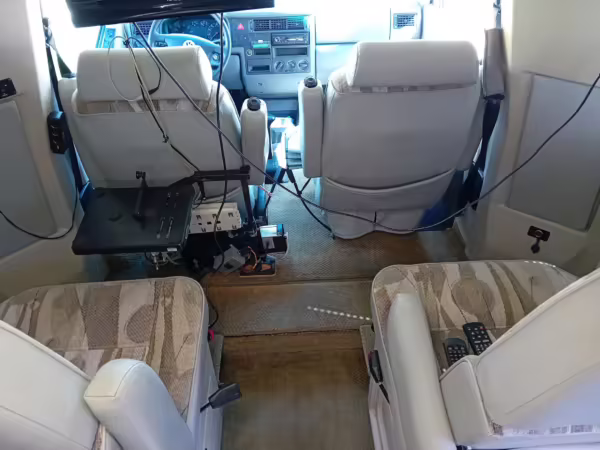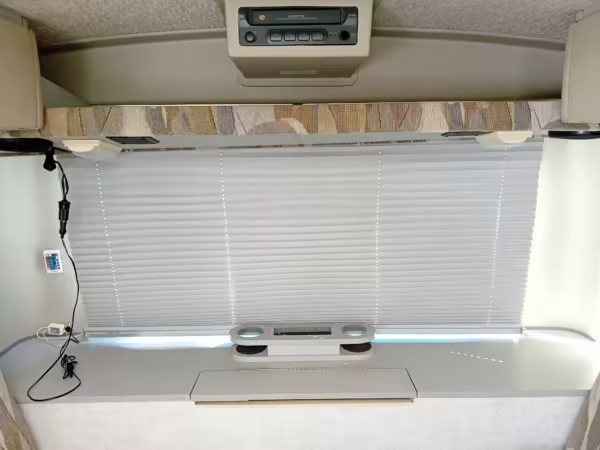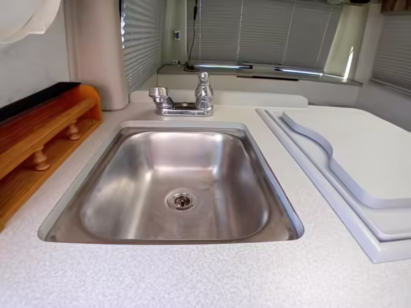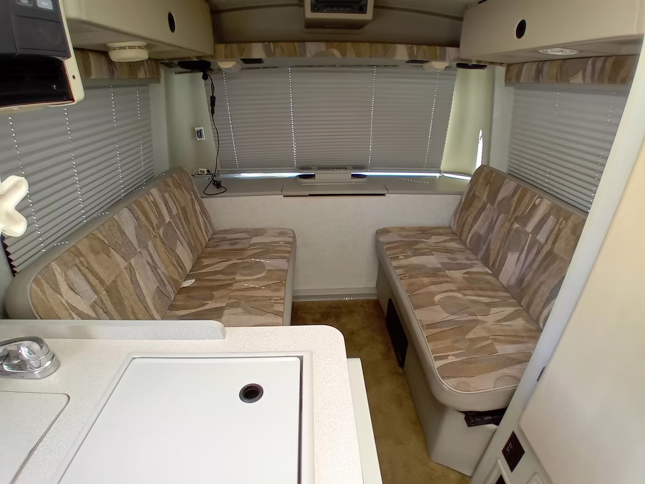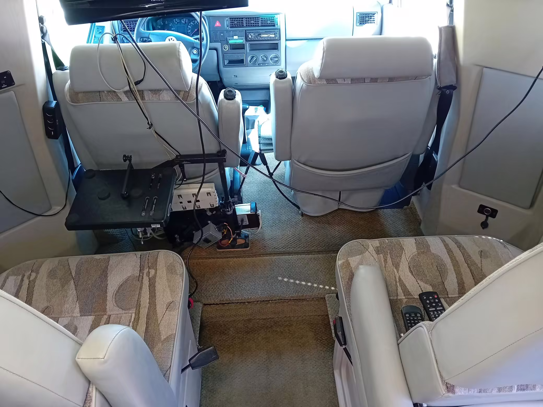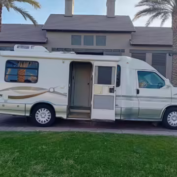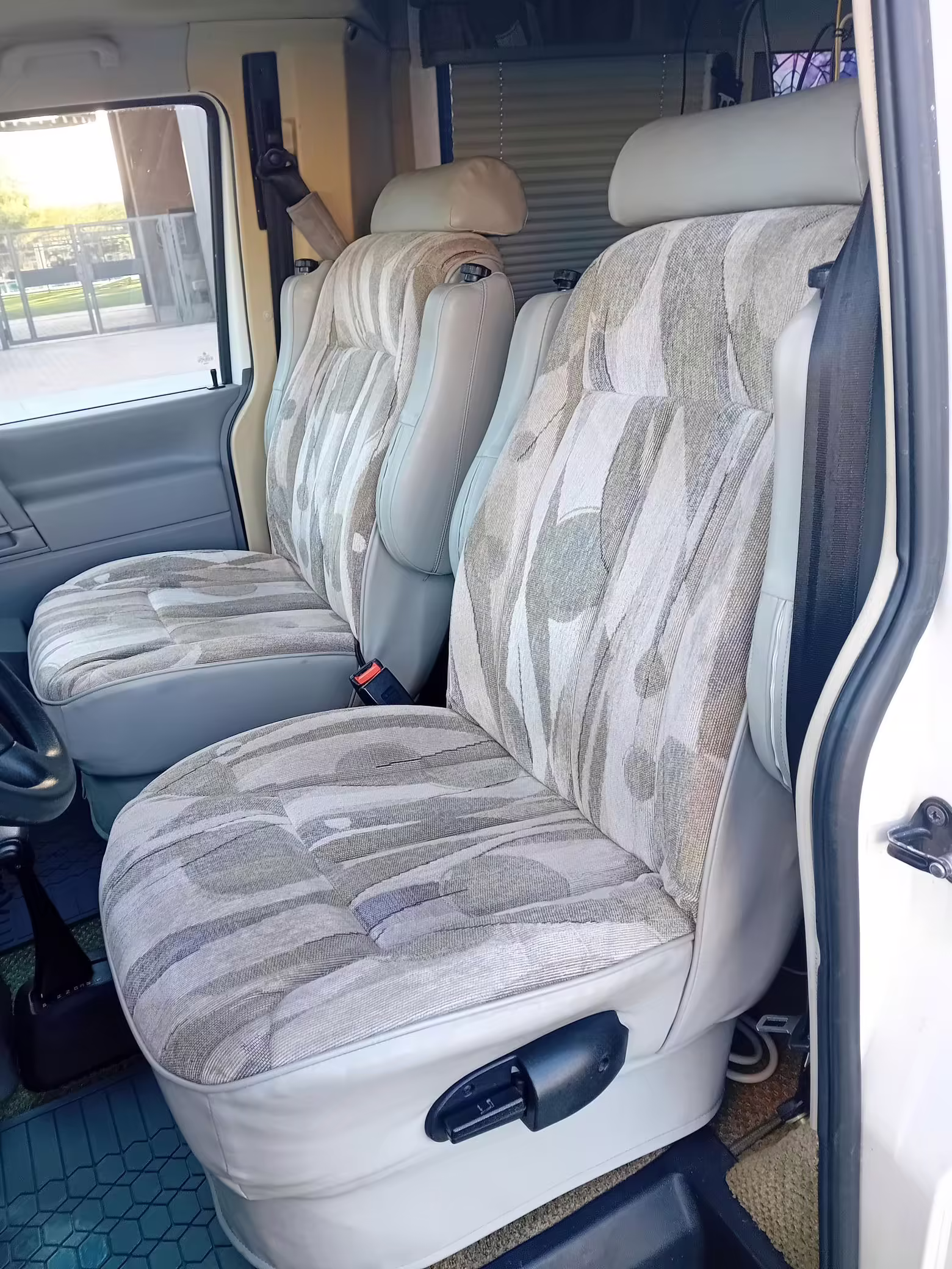 This van was converted into a Rialta camper by Winnebago. The conversion includes a custom body, rear air suspension, middle-row captain’s chairs, dual sofas, a shower with an extendable wall, a kitchen with an extendable countertop, a refrigerator, and more as listed below.