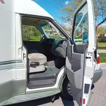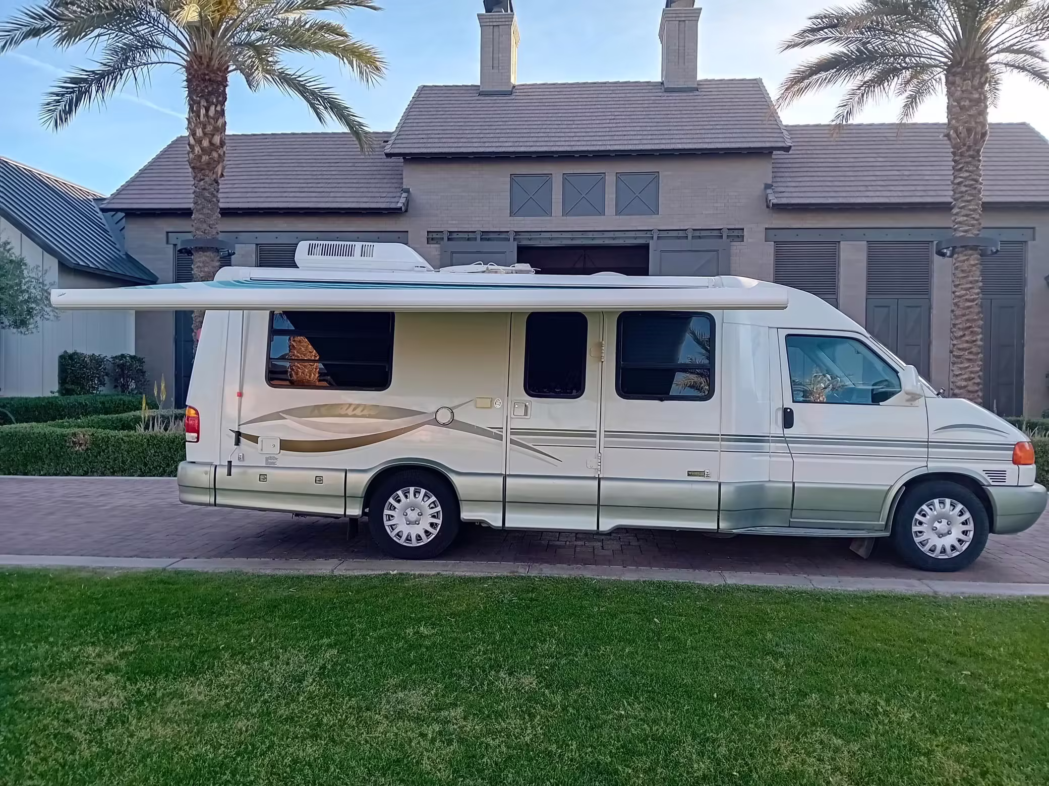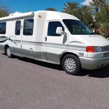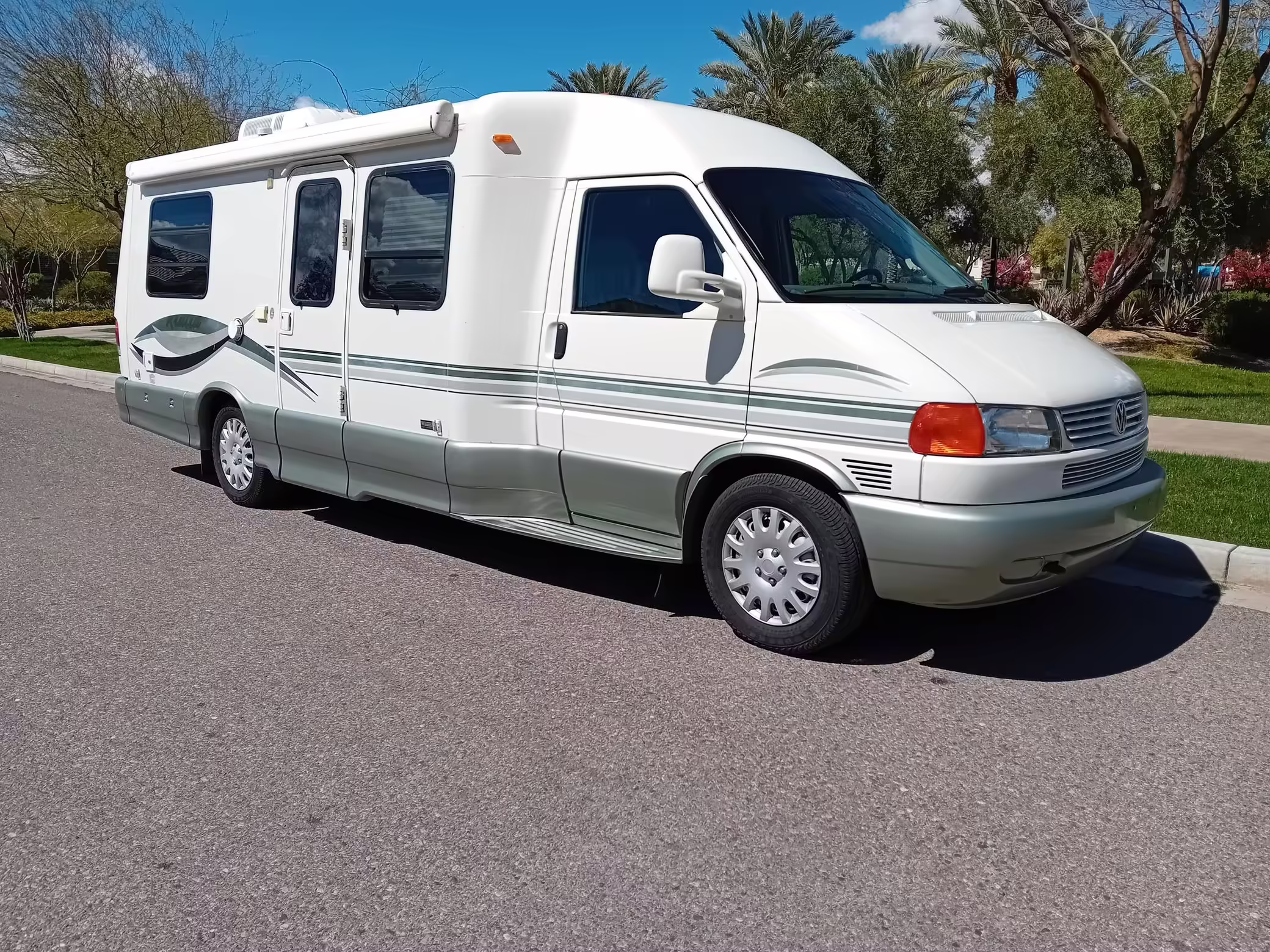 2002 Volkswagen EuroVan Winnebago Rialta, finished in white with a gray interior.