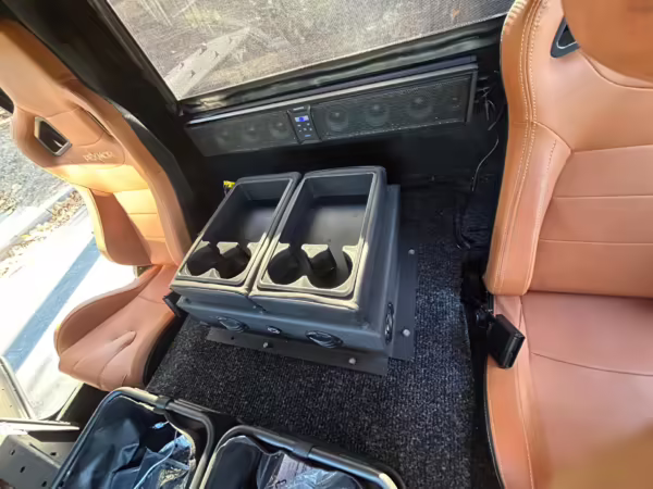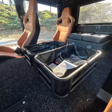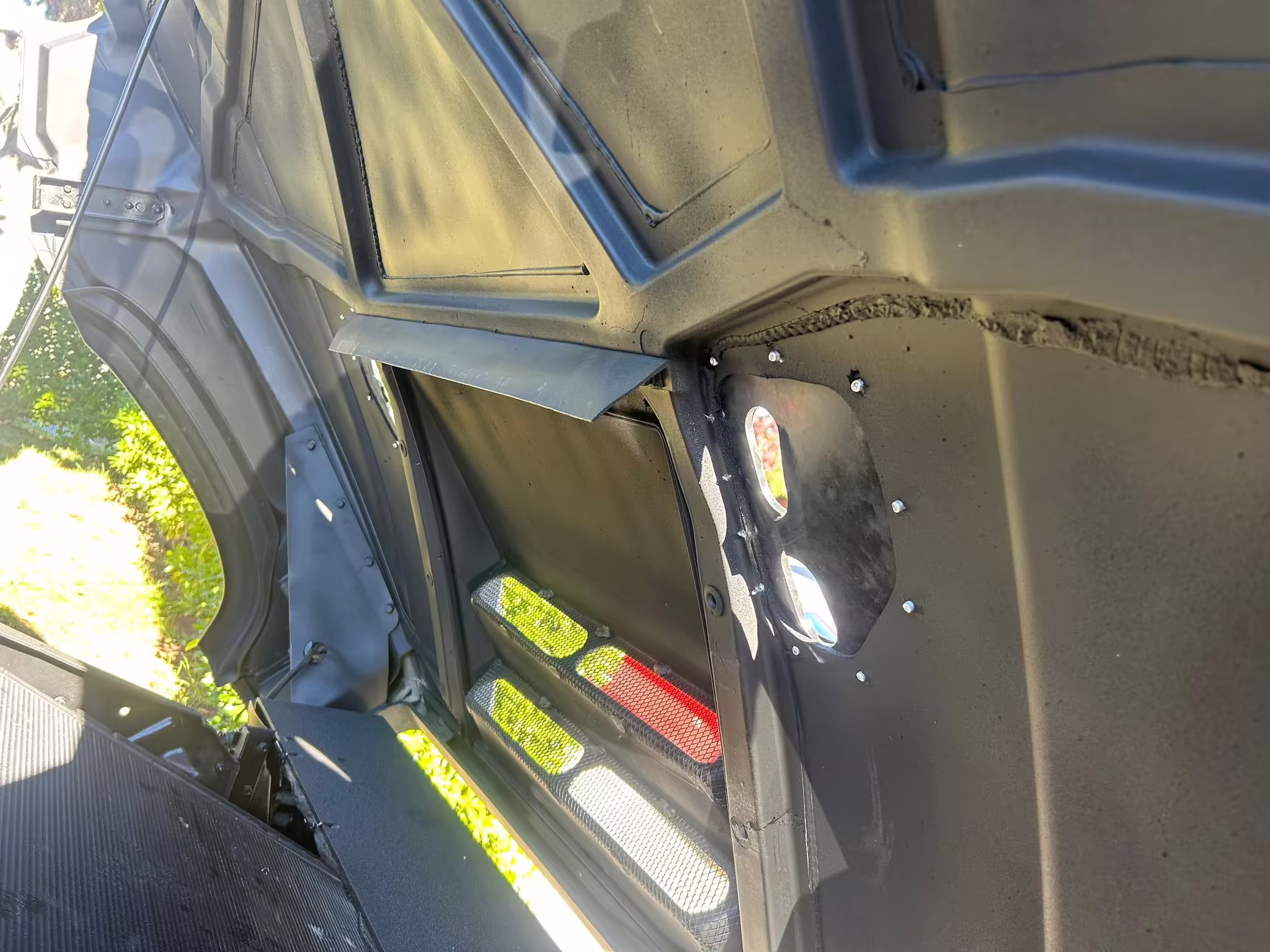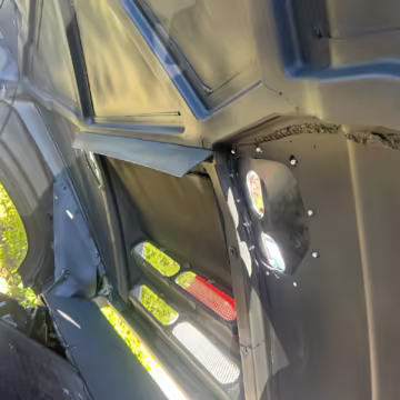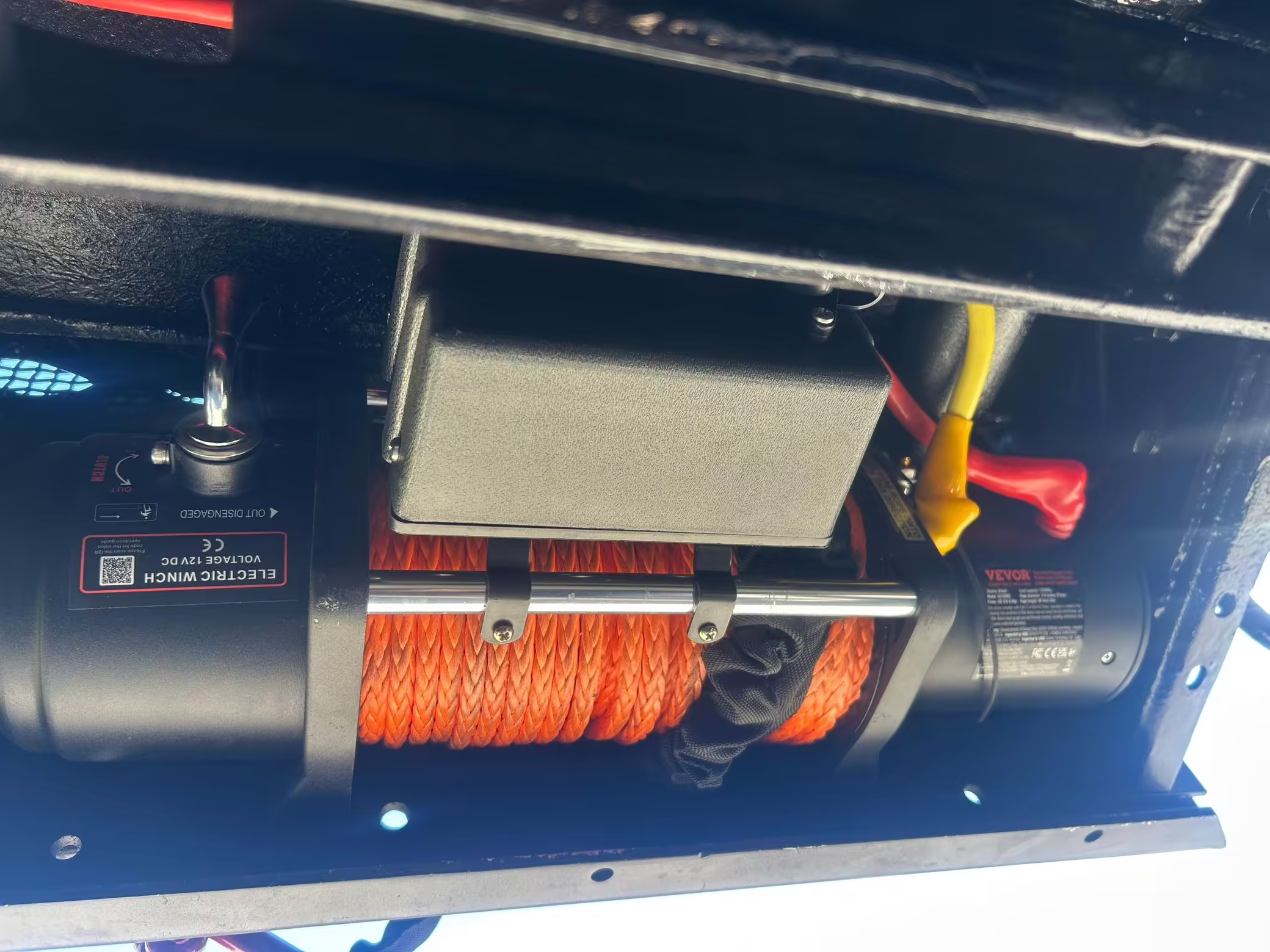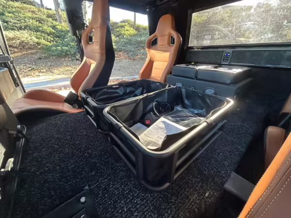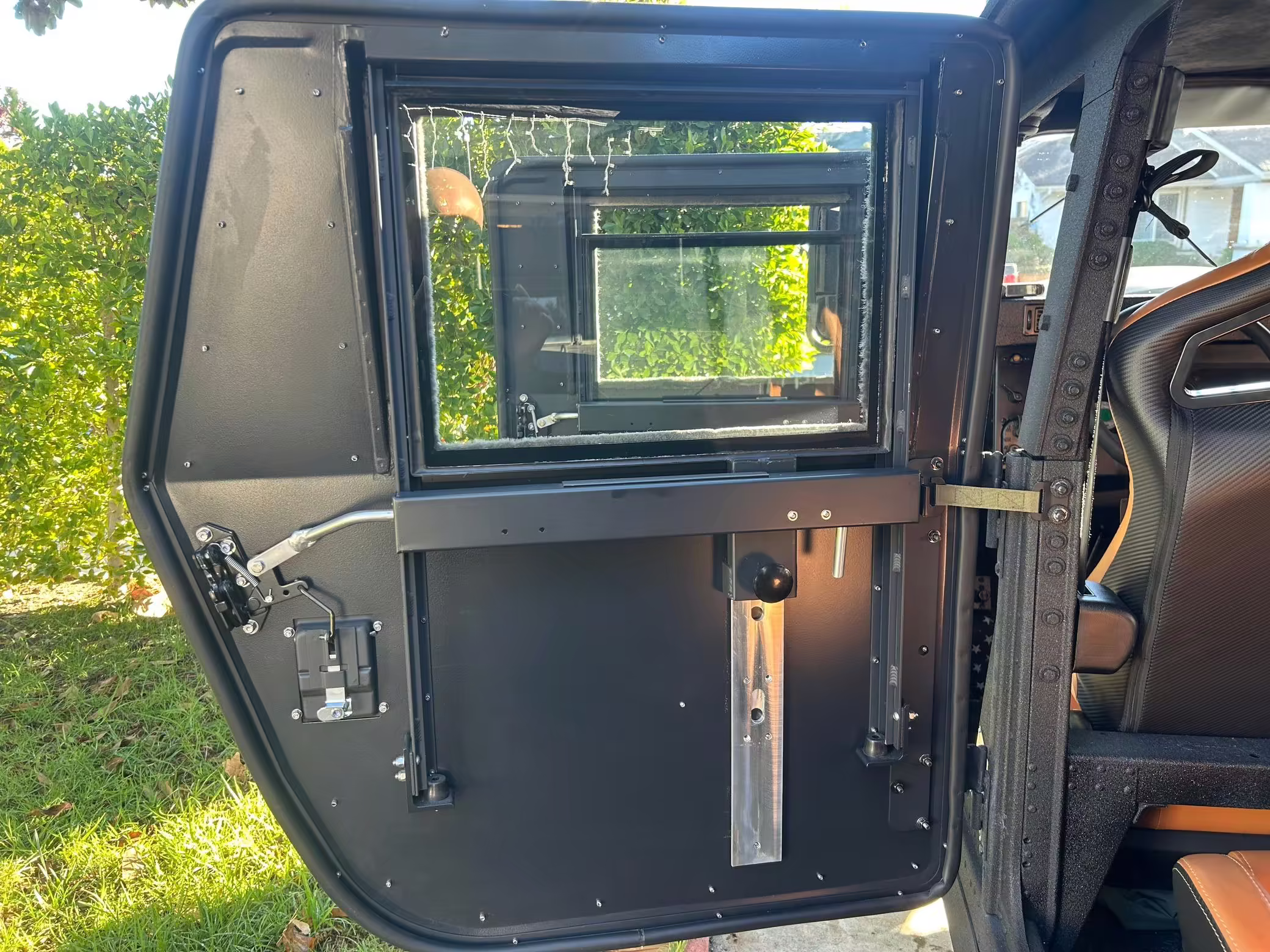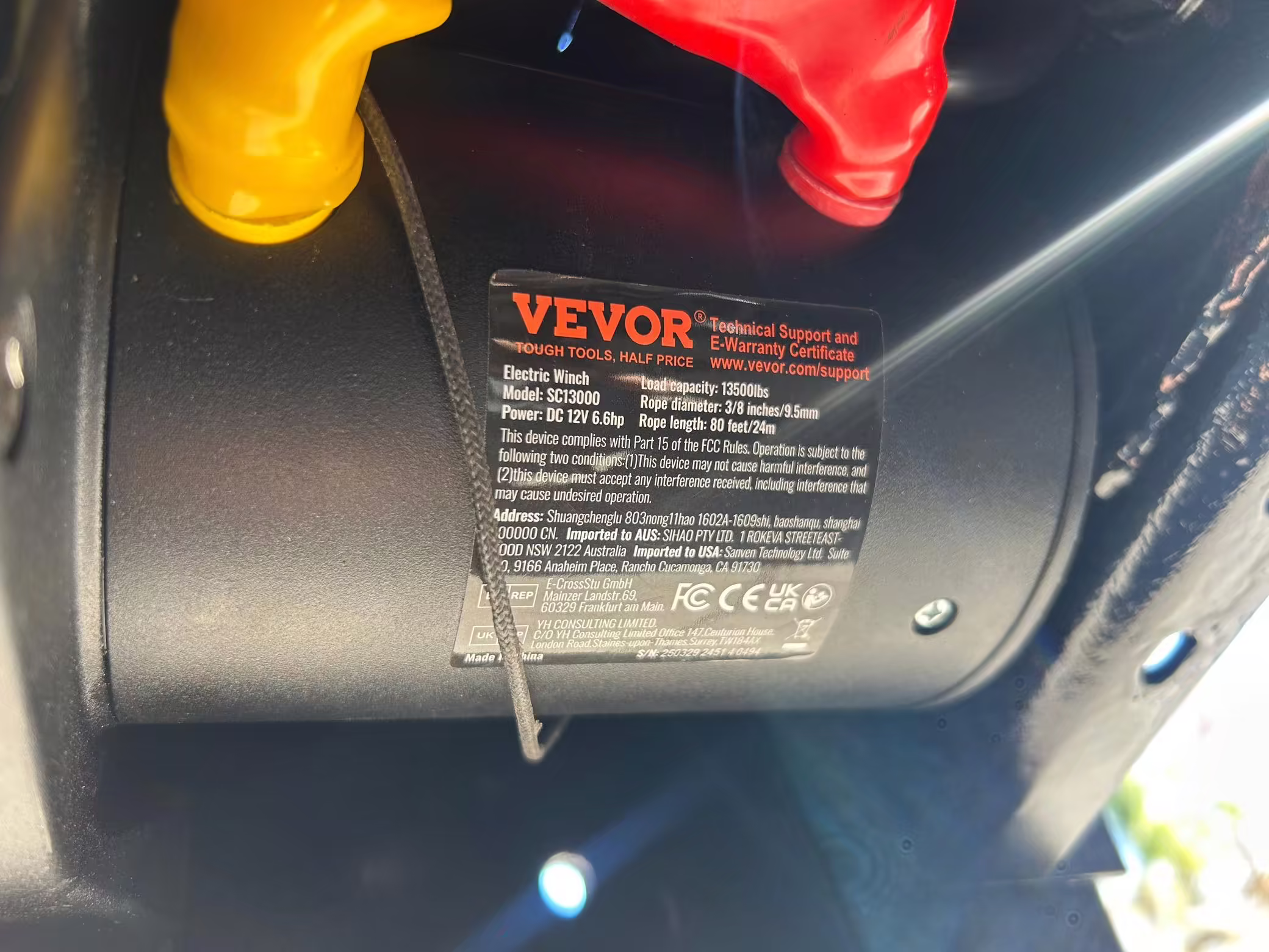 A full list of notable modifications reported by the former owner is detailed below. Highlights include a Raptor Coating spray-on bedliner applied to the exterior, a Vevor SC13000 electric winch, armored top and rear curtain, and LED exterior lighting.