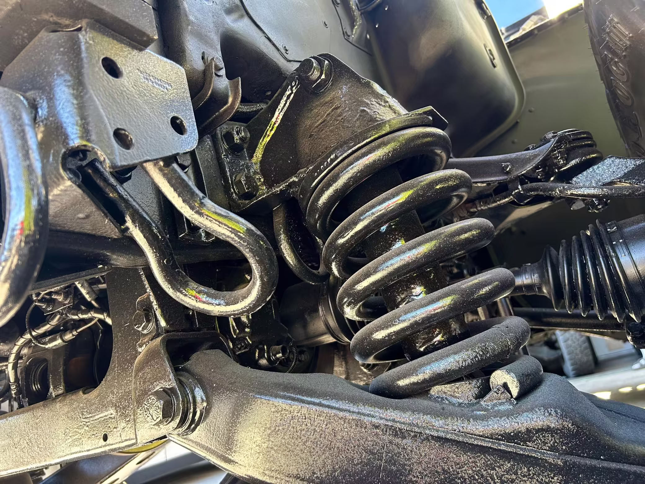 September 2025 (~169 miles): Engine oil and filter, transmission fluid, transfer case fluid, differential fluid, and wheel hub oil changed, tires and front and rear brakes replaced