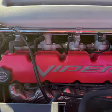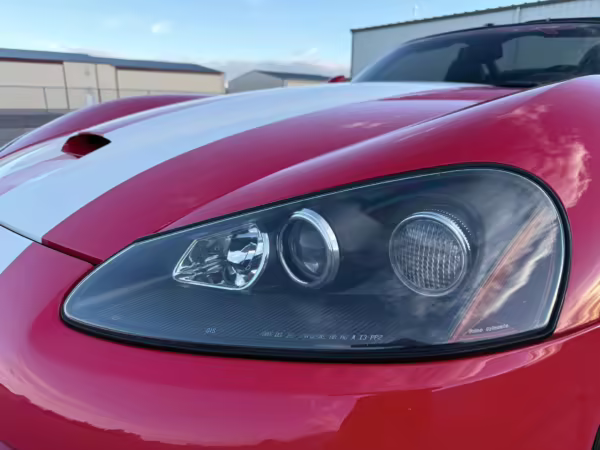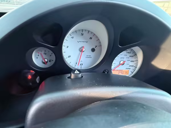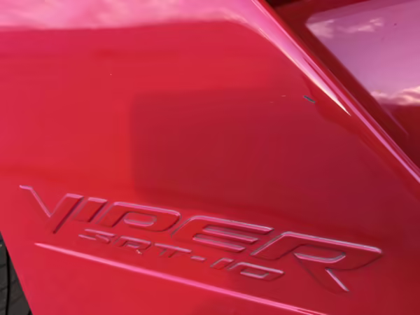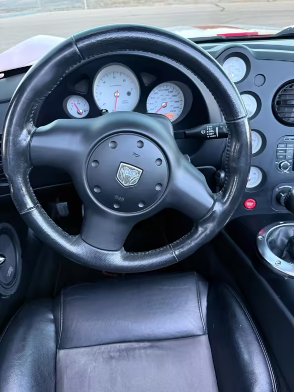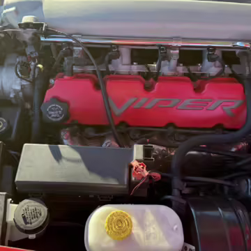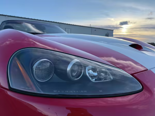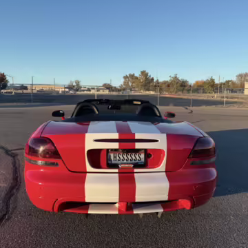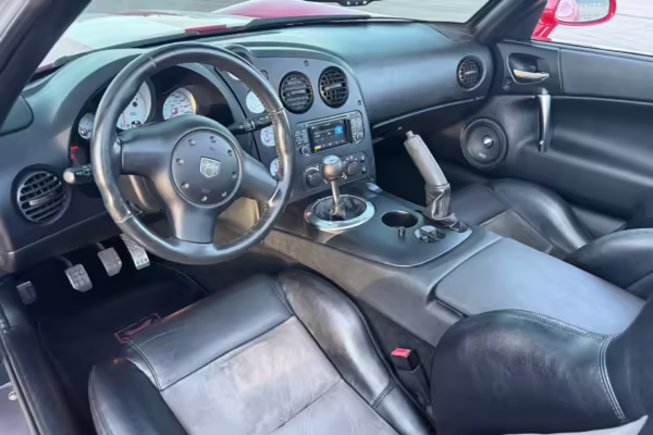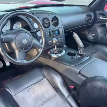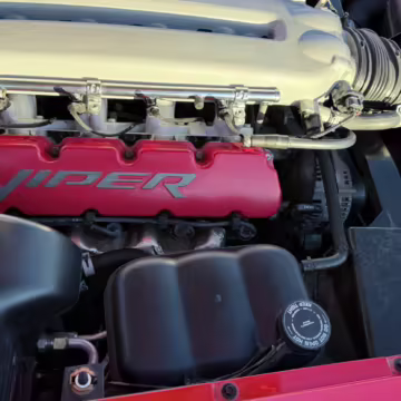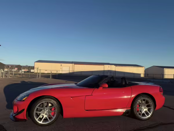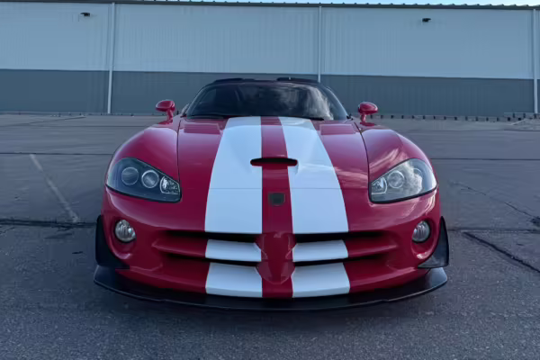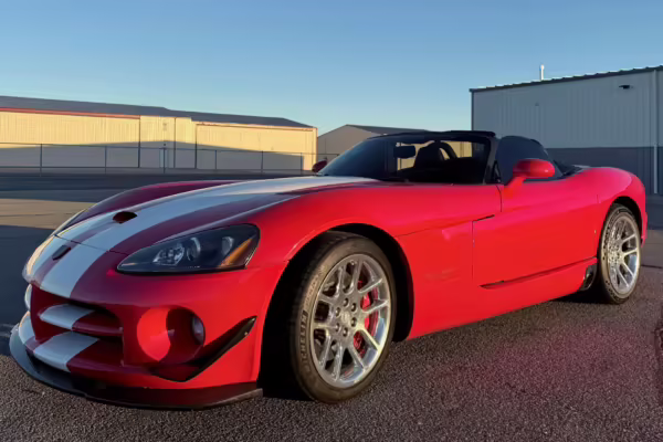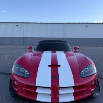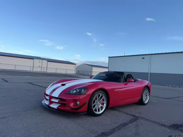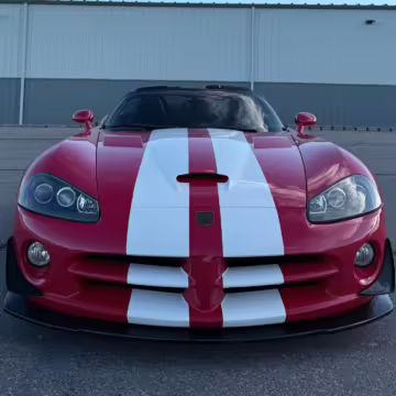 The third-generation Dodge Viper is a thrilling sports car, offering a monstrous 8.3-liter V10, a mandatory 6-speed manual transmission, and aggressive styling. This particular Viper touts relatively low mileage and some nice factory equipment, like dual side exhaust, leather and suede upholstery, and air conditioning. It also boasts a few tasteful upgrades, including a carbon fiber front lip and white vinyl racing stripes.