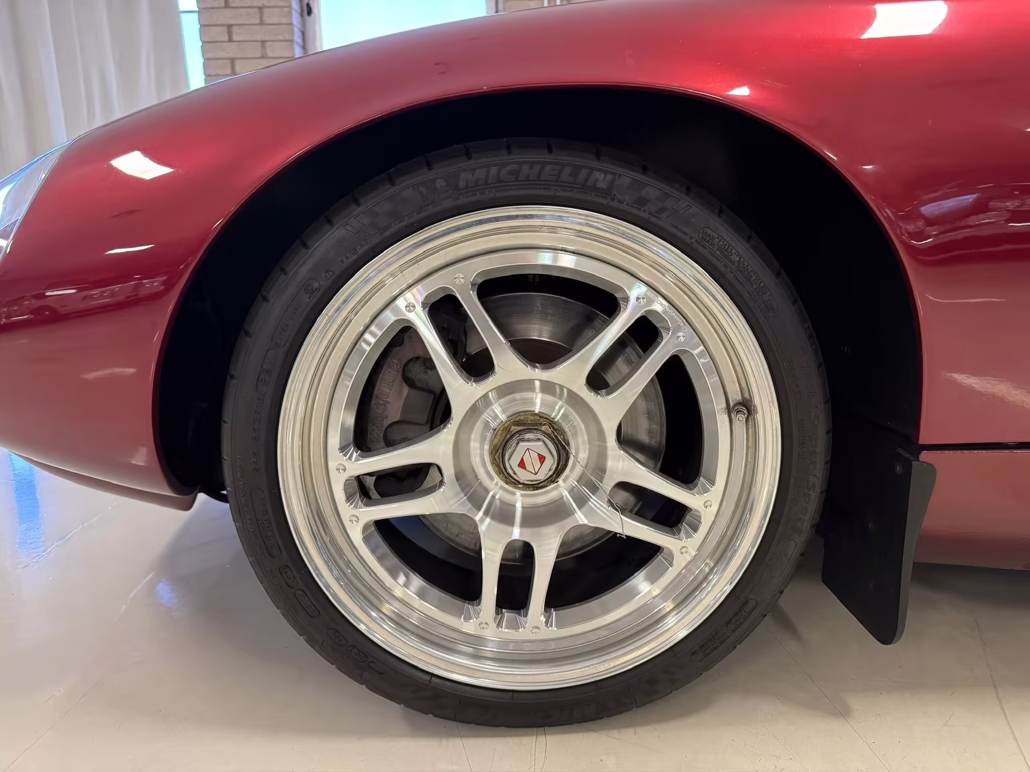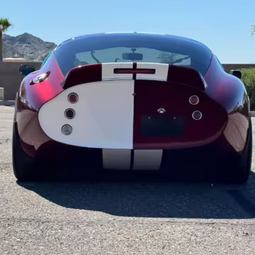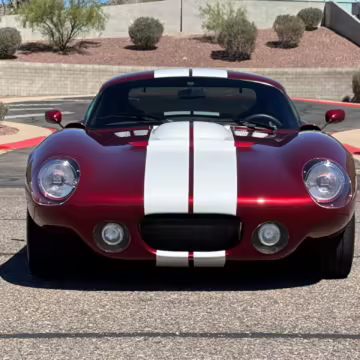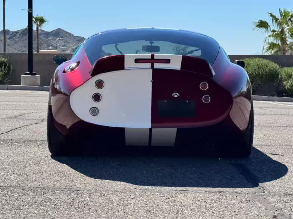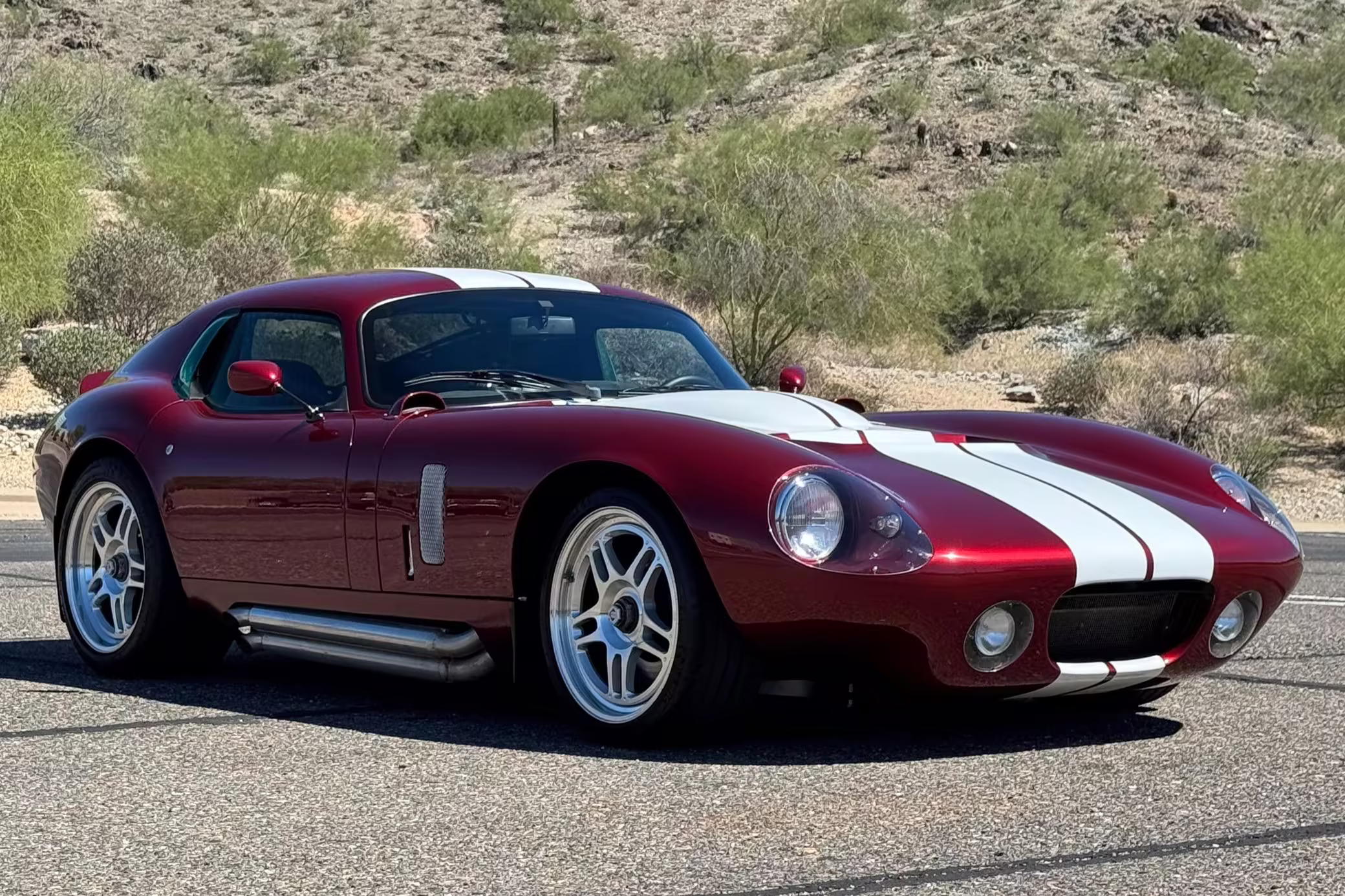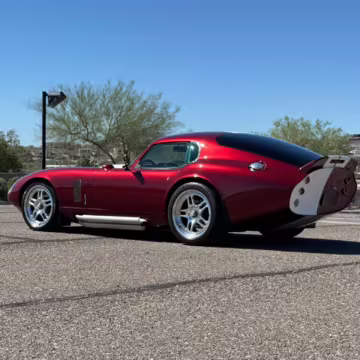 The Superformance Daytona Coupe is a thrilling sports car, boasting an analog driving character, beautiful classic styling, and a big and burly V8 – a revived classic in all the right ways. This particular Daytona Coupe is fitted with a 427-cubic-inch Windsor V8 paired with a 6-speed manual transmission. It also boasts a few desirable BRE upgrades, including a rear window, headlights and driving lights, and a set of 18-inch wheels. Plus, it’s finished in gorgeous Sunset Red, and it shows just 2,800 miles from new, further adding to the appeal.