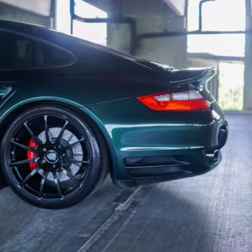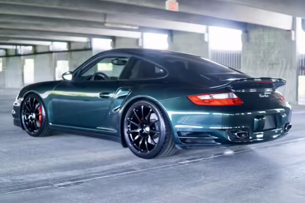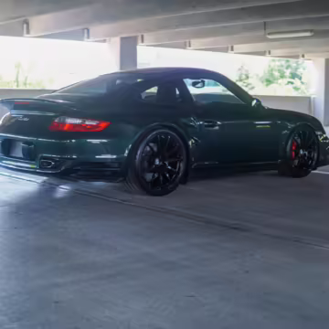 2007 Porsche 911 Turbo Coupe, finished in Forest Green Metallic with a Stone Grey leather interior.