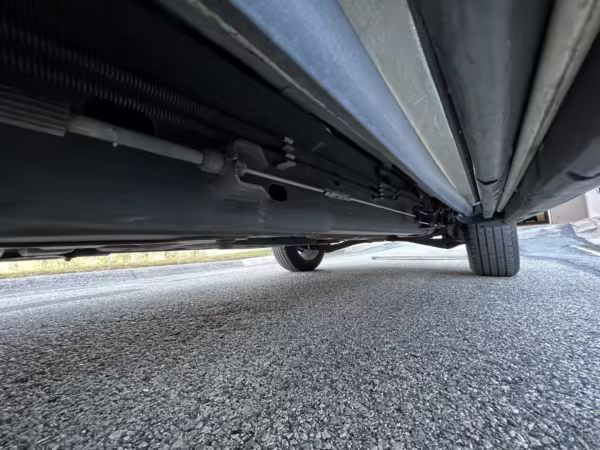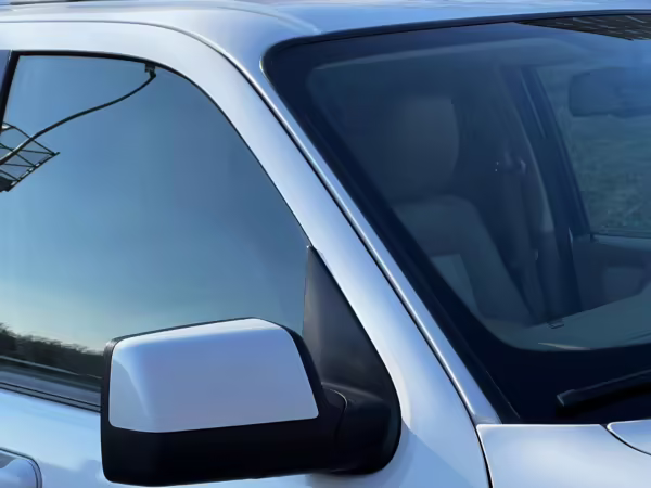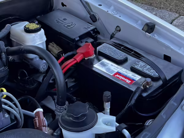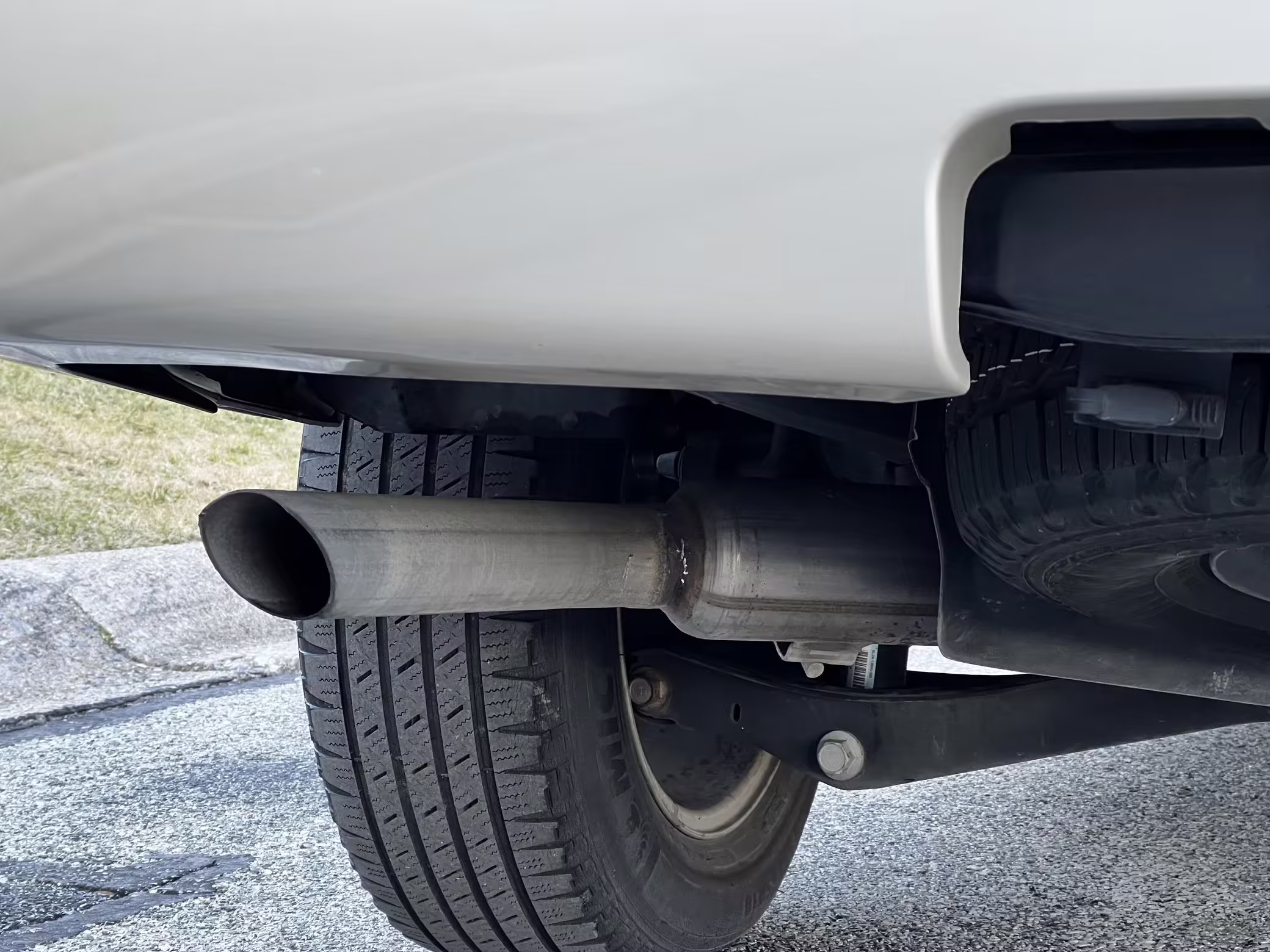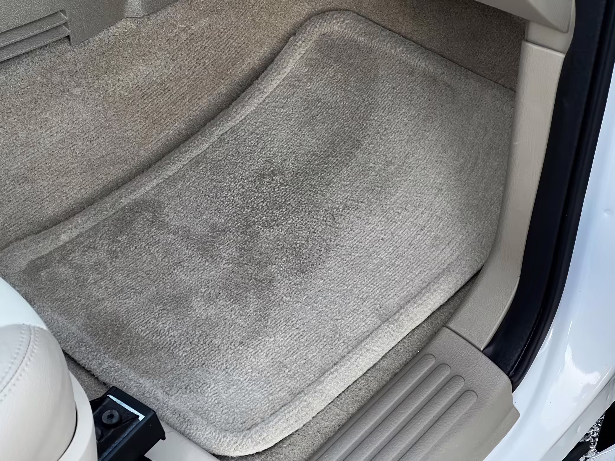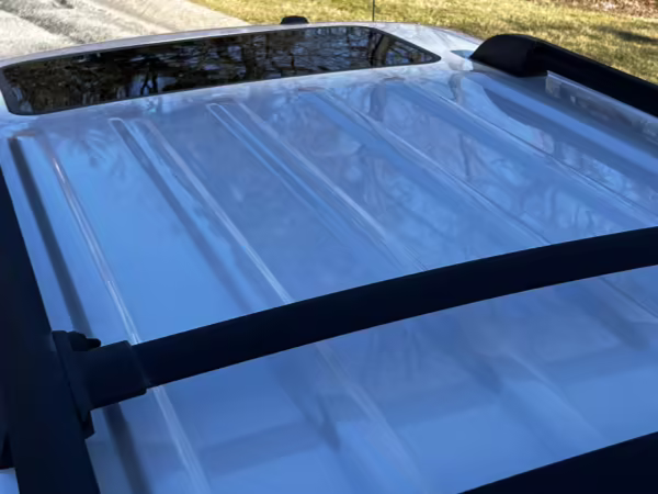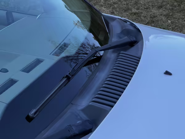 Exterior black plastic trim is weathered