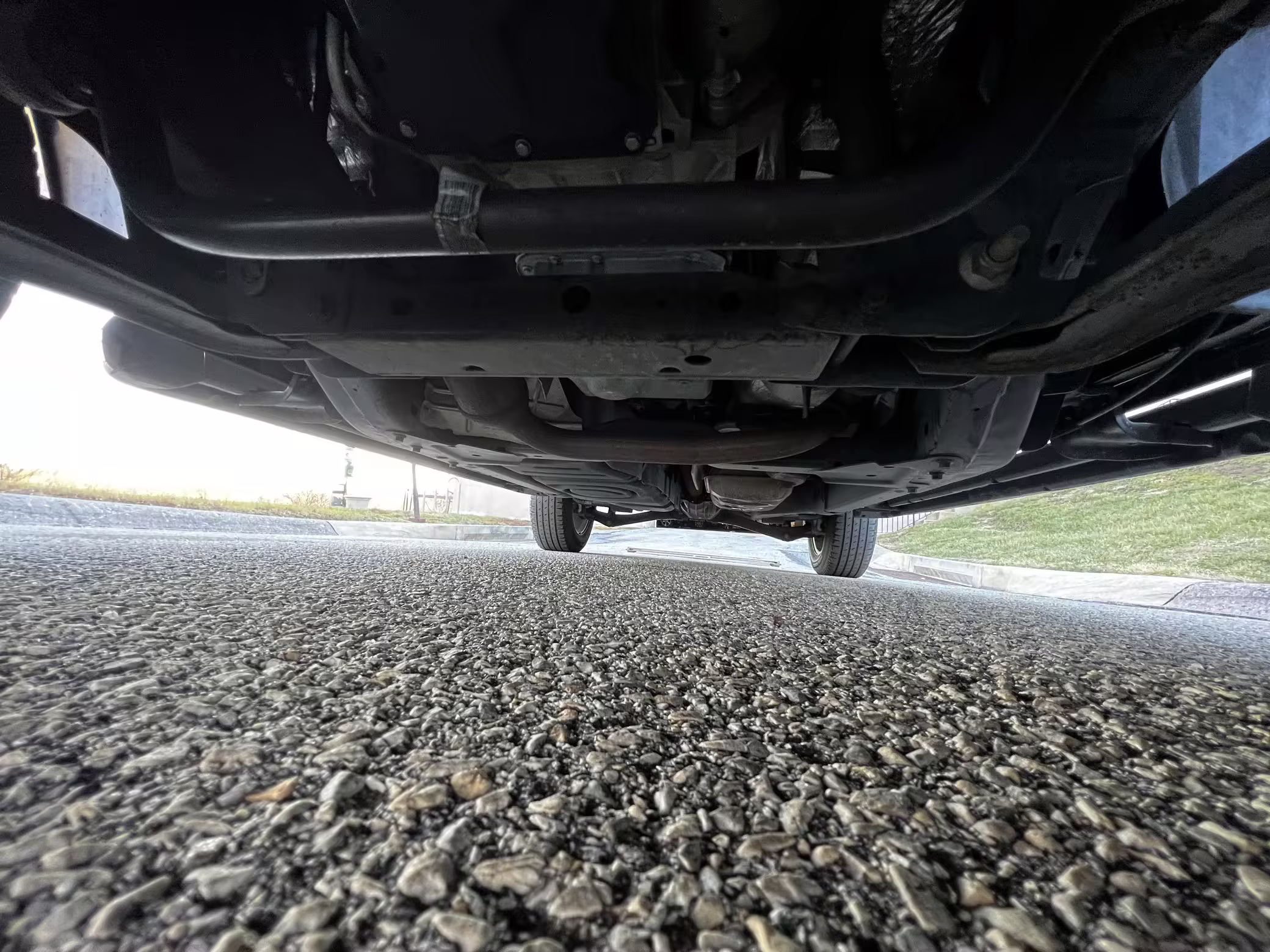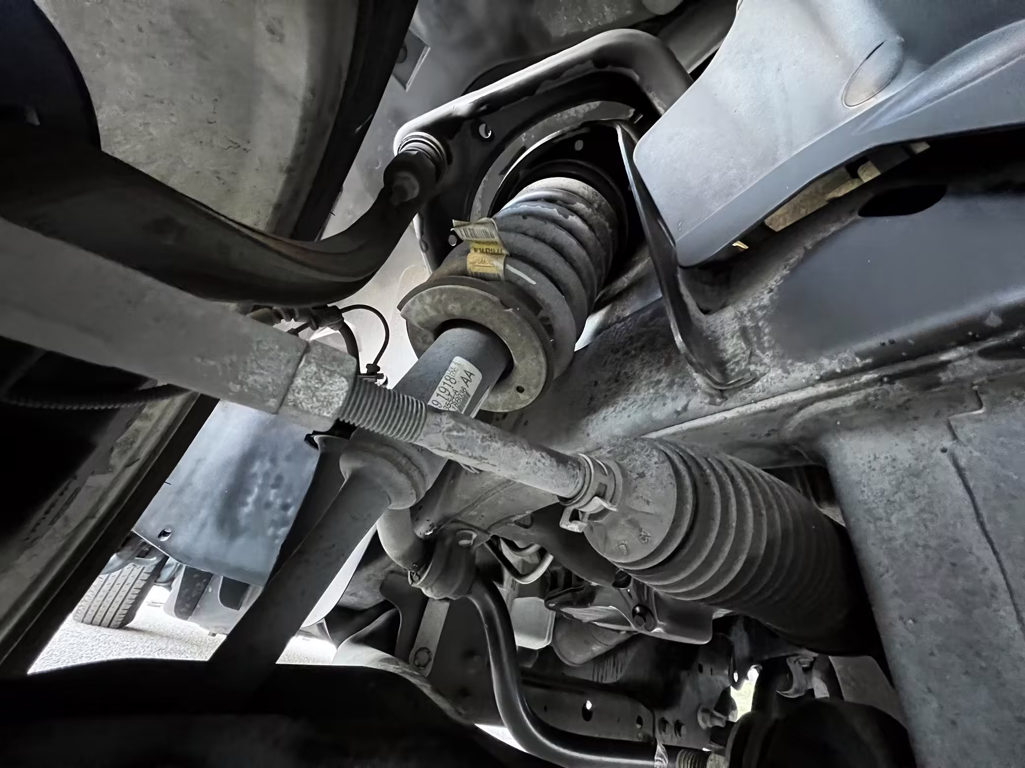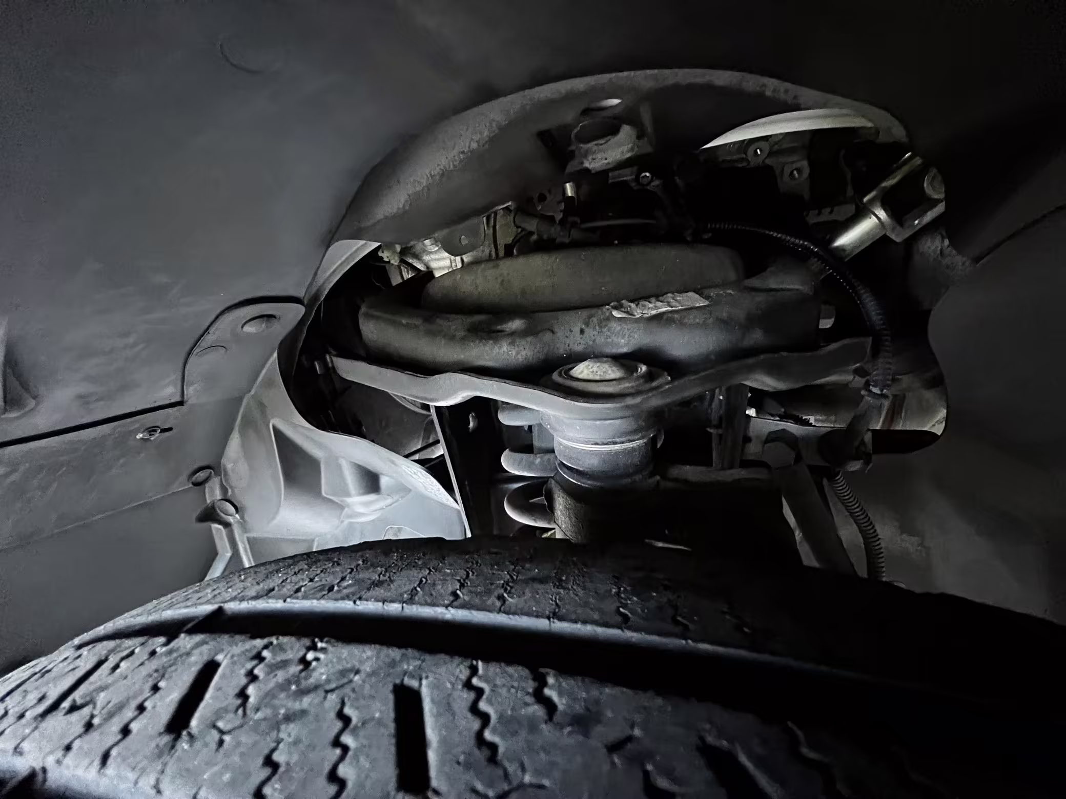 Exterior black plastic trim is weathered