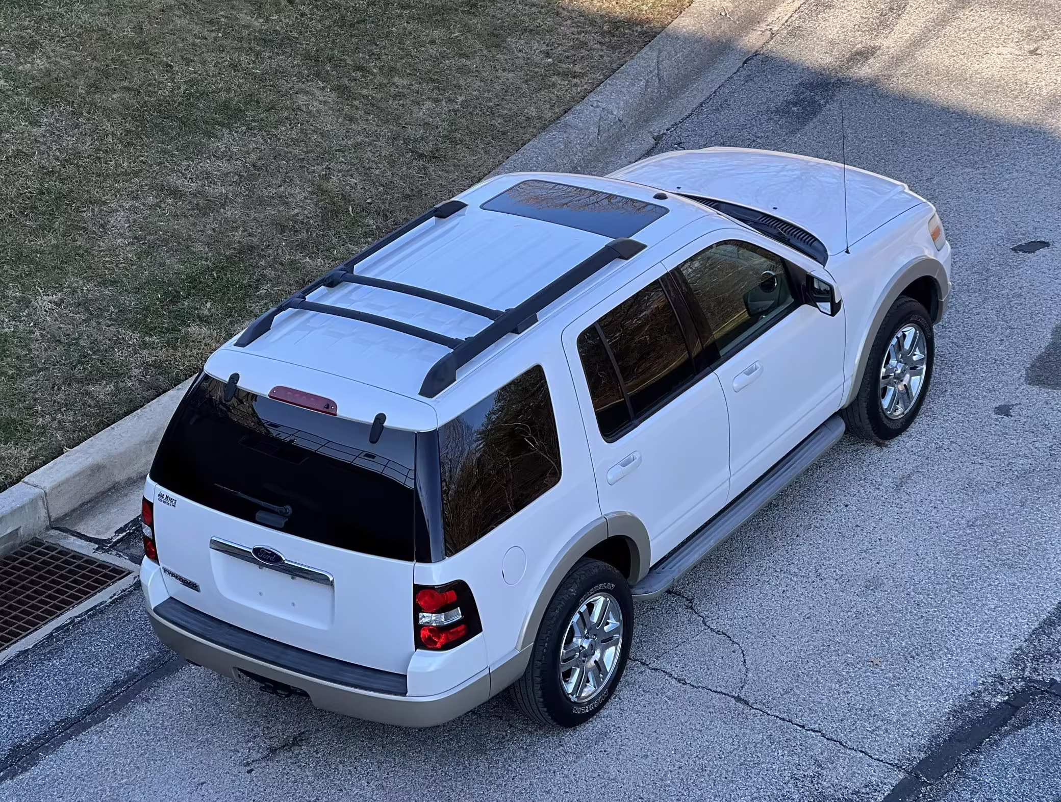 According to the window sticker provided in the gallery, this Explorer carried an MSRP of $37,430 when new. Factory equipment includes the Eddie Bauer Convenience Package, 18-inch chrome-clad aluminum wheels, a liftgate with a flip-open rear window, power-adjustable and heated front seats, split-folding second and third-row seats, auxiliary rear climate control, Ford SYNC, and cruise control. The selling dealer reports no modifications.