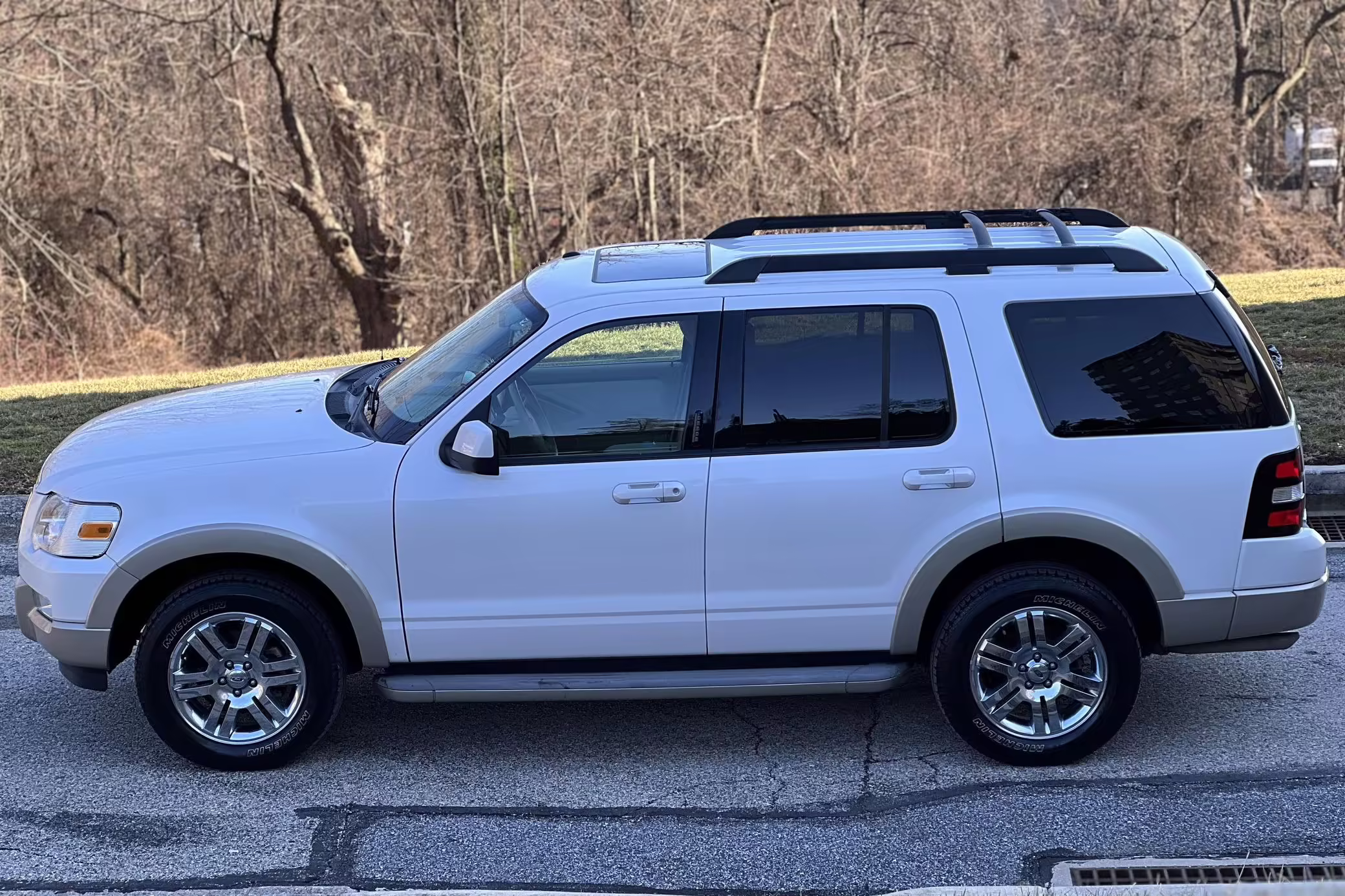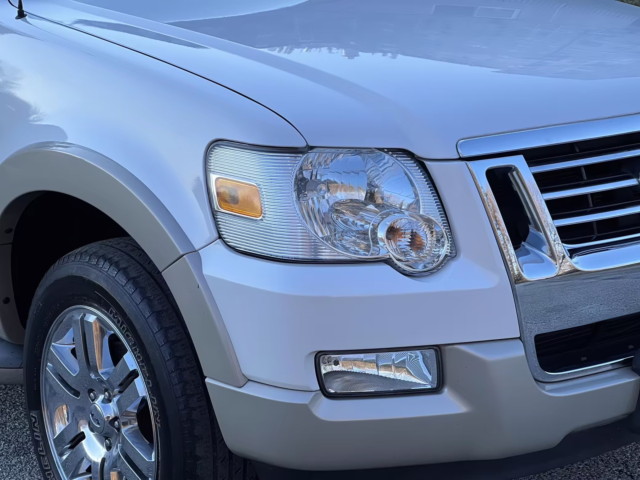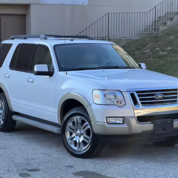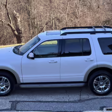 2010 Ford Explorer Eddie Bauer, finished in White Platinum Metallic Tri-Coat and Pueblo Gold with a Camel and Sand interior.