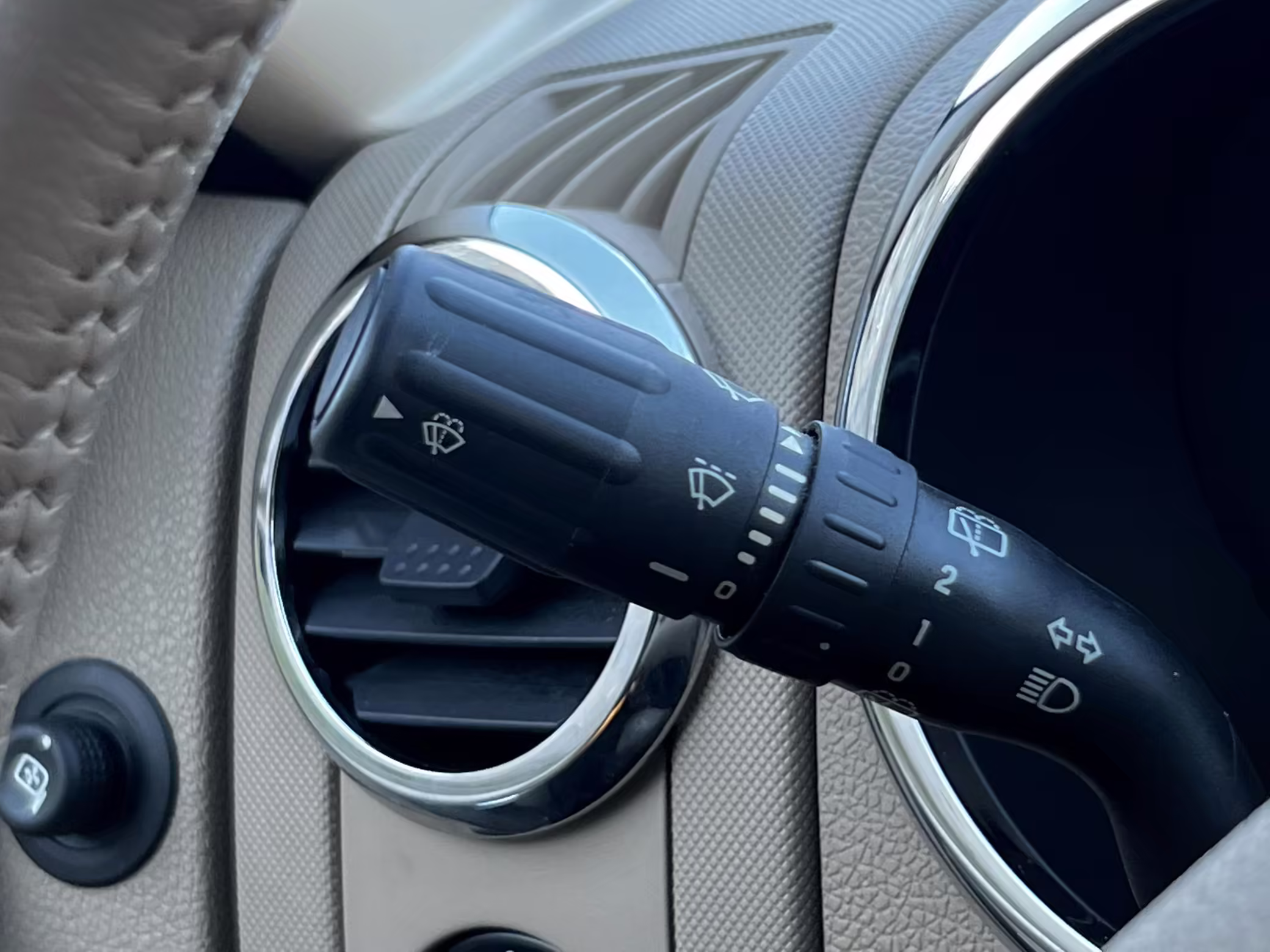 Leather-wrapped multifunction steering wheel