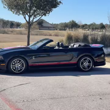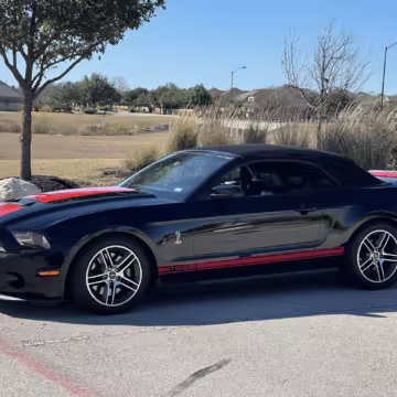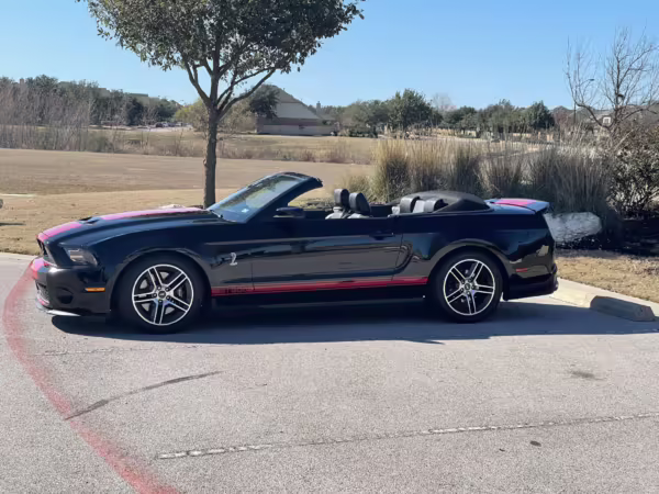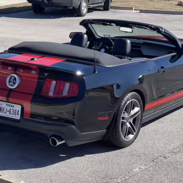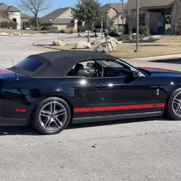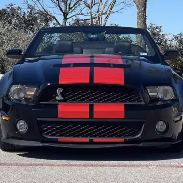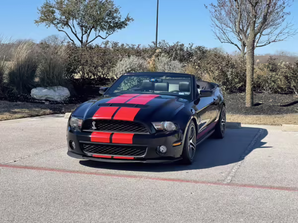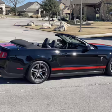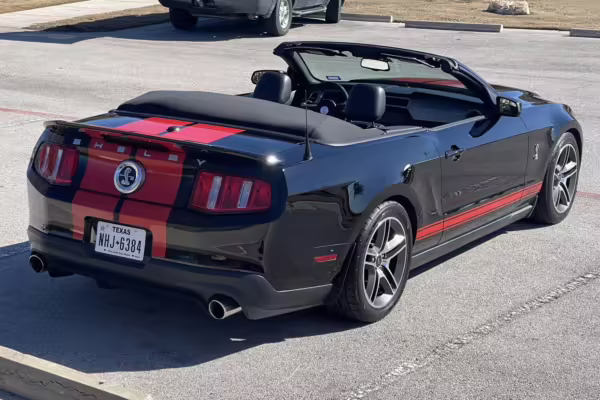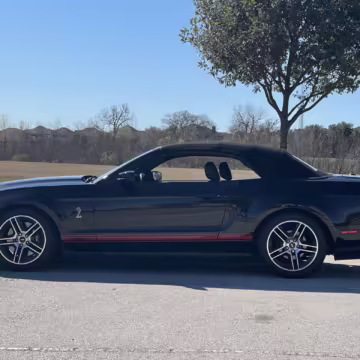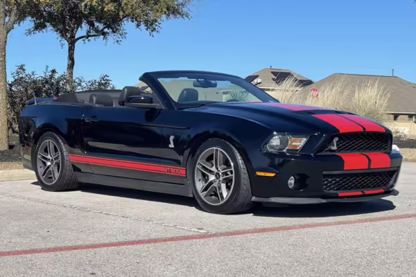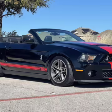 The Shelby GT500 variant of the “S197” generation of the Ford Mustang included upgrades over the GT model like a supercharged V8 engine, a unique aesthetic, and durability enhancements. Most GT500 models of this era were coupes, but this is the less common convertible version.