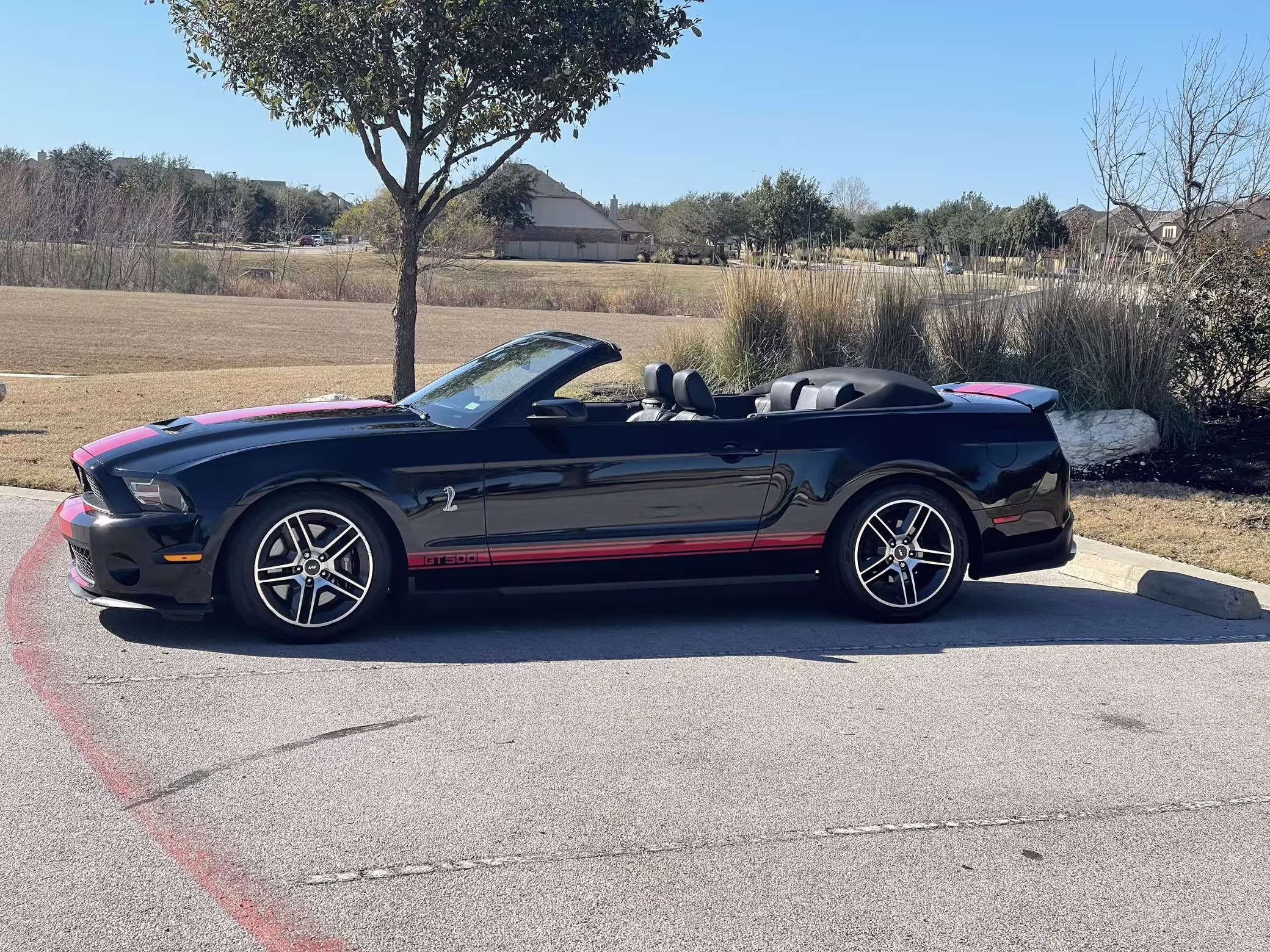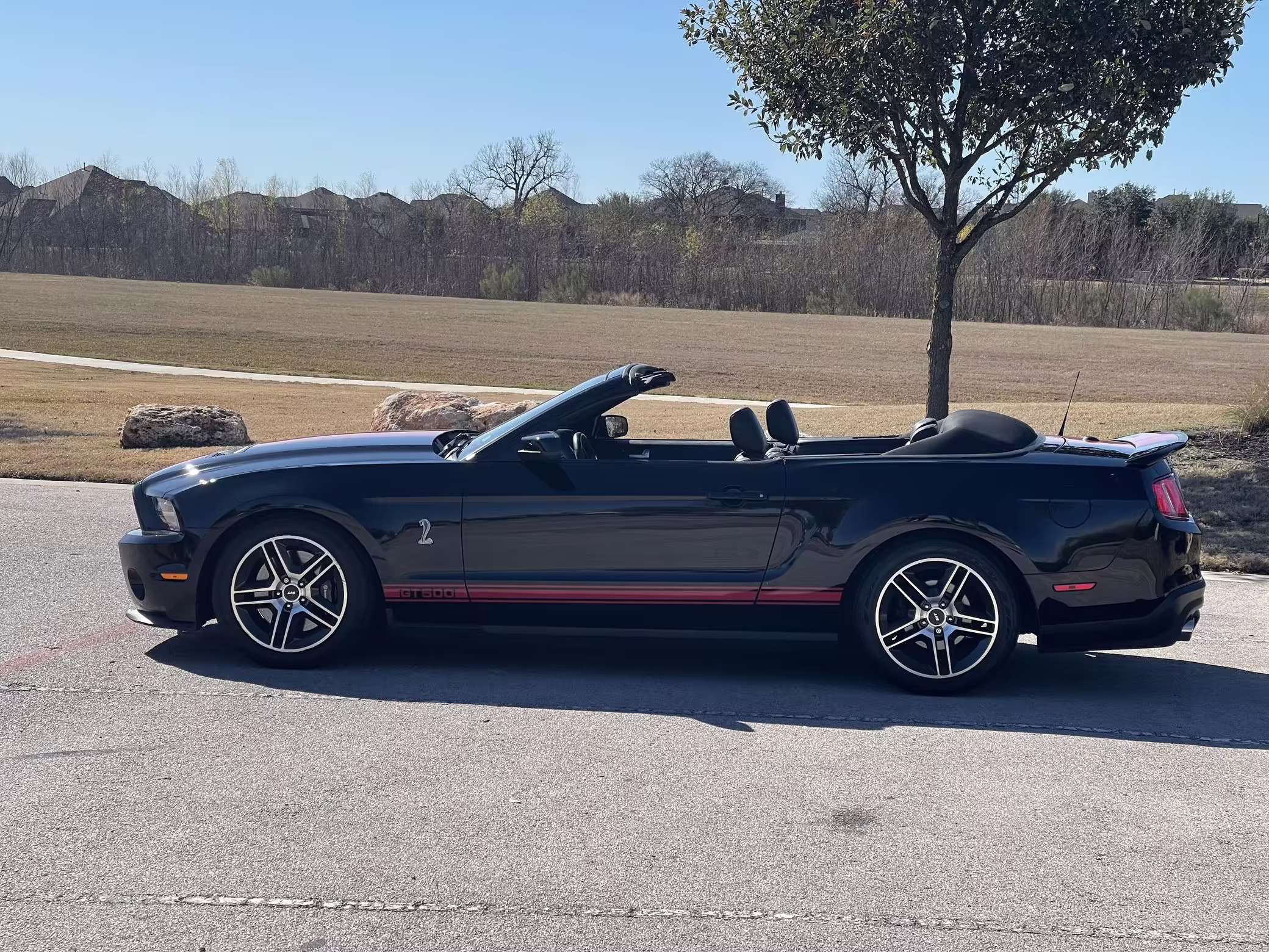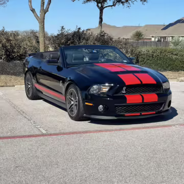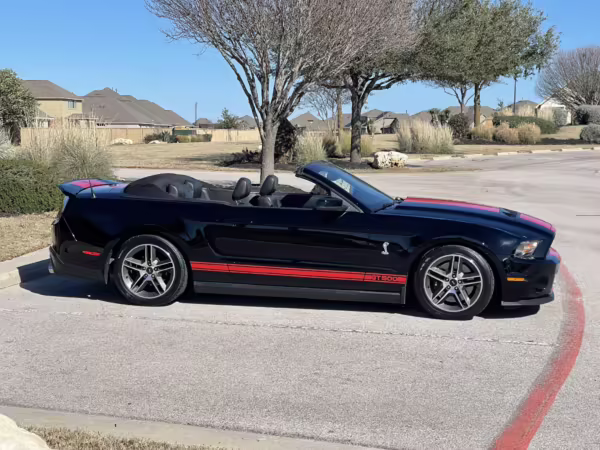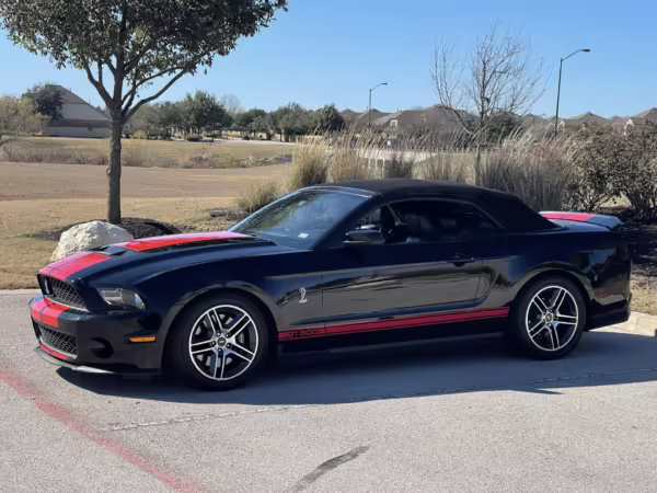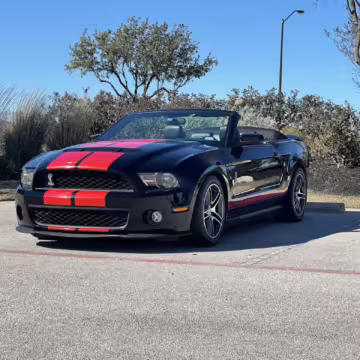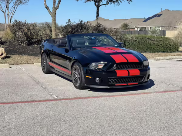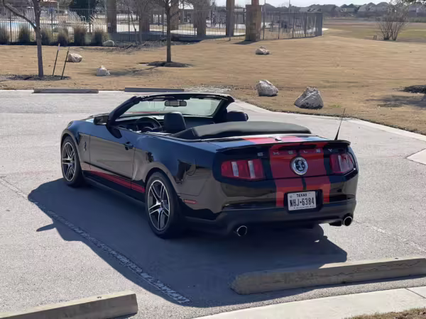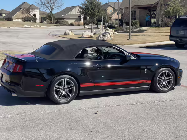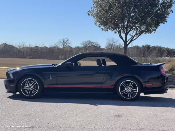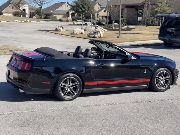 2010 Ford Mustang Shelby GT500 Convertible, finished in black with a black leather interior.