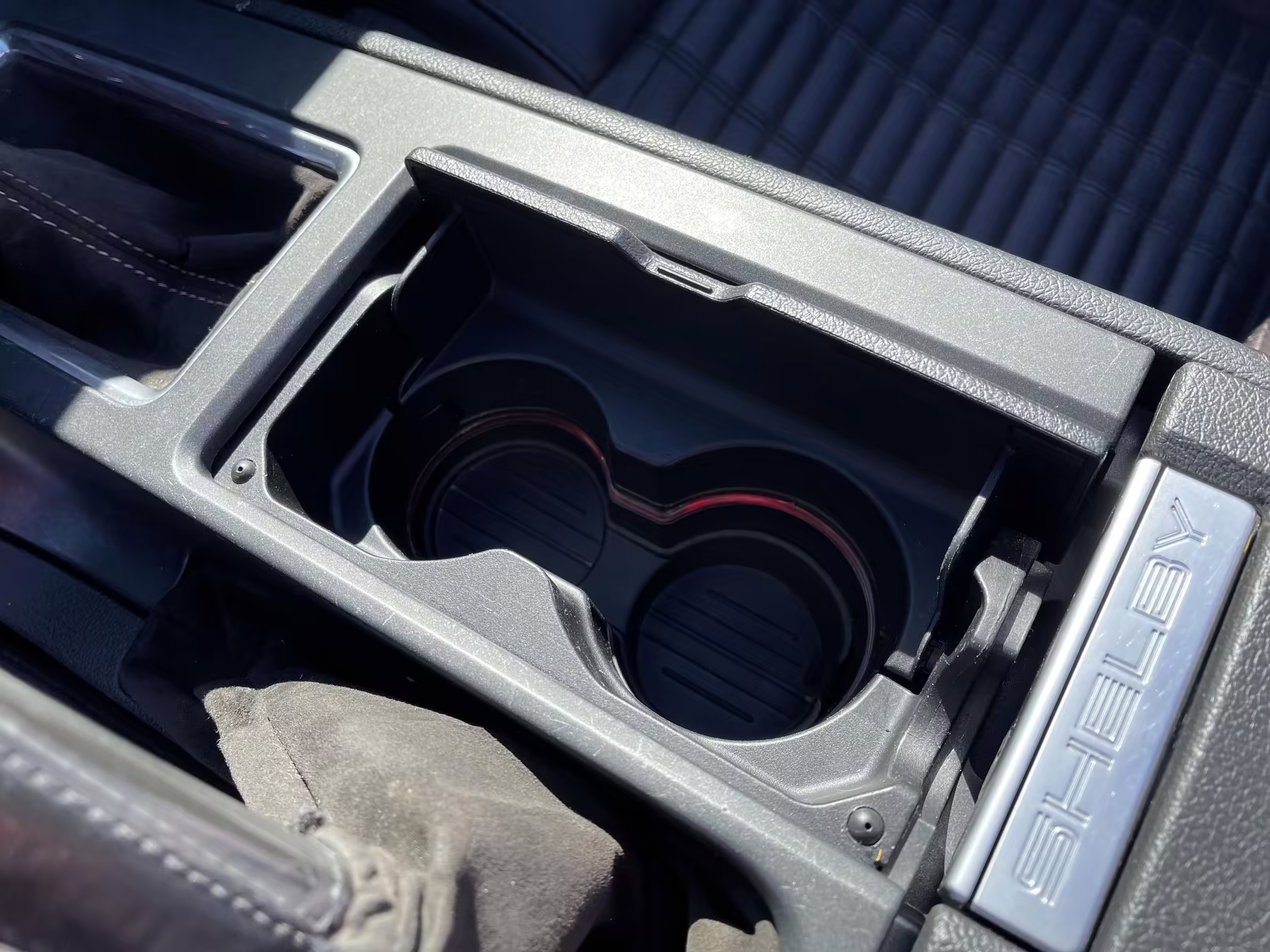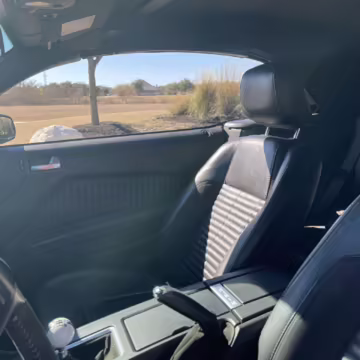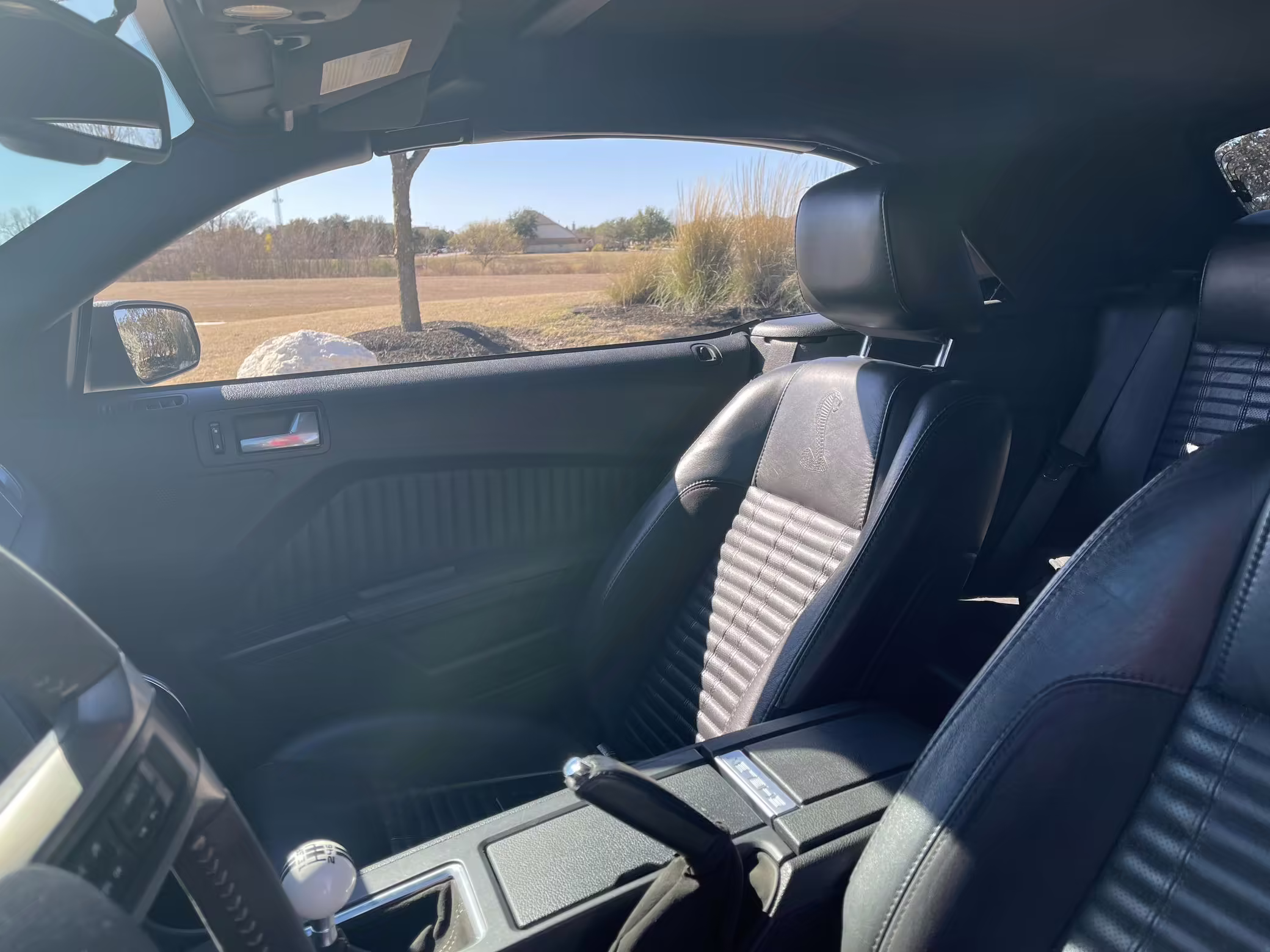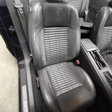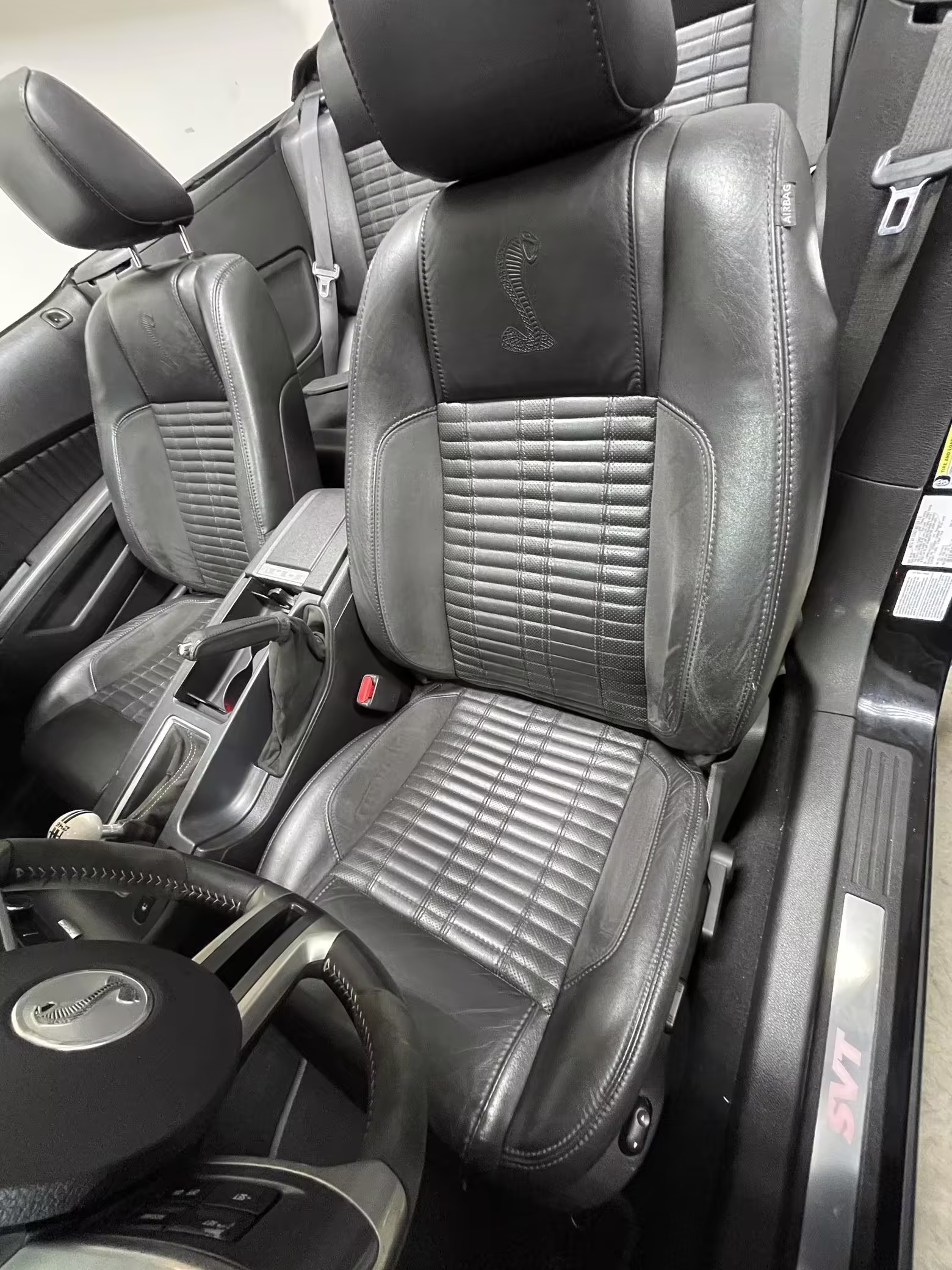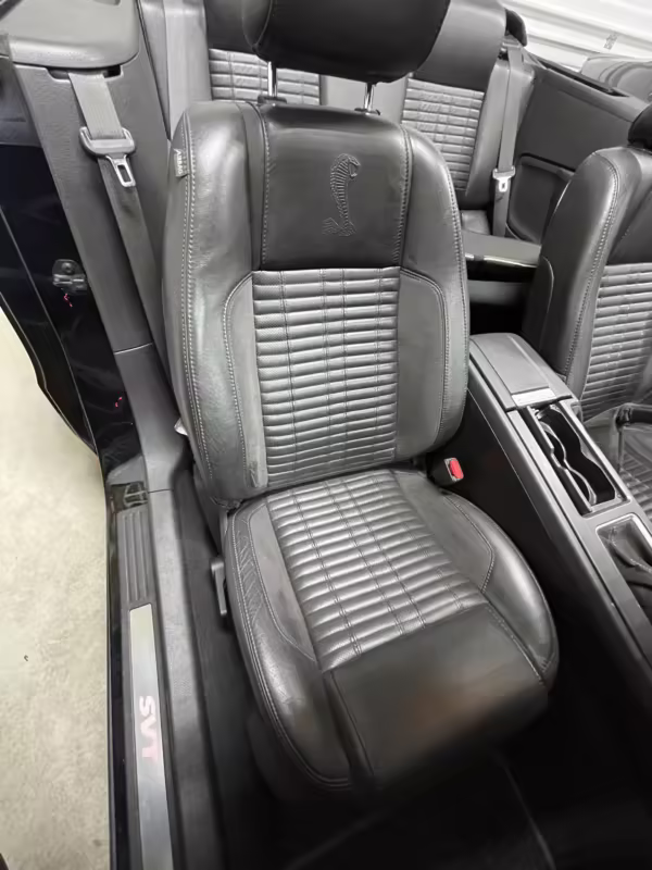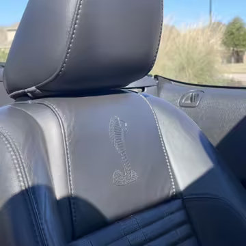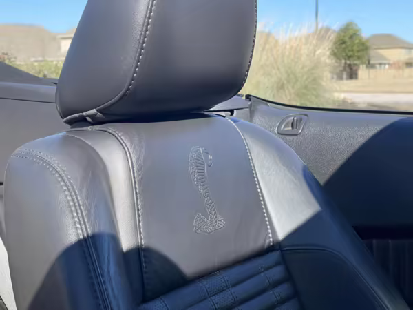 Sport bucket seats with racing stripe inserts and Cobra embroidery