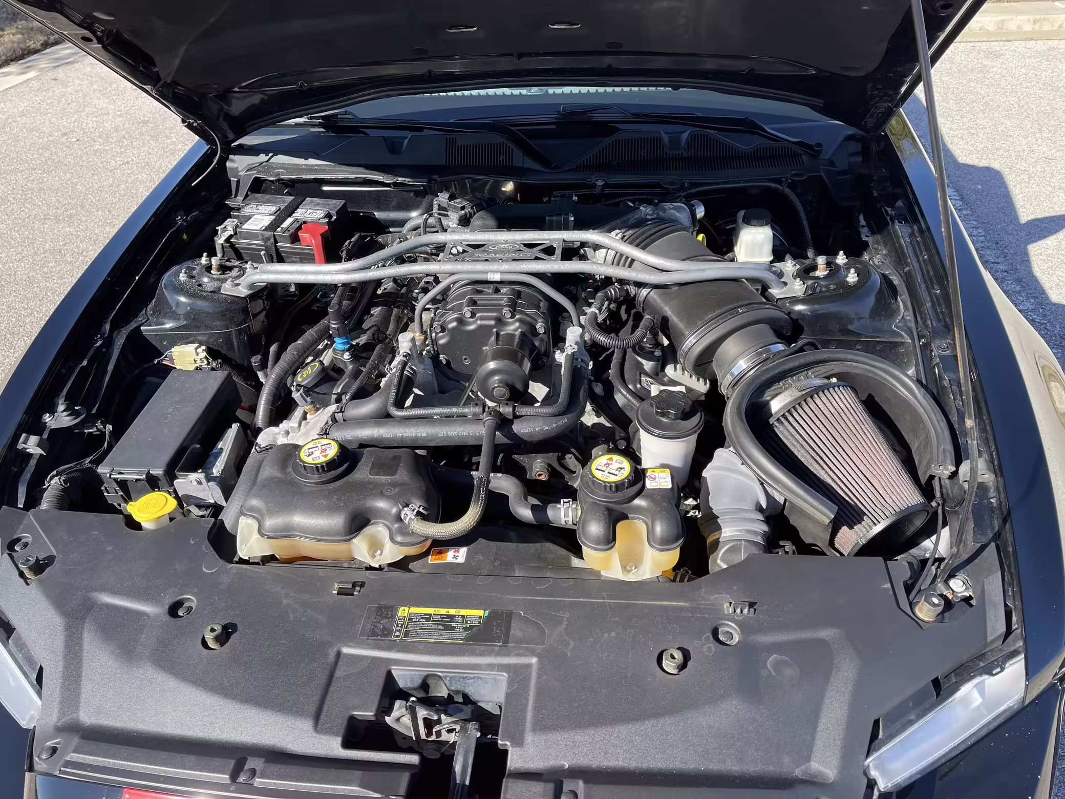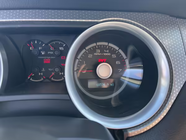 According to the window sticker pictured in the photo gallery, factory equipment on this GT500 includes an SVT-tuned suspension, limited-slip differential, Brembo front brakes, a Shaker 1000 audio system, and more. Modifications are limited to window tint.