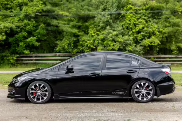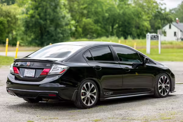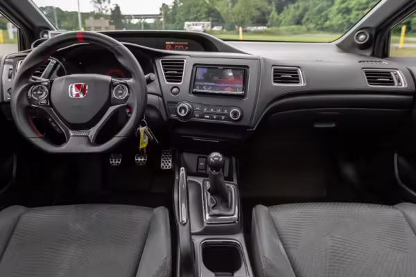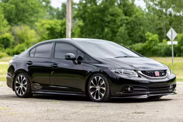 Introduced in 2011, the ninth-generation FB/FG Civic was smaller and lighter than outgoing models, though it featured more passenger room and better fuel economy. The Si variant was available as a coupe and sedan, and it was equipped with a new, larger, and more powerful engine than standard models as well as upgraded sway bars and a more rigid chassis. It boasted a 7,000 rpm redline, and its only transmission option was a 6-speed manual with a helical limited-slip differential.