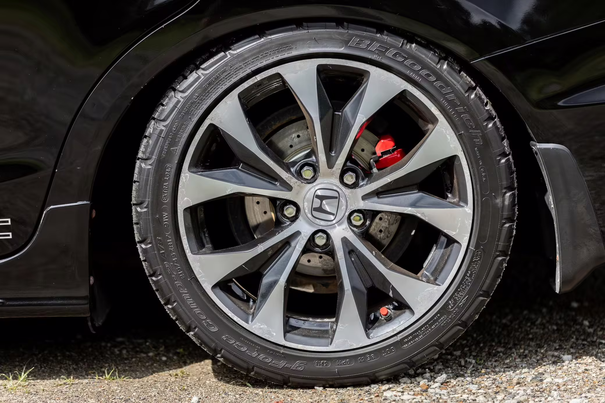 Some curb rash and peeled finish on wheels