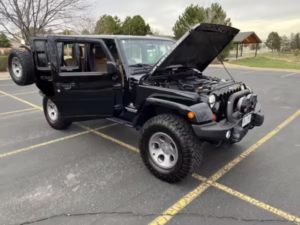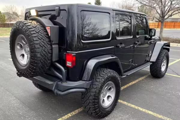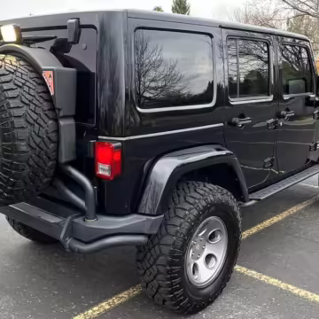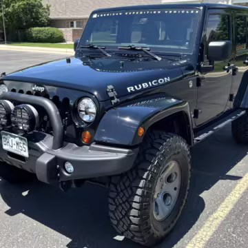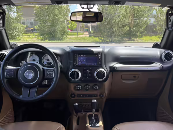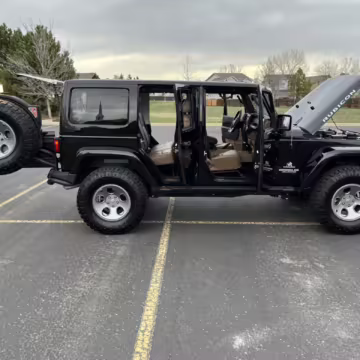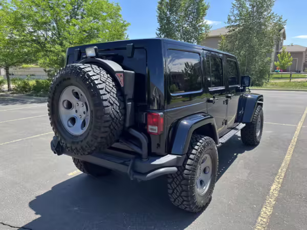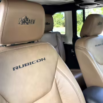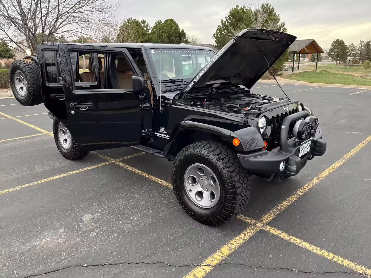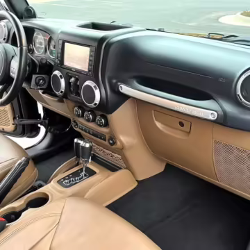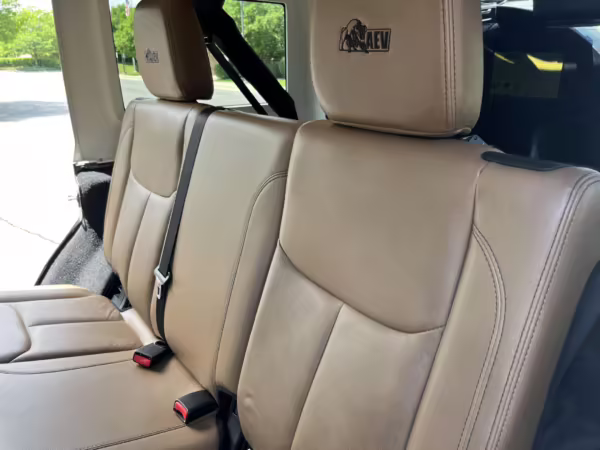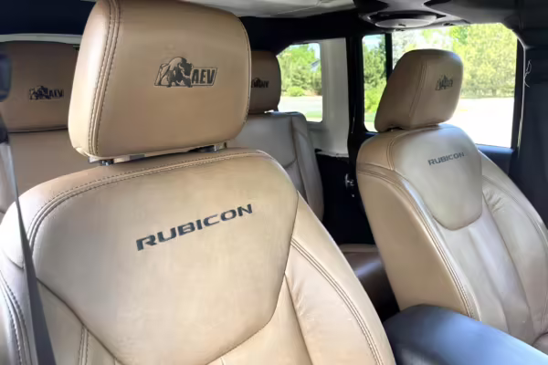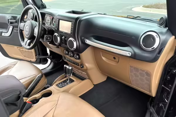 2013 Jeep Wrangler Unlimited Rubicon AEV JK250 4×4, finished in black with a Camel interior.