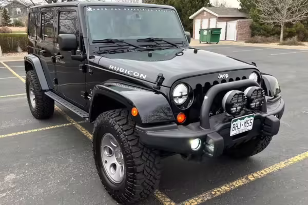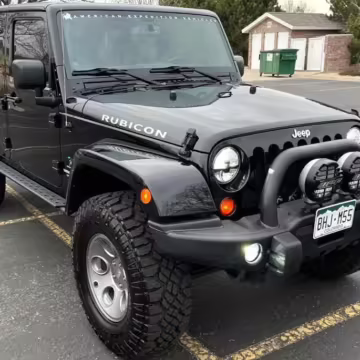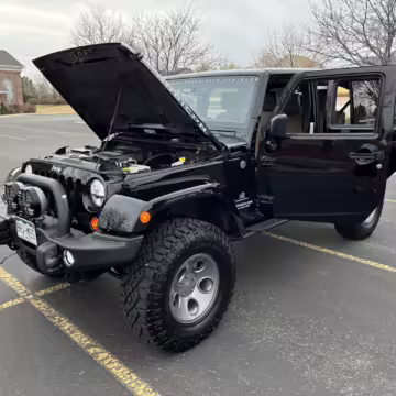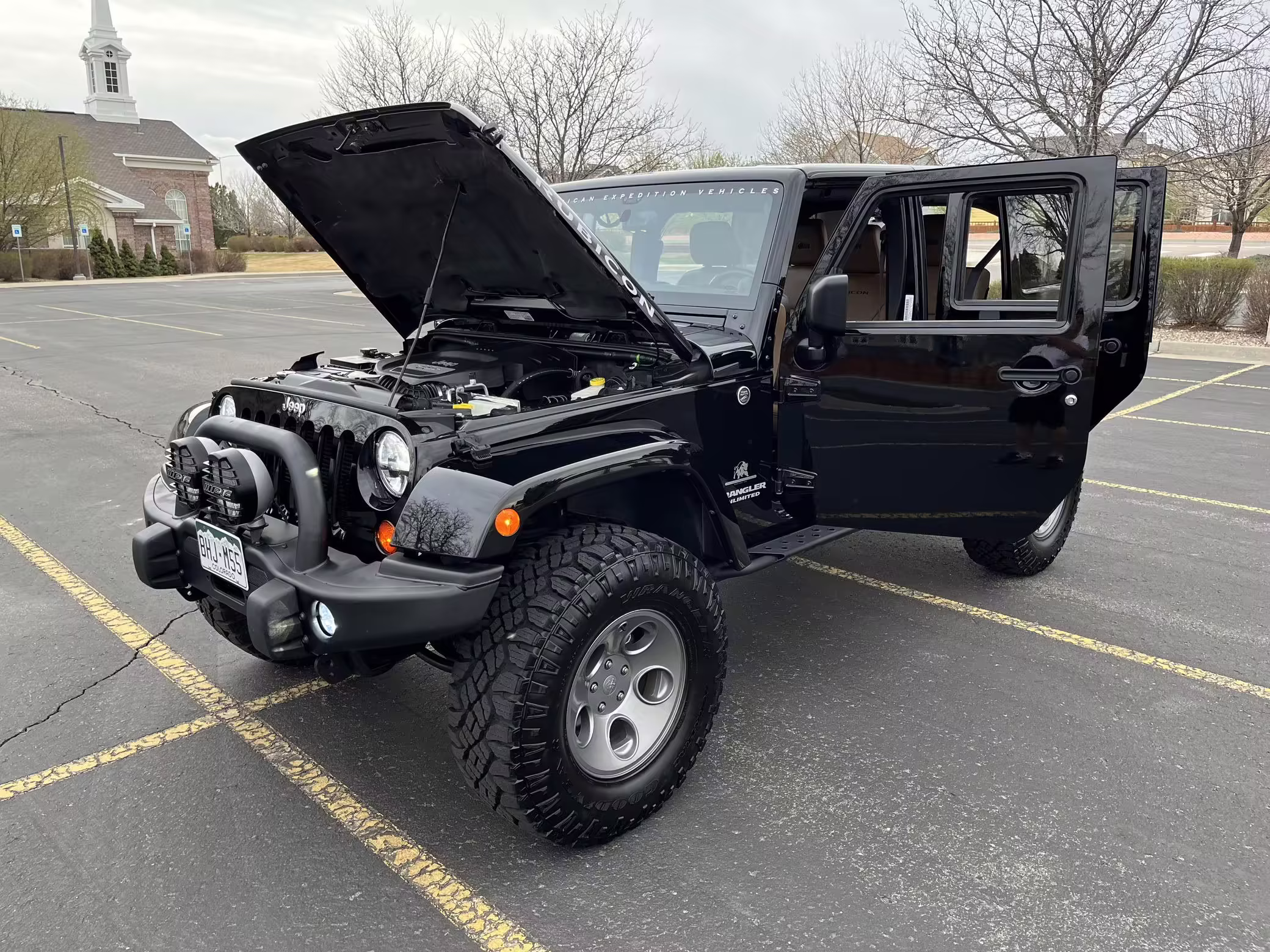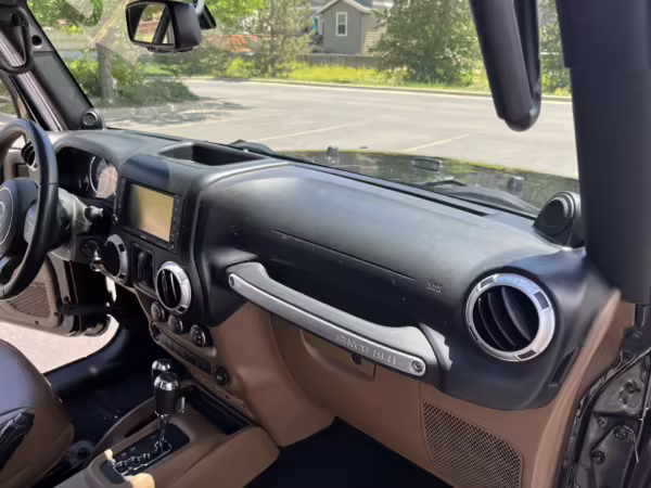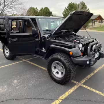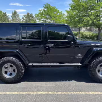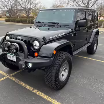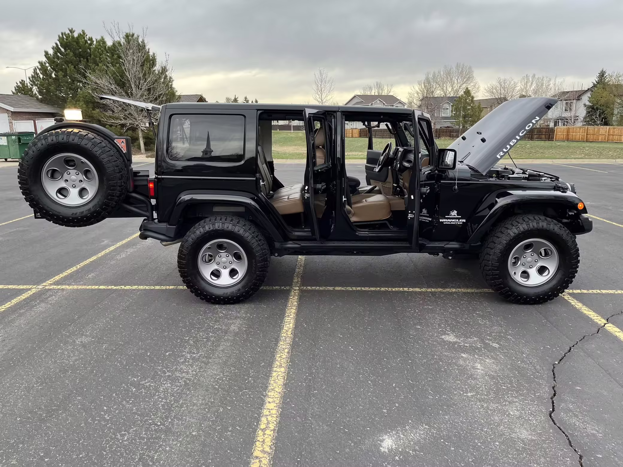 2013 Jeep Wrangler Unlimited Rubicon AEV JK250 4×4, finished in black with a Camel interior.