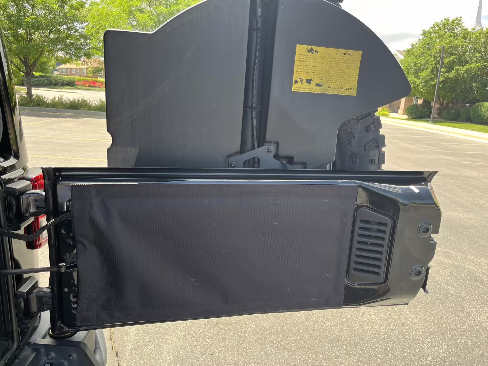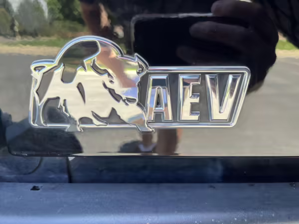 The attached window sticker highlights the Jeep factory equipment list, while a partial list of notable AEV equipment includes: