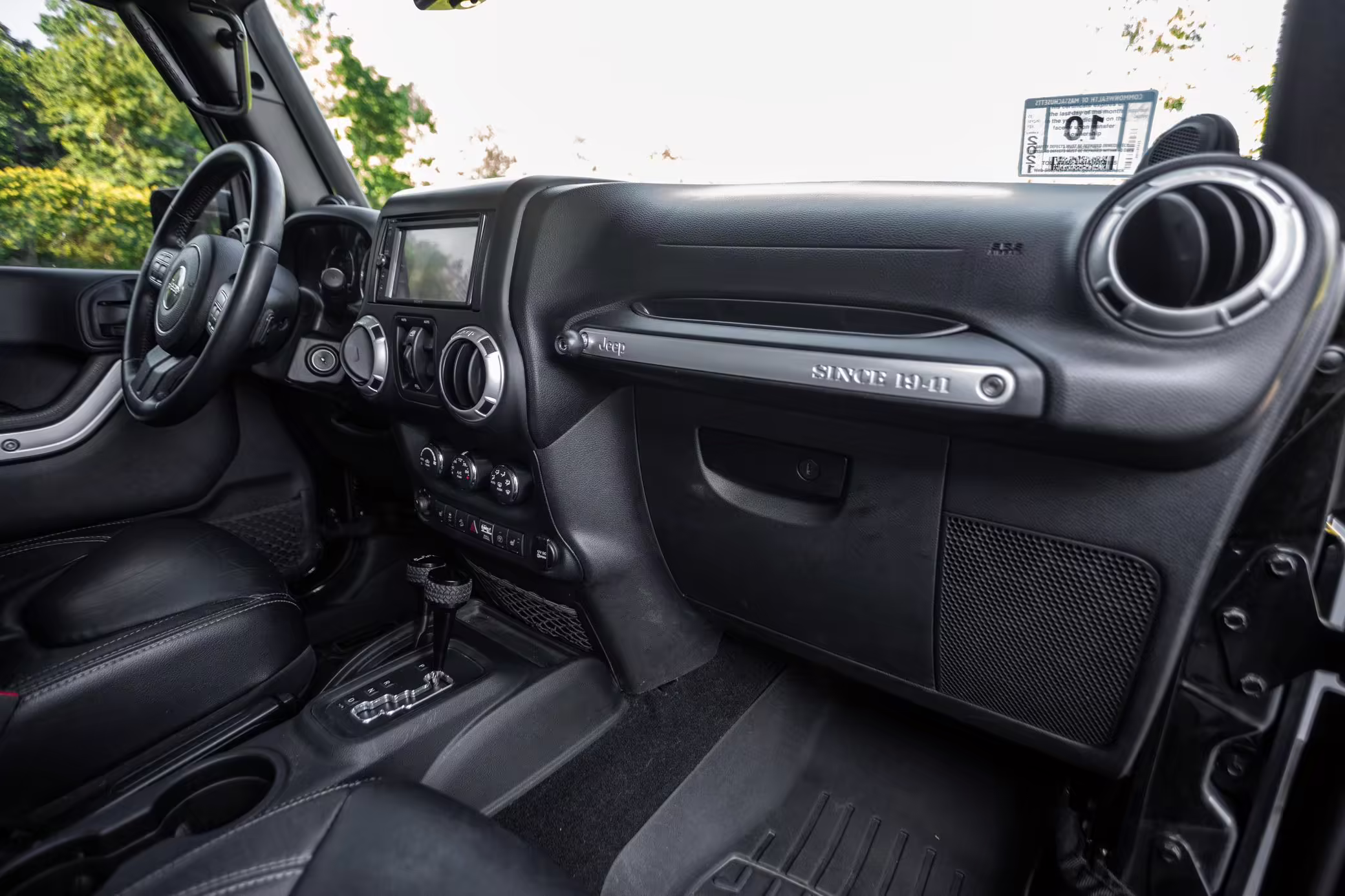 A window sticker is shown in the gallery, and a partial list of notable equipment includes: