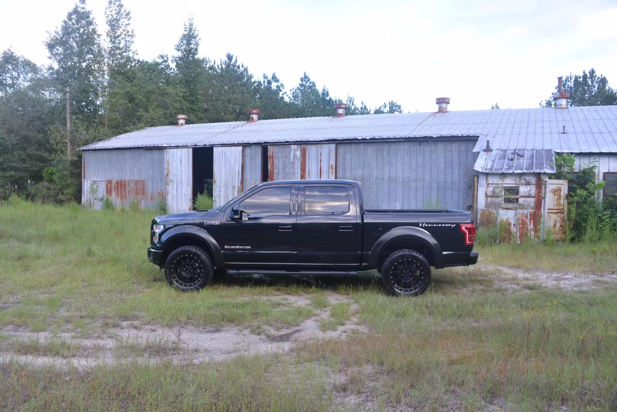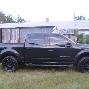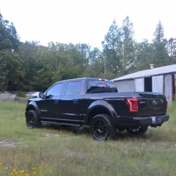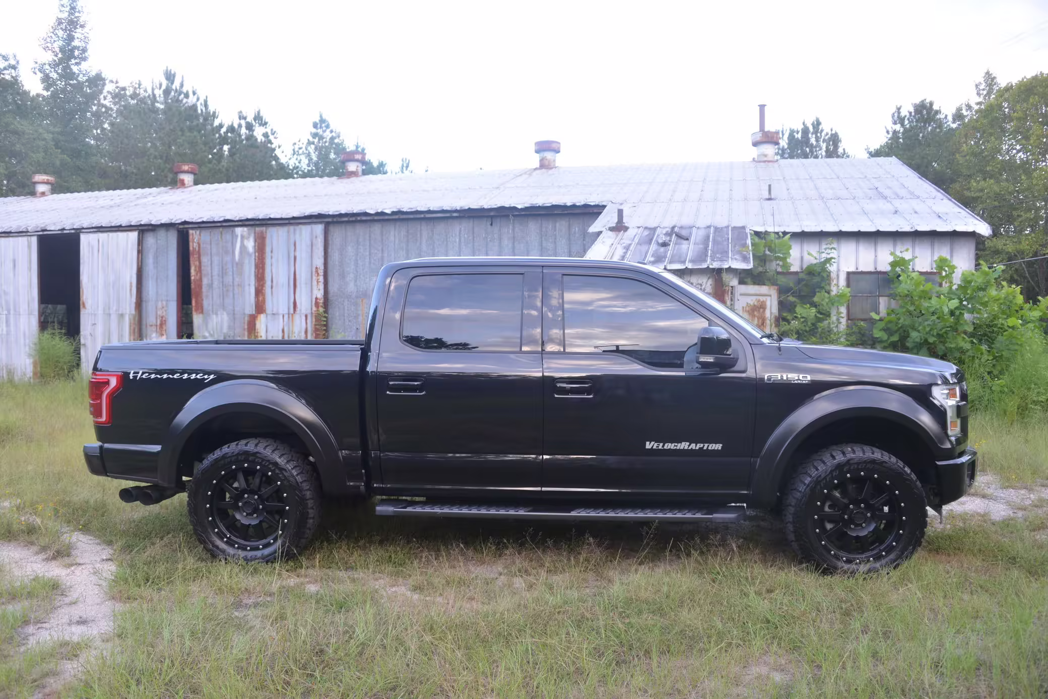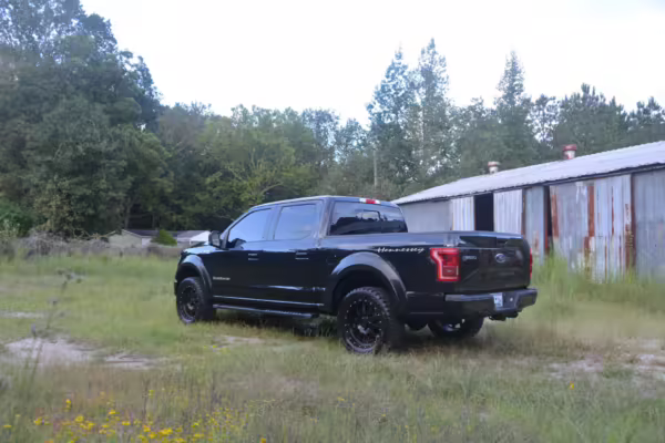 This truck began life as a Ford F-150 Lariat SuperCrew but then received the Hennessey VelociRaptor 600 performance upgrade. This includes a supercharger, a high-flow intake, stainless steel exhaust, upgraded fuel injectors, and a tune. This truck is #008 of 500 for the 2015 model year, which did not have a Raptor model from Ford.