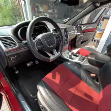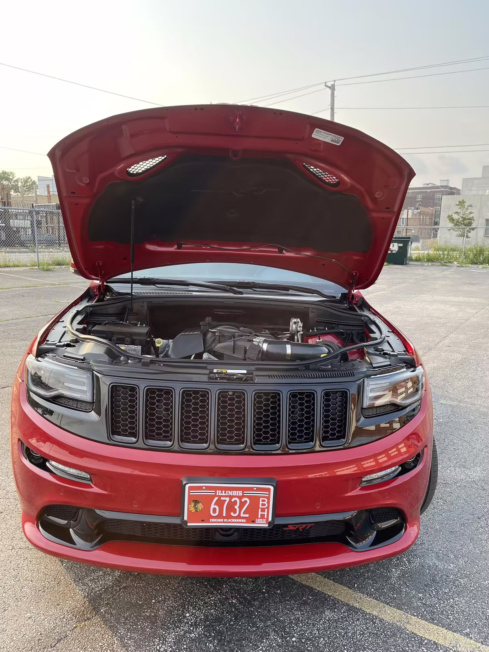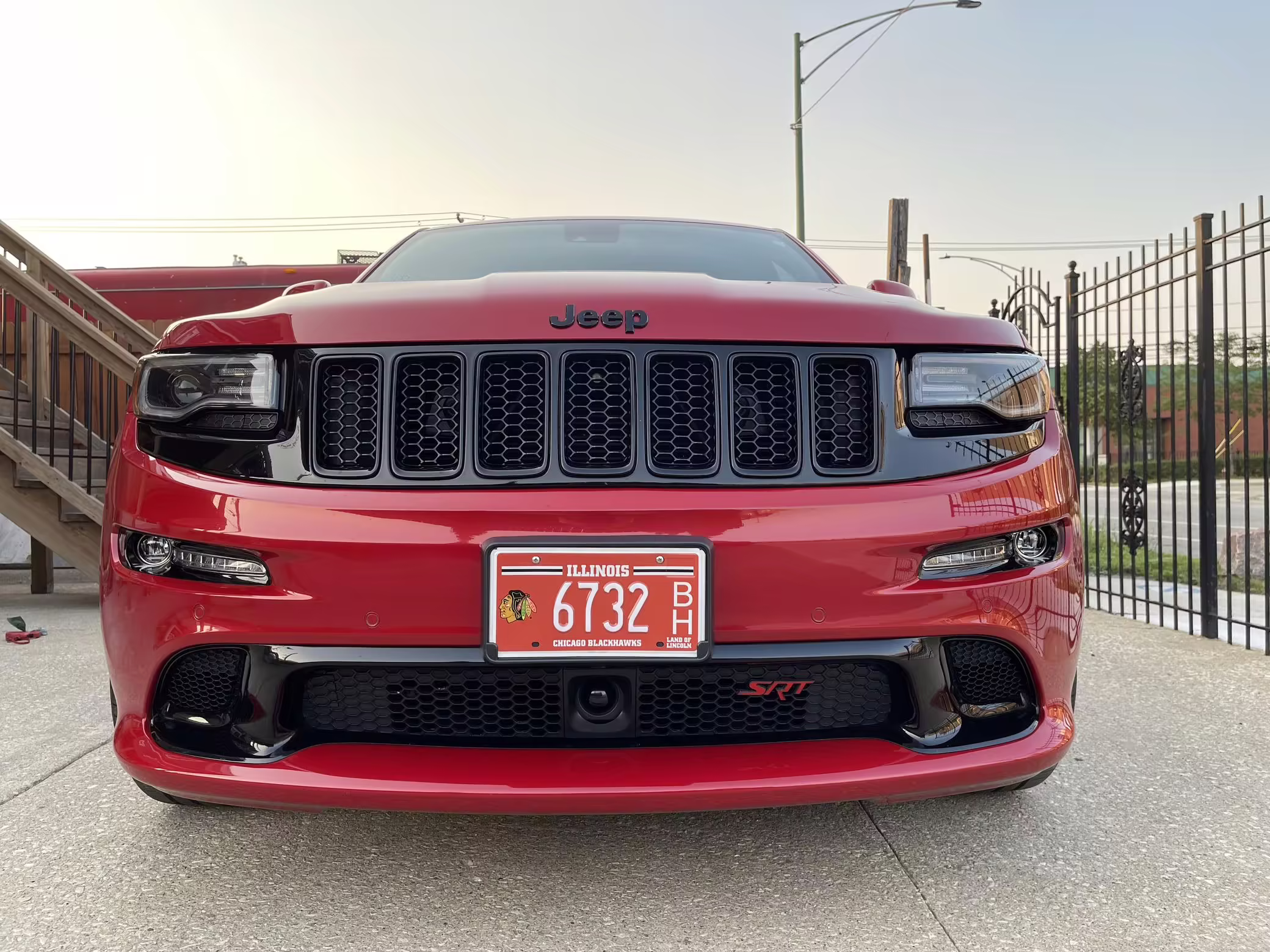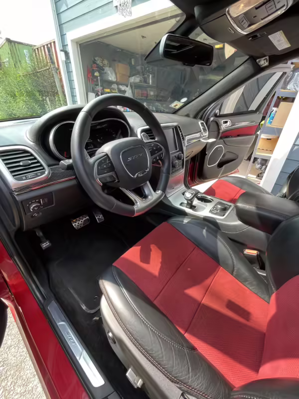 2015 Jeep Grand Cherokee SRT, finished in Redline Red Pearl with a red and black interior.