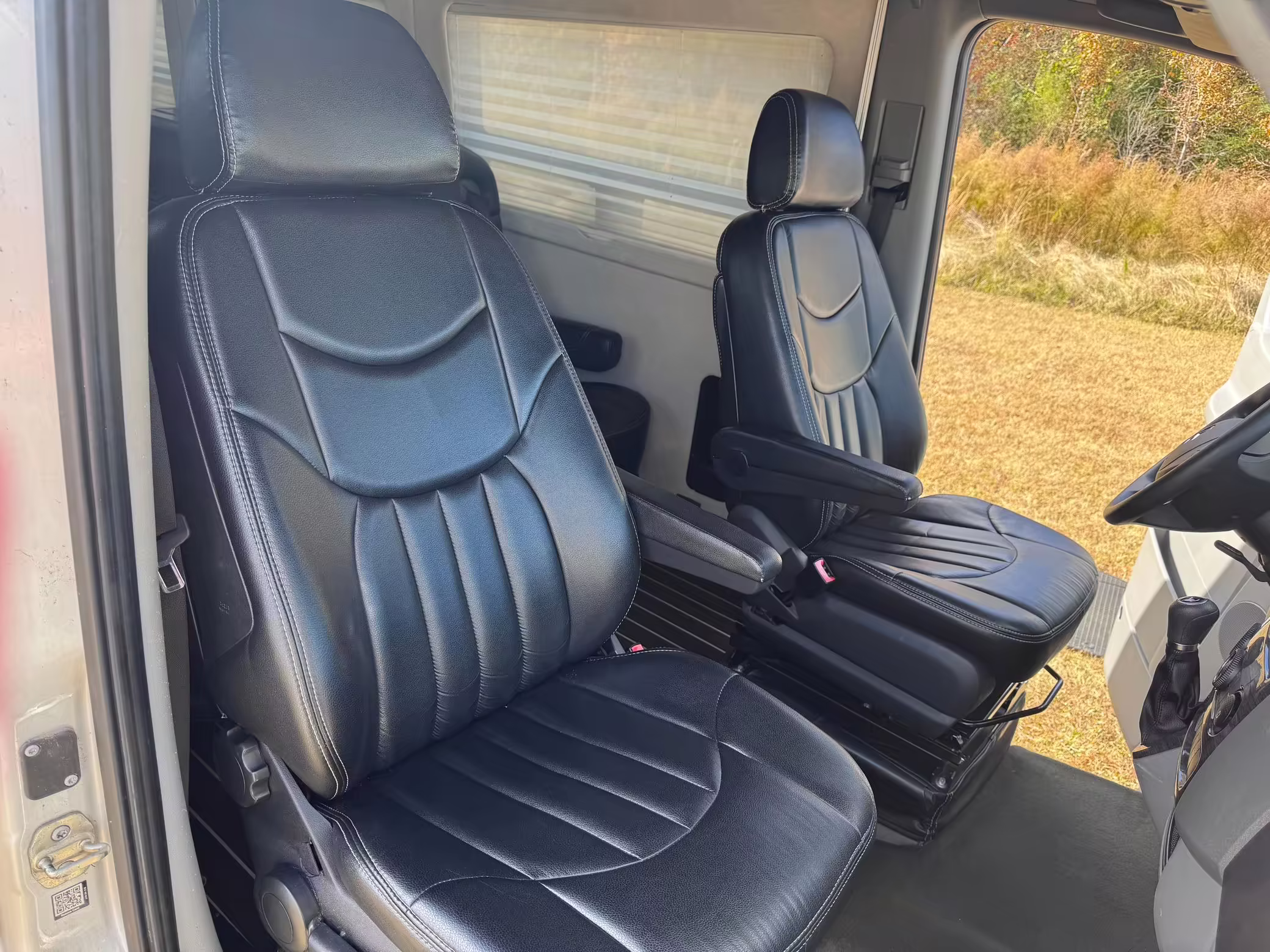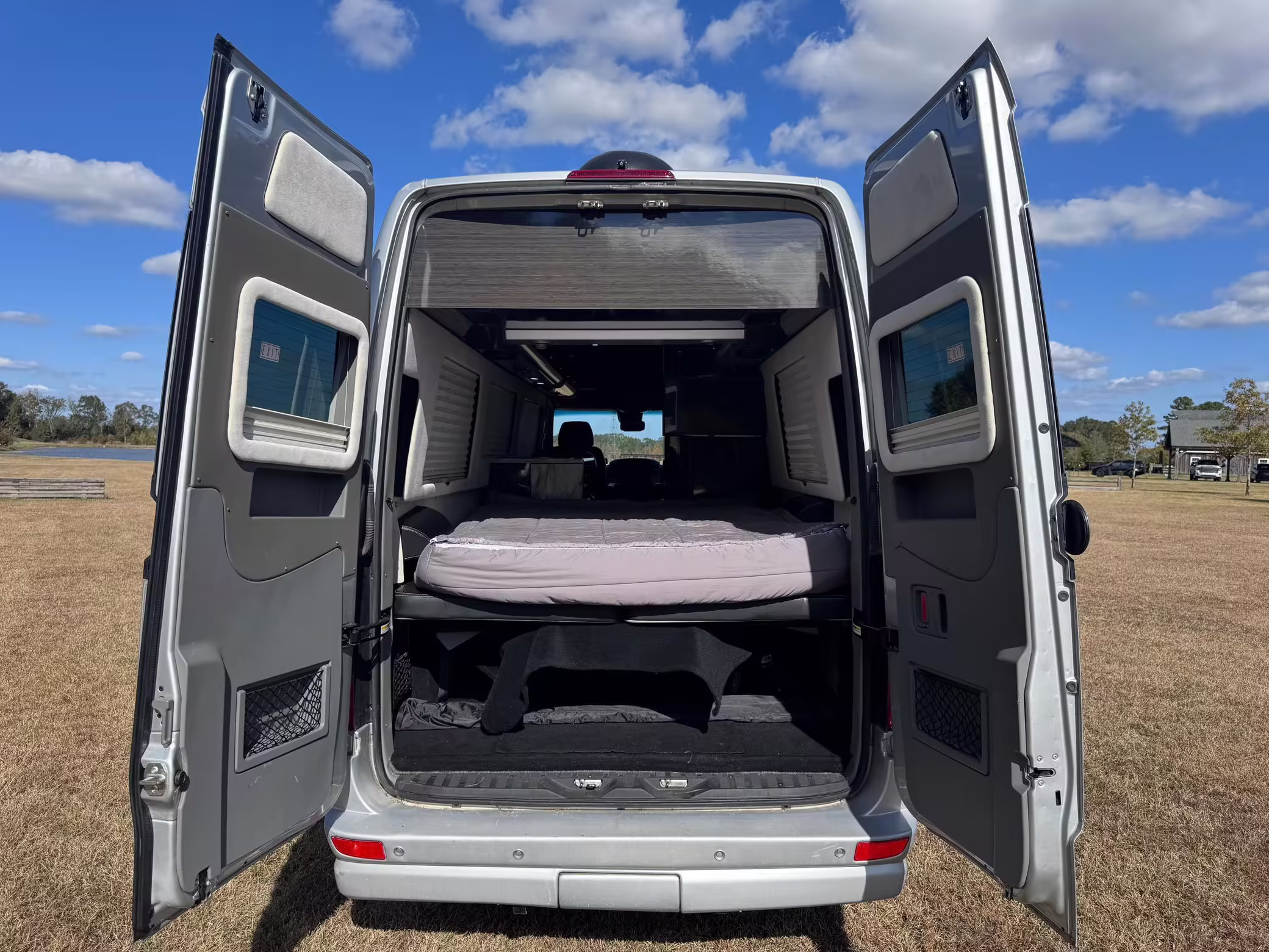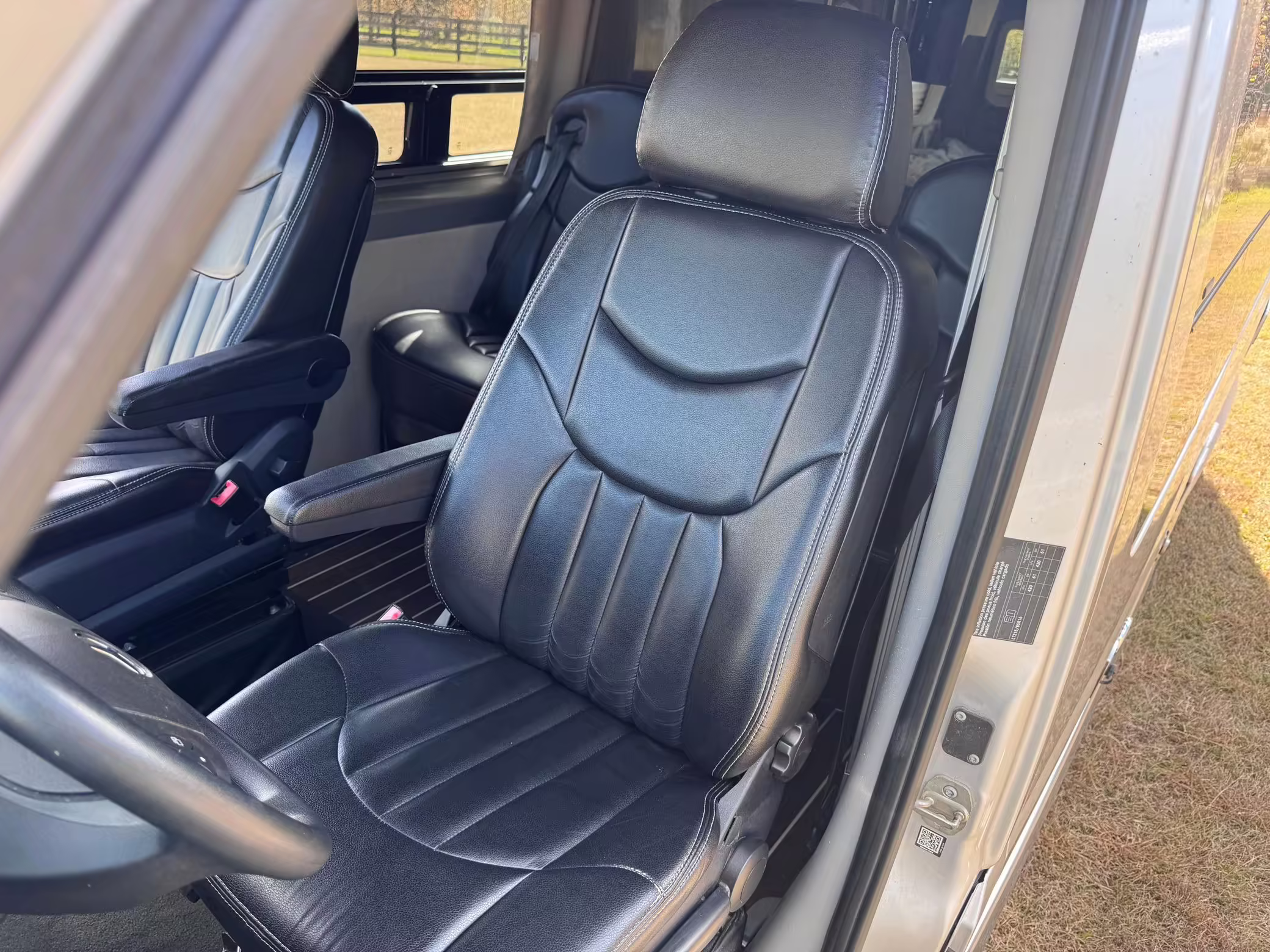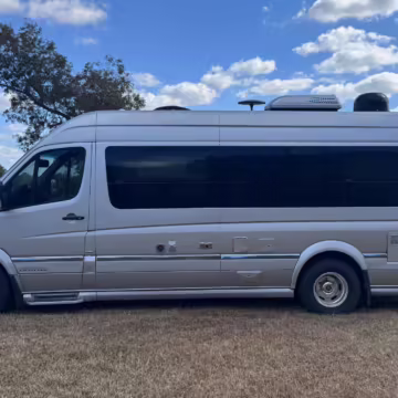 This van is based on the sturdy Sprinter 3500 chassis, and it features everything you need for a comfortable road trip: it seats nine and sleeps three, and it boasts a kitchen, a bathroom (with a shower), and even two televisions!