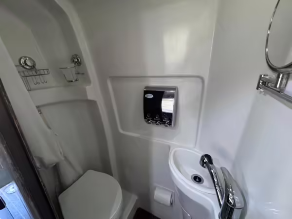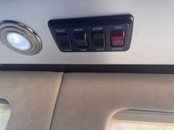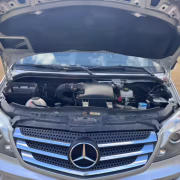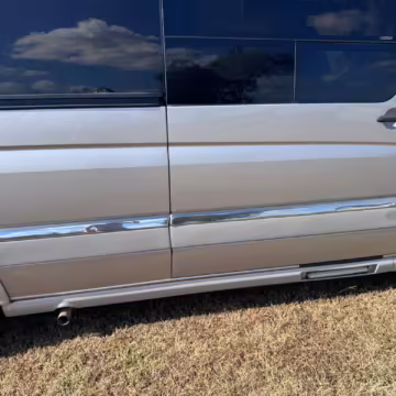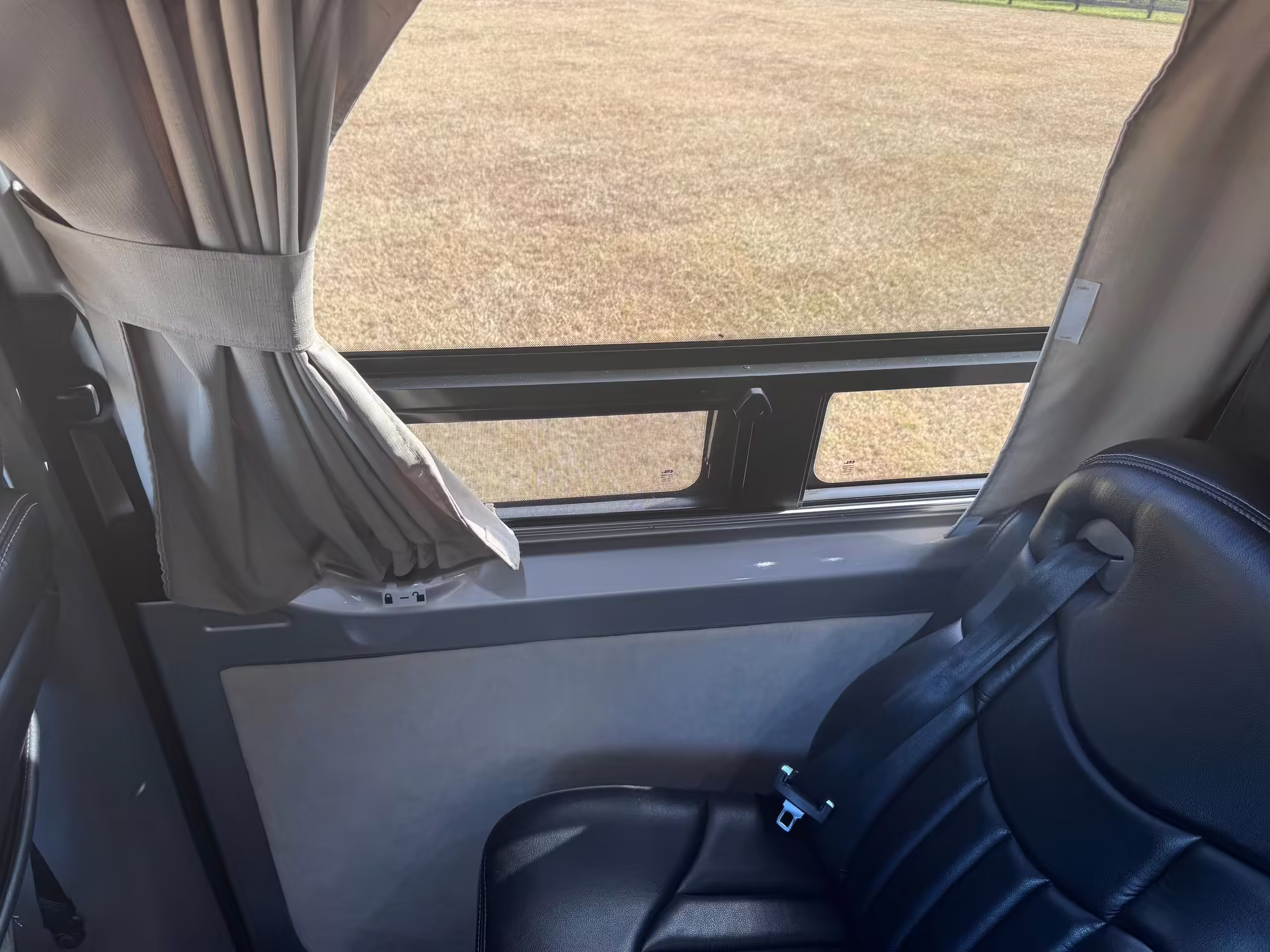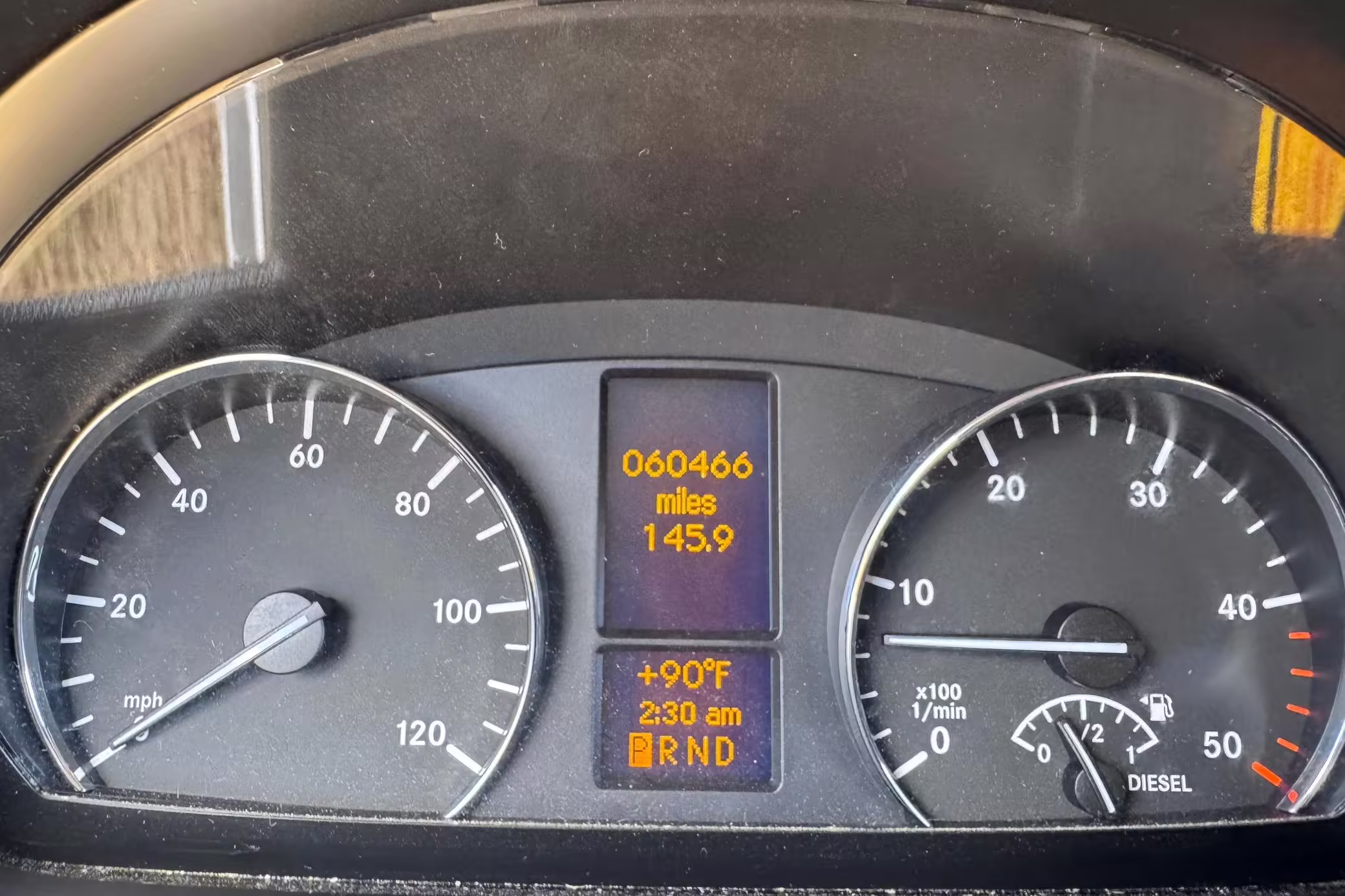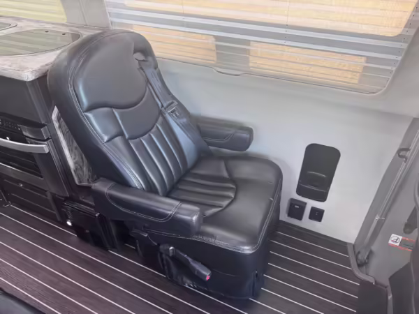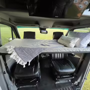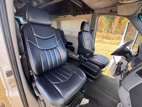 This van is based on the sturdy Sprinter 3500 chassis, and it features everything you need for a comfortable road trip: it seats nine and sleeps three, and it boasts a kitchen, a bathroom (with a shower), and even two televisions!