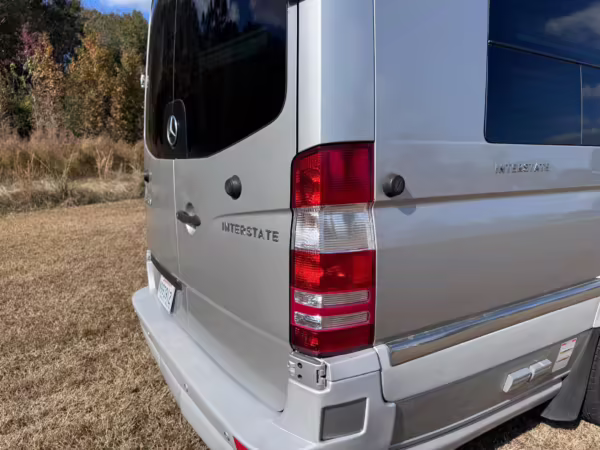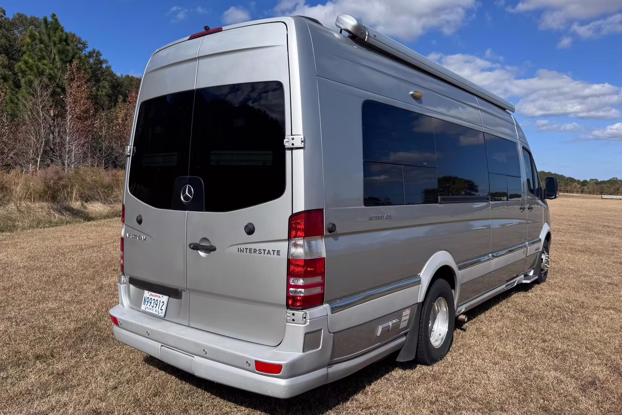 2015 Mercedes-Benz Sprinter 3500 Airstream Interstate, finished in Bright Silver Metallic with a black interior.