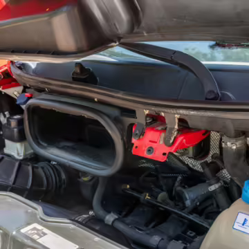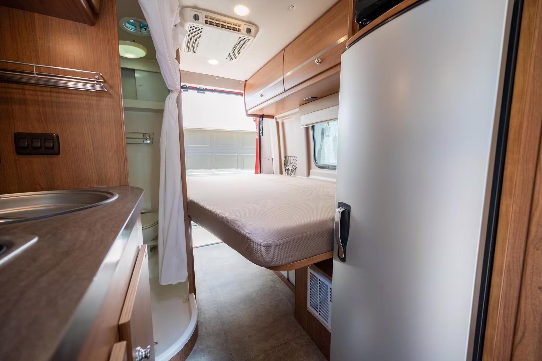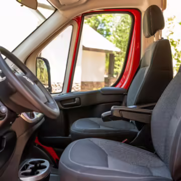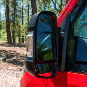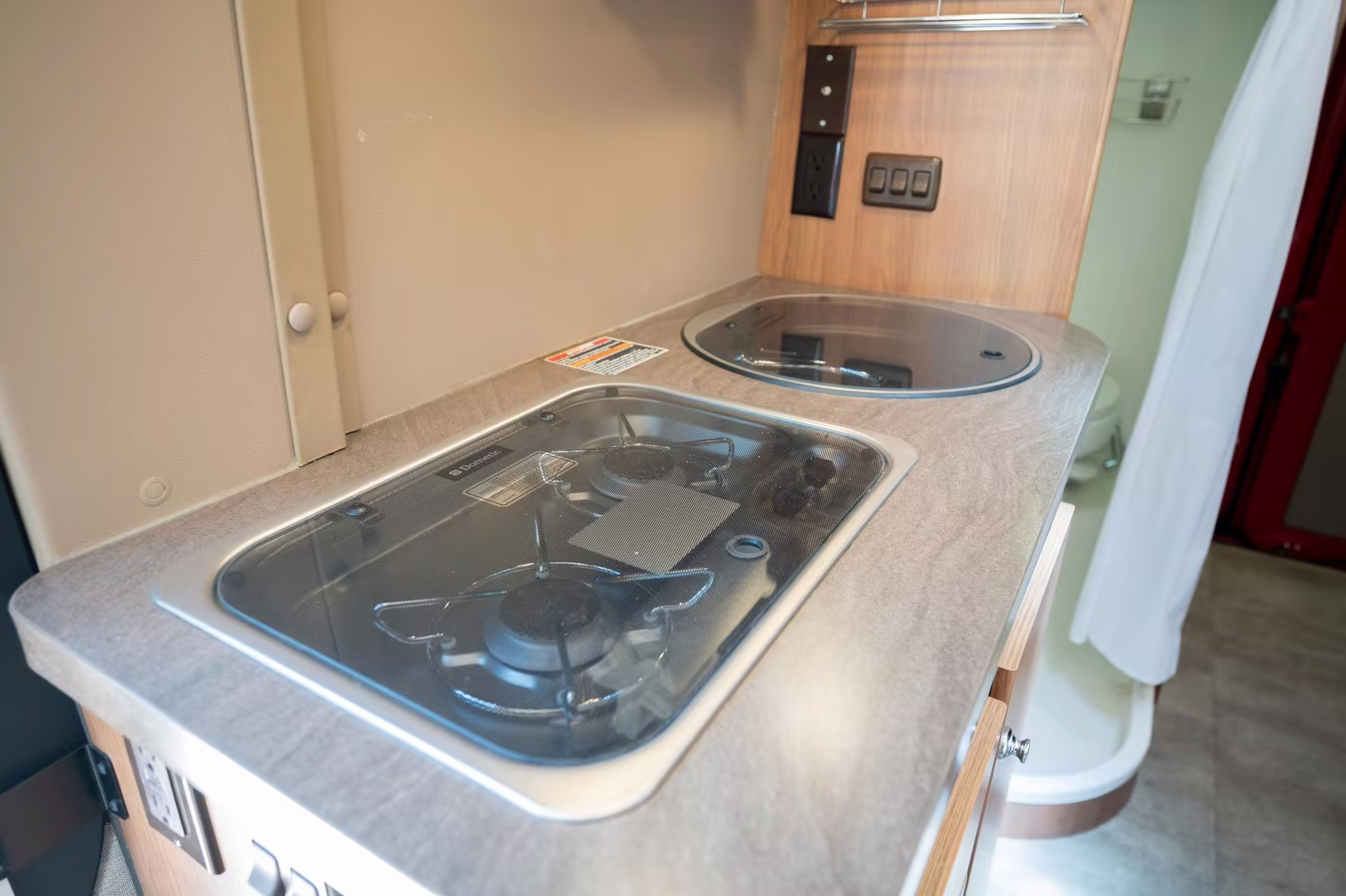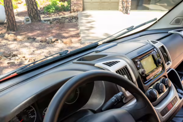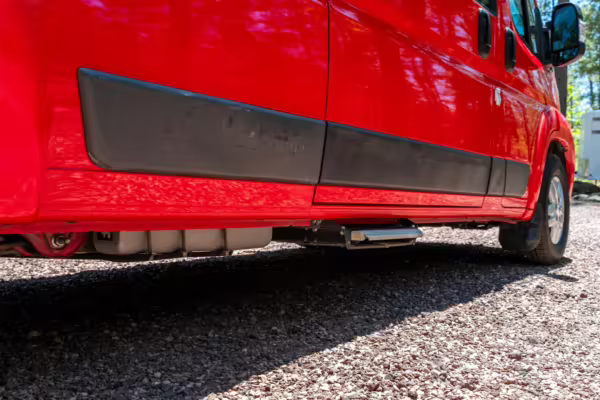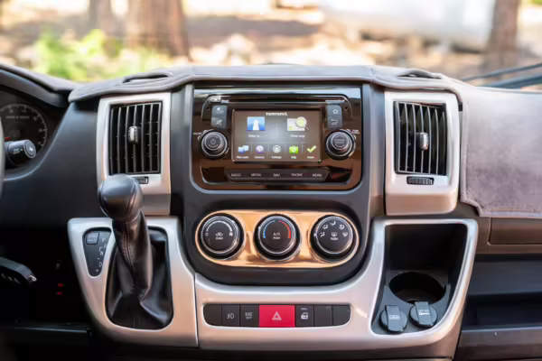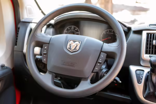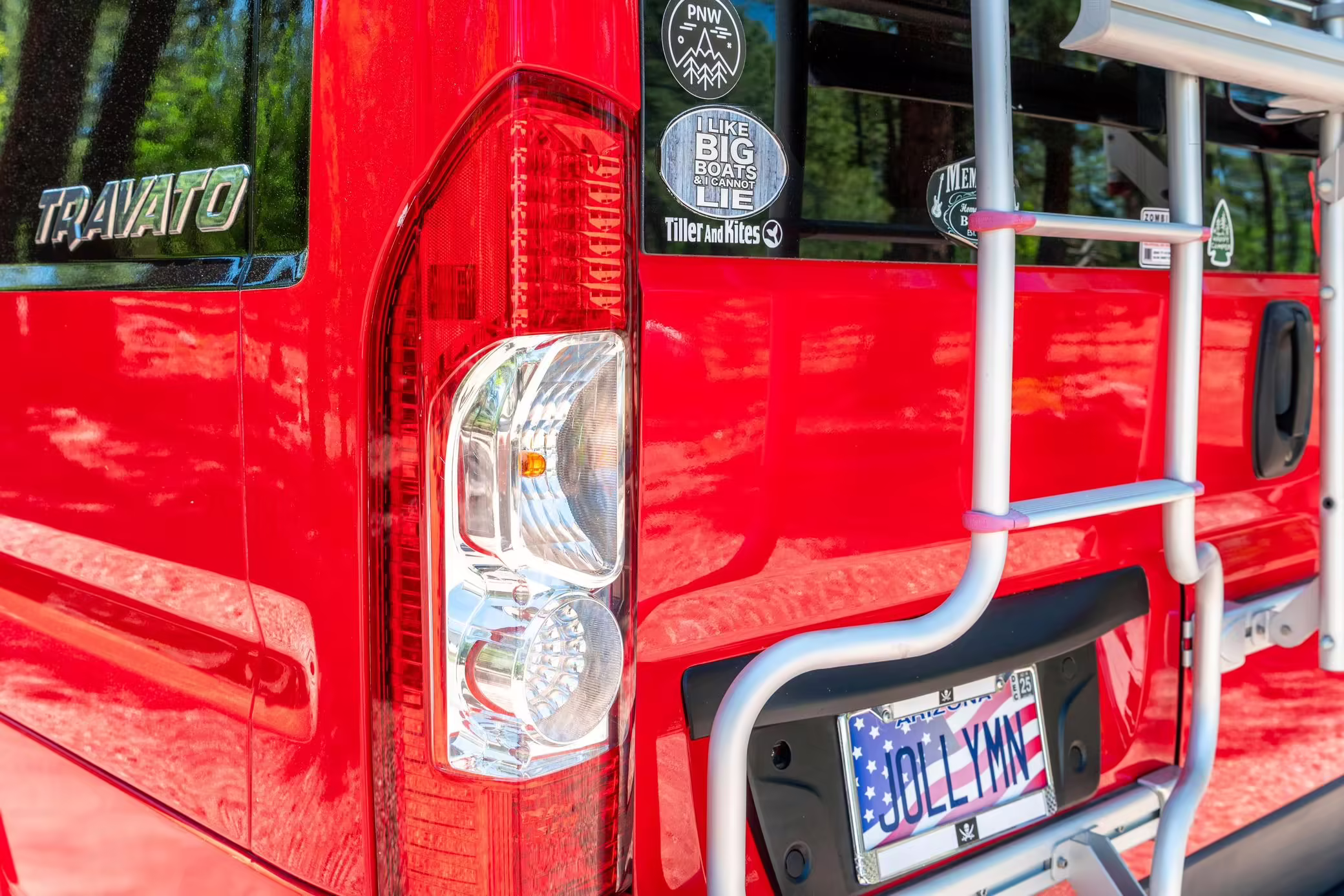 2015 Ram ProMaster 3500 Winnebago Travato, finished in Flame Red with a gray interior.