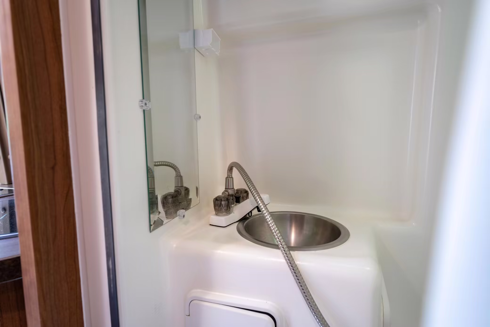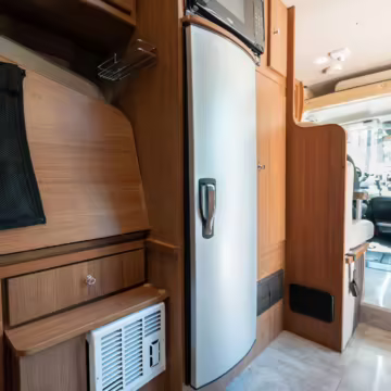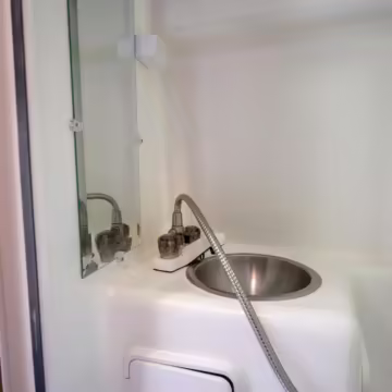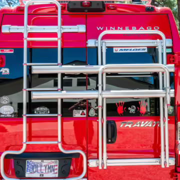 Built on a 2014 chassis and titled as a 2015 model, this ProMaster was converted into a camper by Winnebago. Notable modifications reported by the seller include a rear-mounted ladder, a bicycle rack, a roof rack, a rear bench seat, a 2-burner Dometic stove, a Dometic sink, a Dometic refrigerator, a High Point microwave, a folding bed, a shower with an integrated toilet, and household-type power outlets.