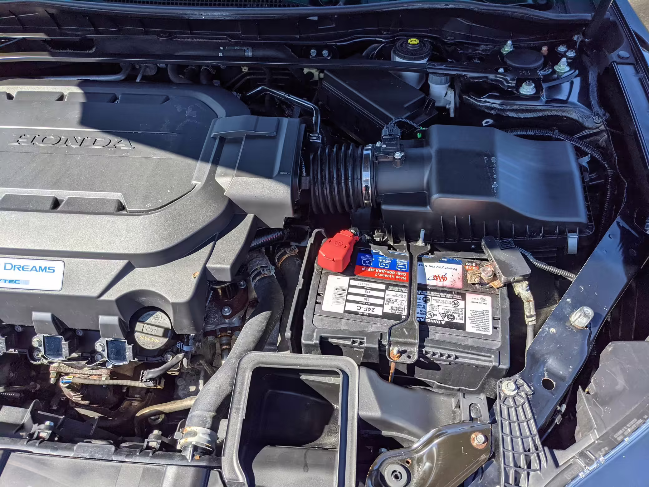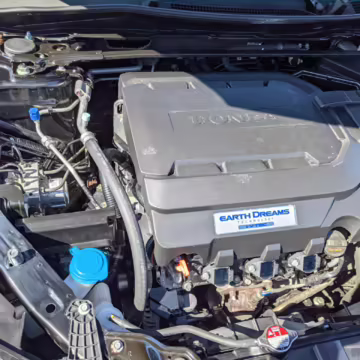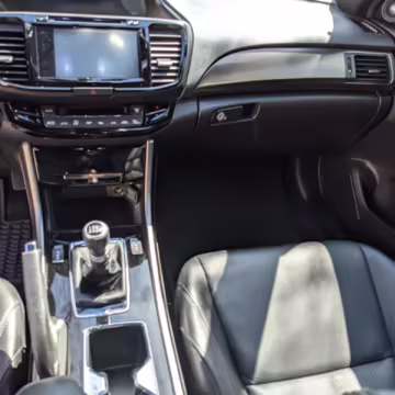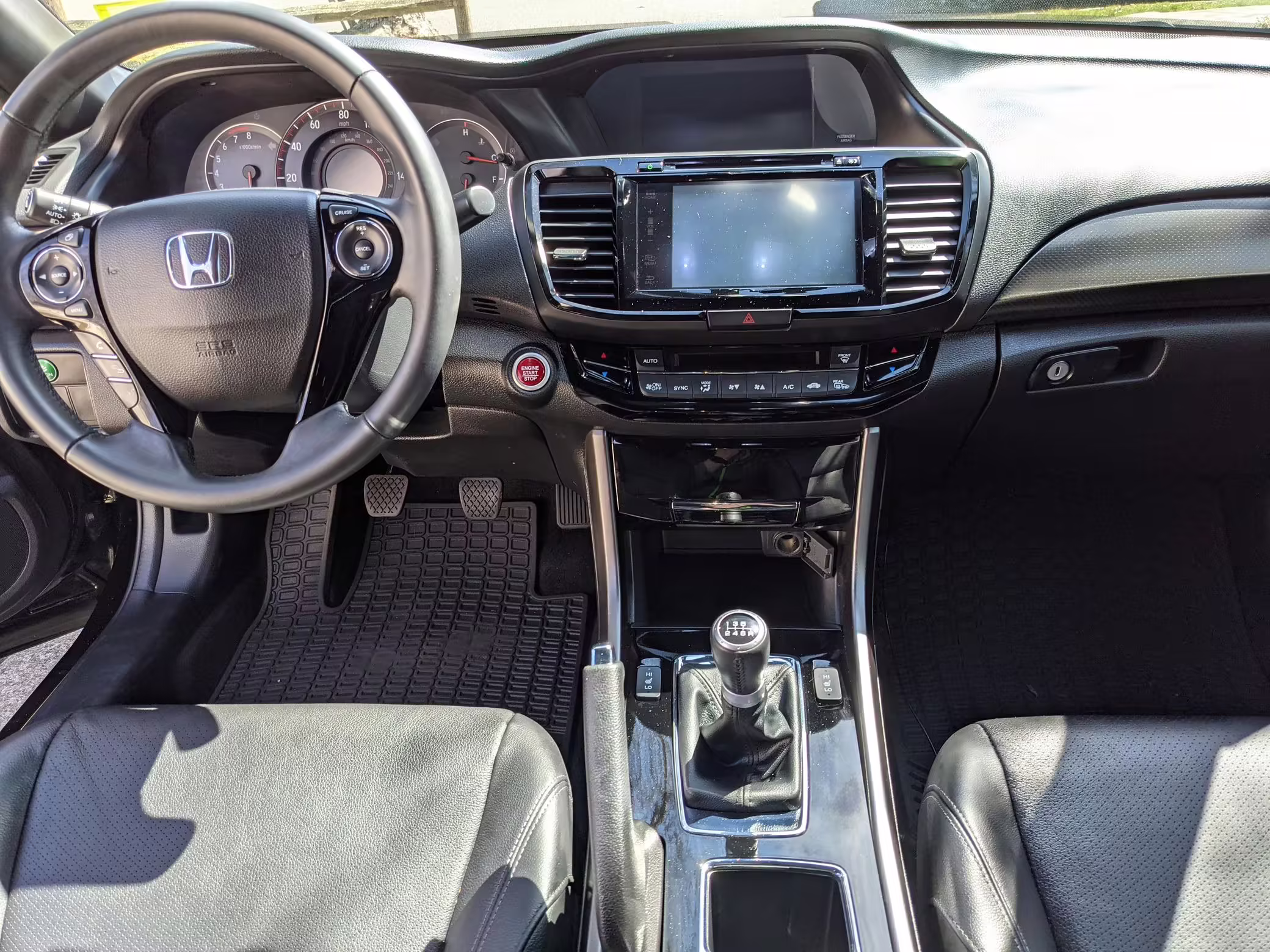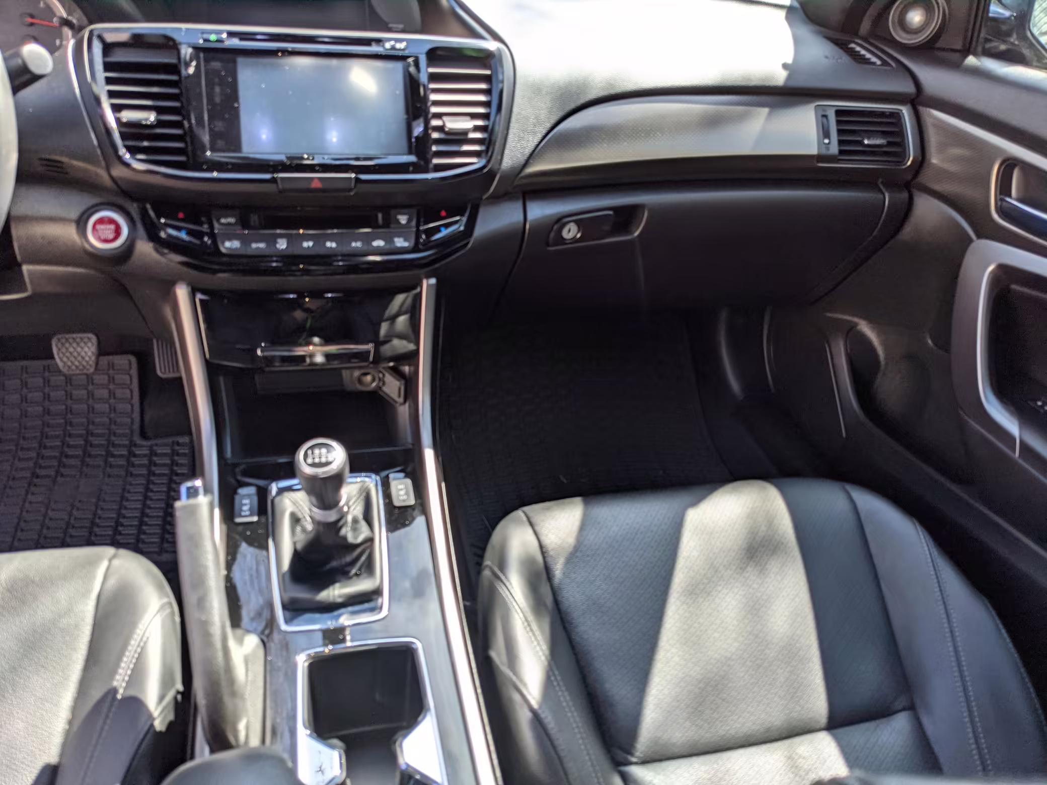 Power for this Accord comes from a 3.5-liter V6, which produces 278 horsepower and 252 lb-ft of torque. It spins the front wheels via a 6-speed manual transmission.