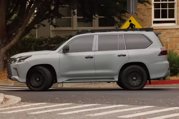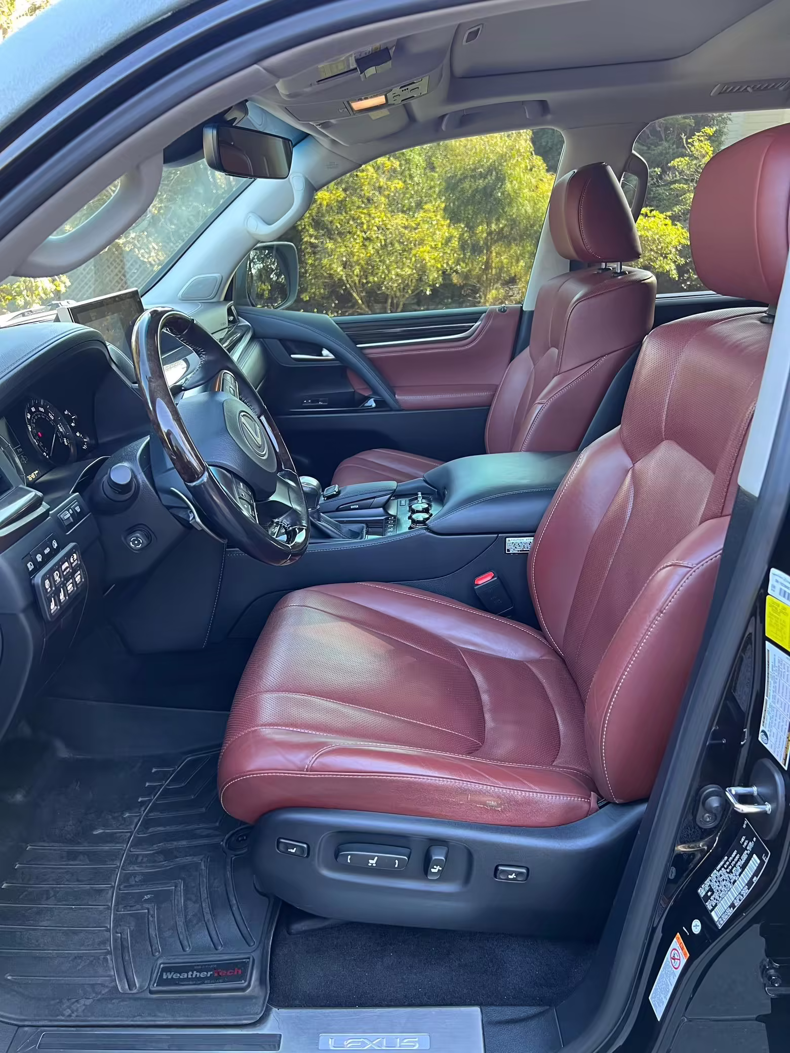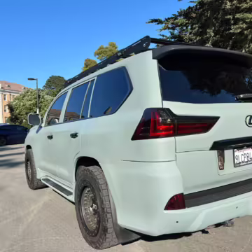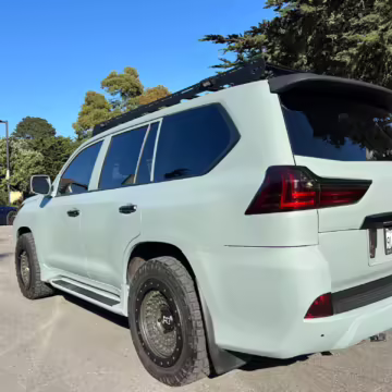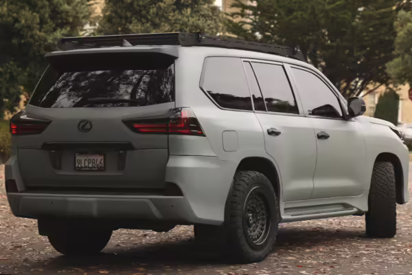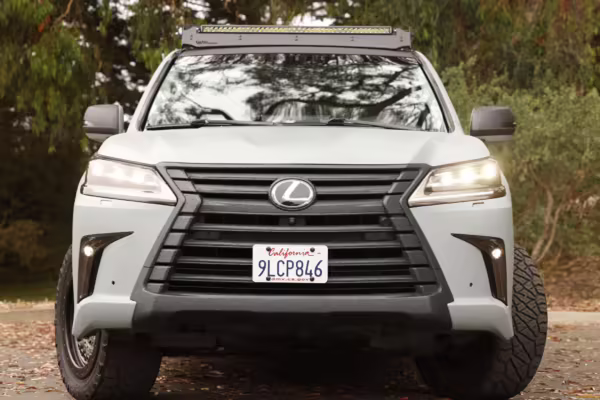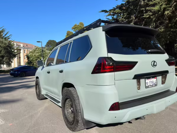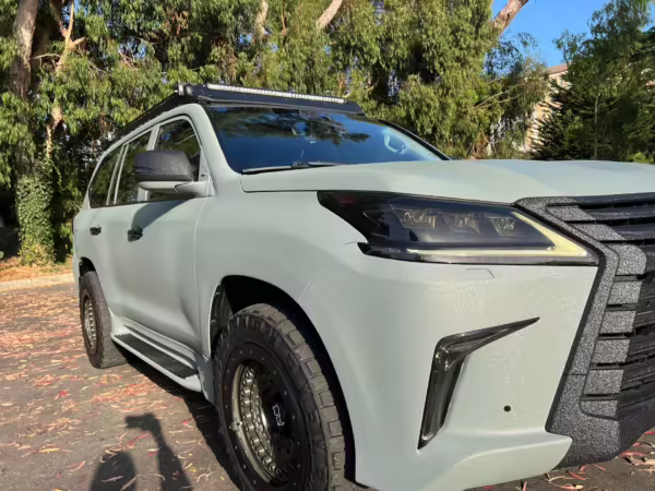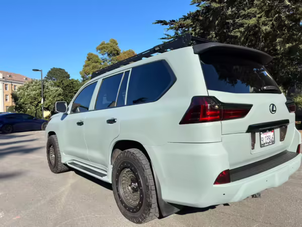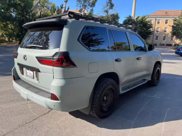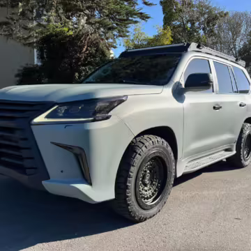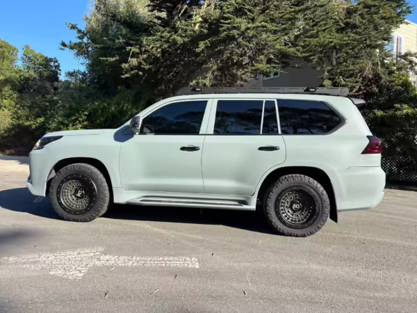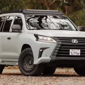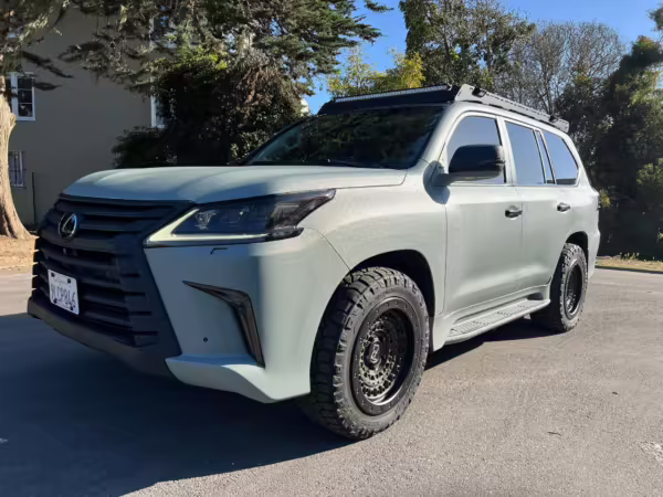 The Lexus LX 570 is a fantastic luxury SUV that touts a powerful V8, a capable 4-wheel drive system, and legendary Lexus reliability. This particular LX 570 features a gorgeous Cabernet interior, along with an exterior that’s been repainted with Tiffany Green Rhino Liner material. It’s also equipped with the Luxury Package – and it boasts some nice upgrades like 20-inch Black Rhino wheels, a Prinsu roof rack with an LED light bar, and ARB twin air compressors.