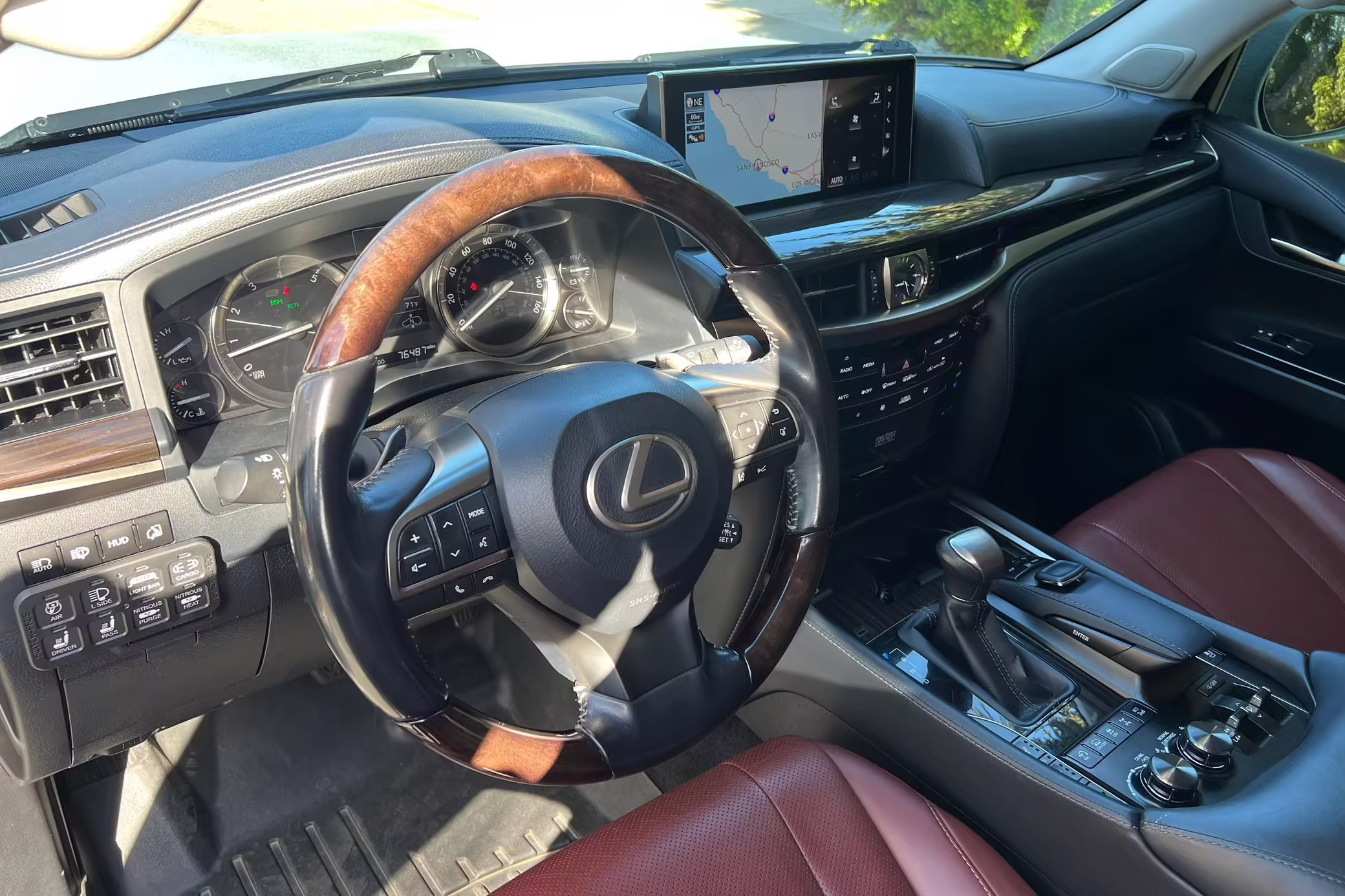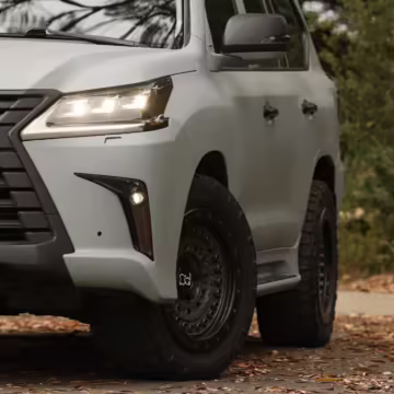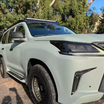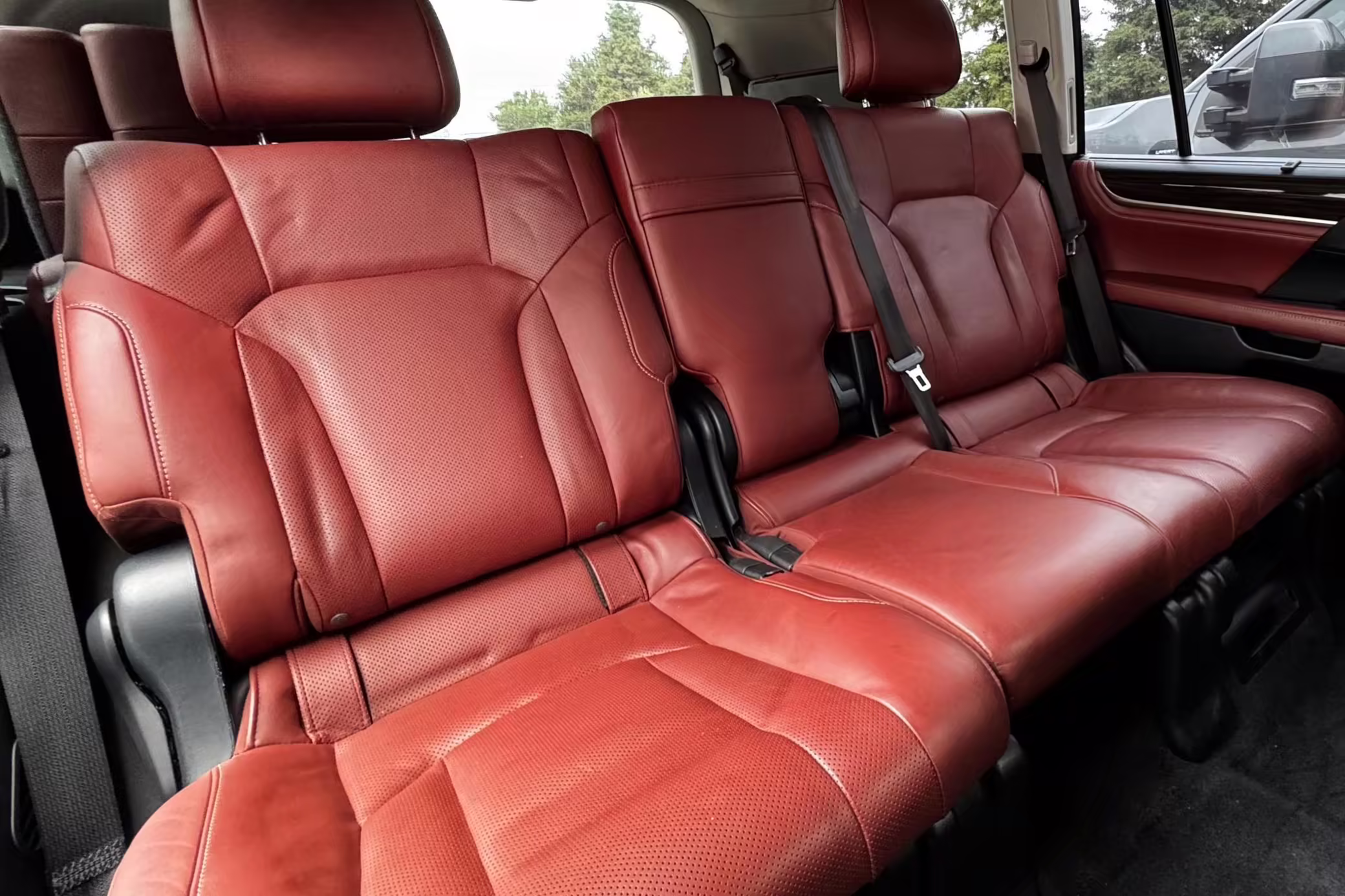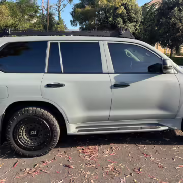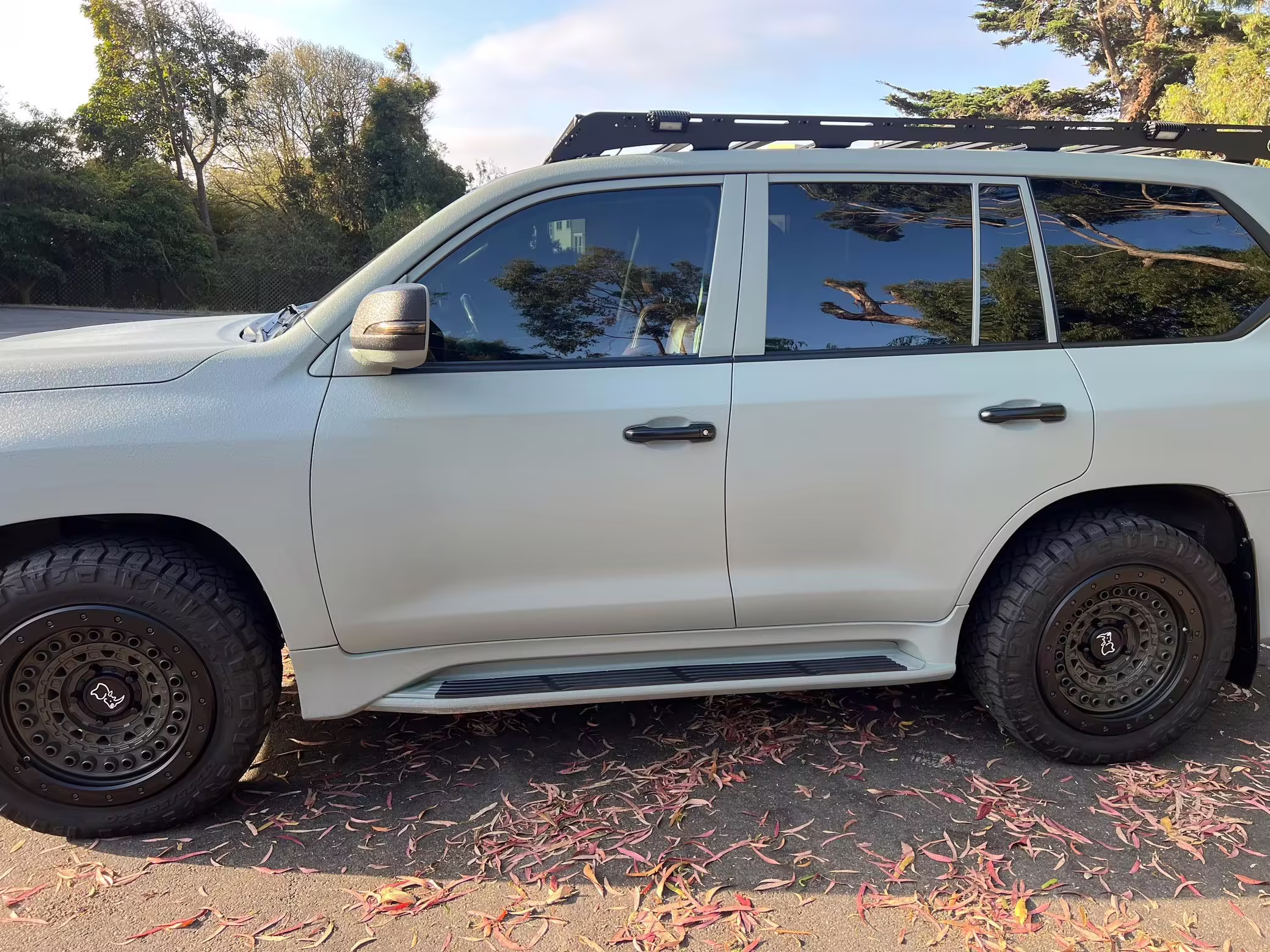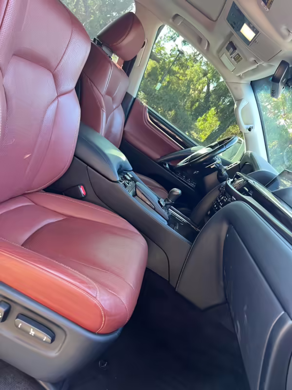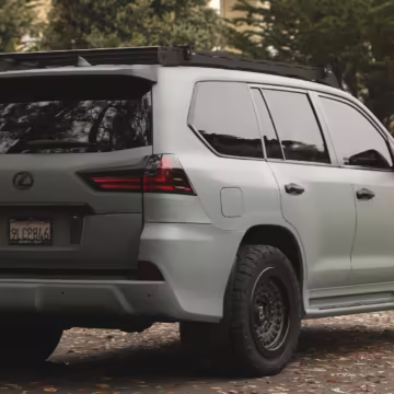The Lexus LX 570 is a fantastic luxury SUV that touts a powerful V8, a capable 4-wheel drive system, and legendary Lexus reliability. This particular LX 570 features a gorgeous Cabernet interior, along with an exterior that’s been repainted with Tiffany Green Rhino Liner material. It’s also equipped with the Luxury Package – and it boasts some nice upgrades like 20-inch Black Rhino wheels, a Prinsu roof rack with an LED light bar, and ARB twin air compressors.