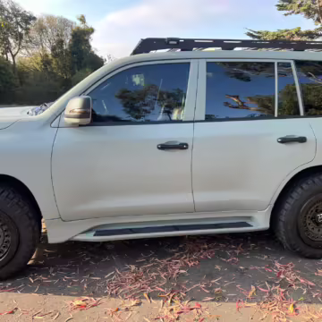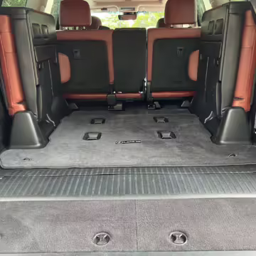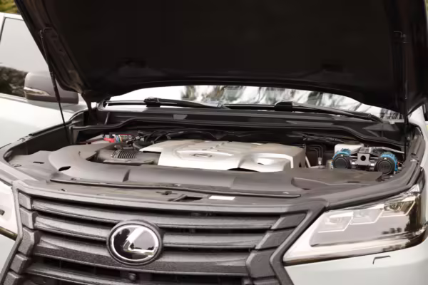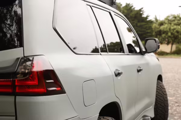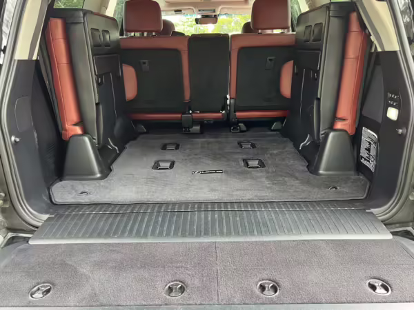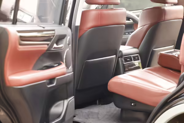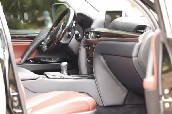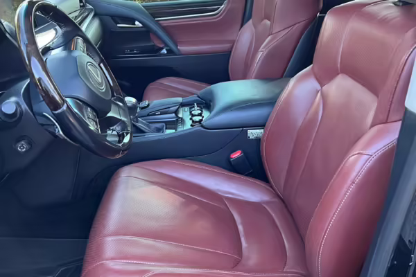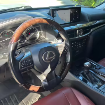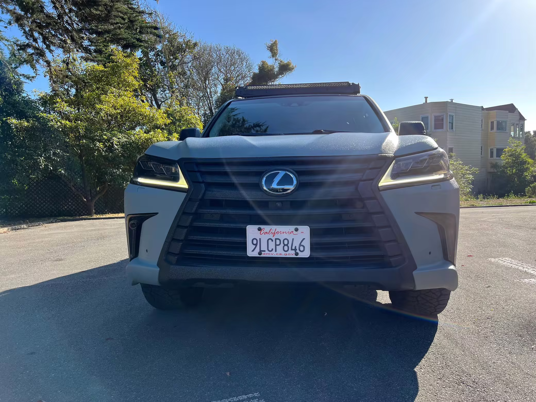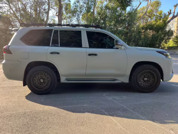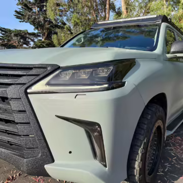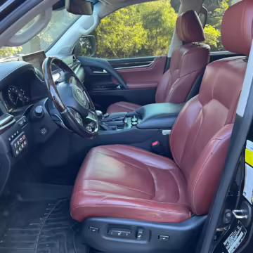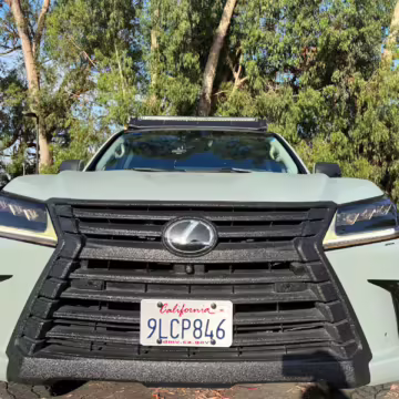 The Lexus LX 570 is a fantastic luxury SUV that touts a powerful V8, a capable 4-wheel drive system, and legendary Lexus reliability. This particular LX 570 features a gorgeous Cabernet interior, along with an exterior that’s been repainted with Tiffany Green Rhino Liner material. It’s also equipped with the Luxury Package – and it boasts some nice upgrades like 20-inch Black Rhino wheels, a Prinsu roof rack with an LED light bar, and ARB twin air compressors.