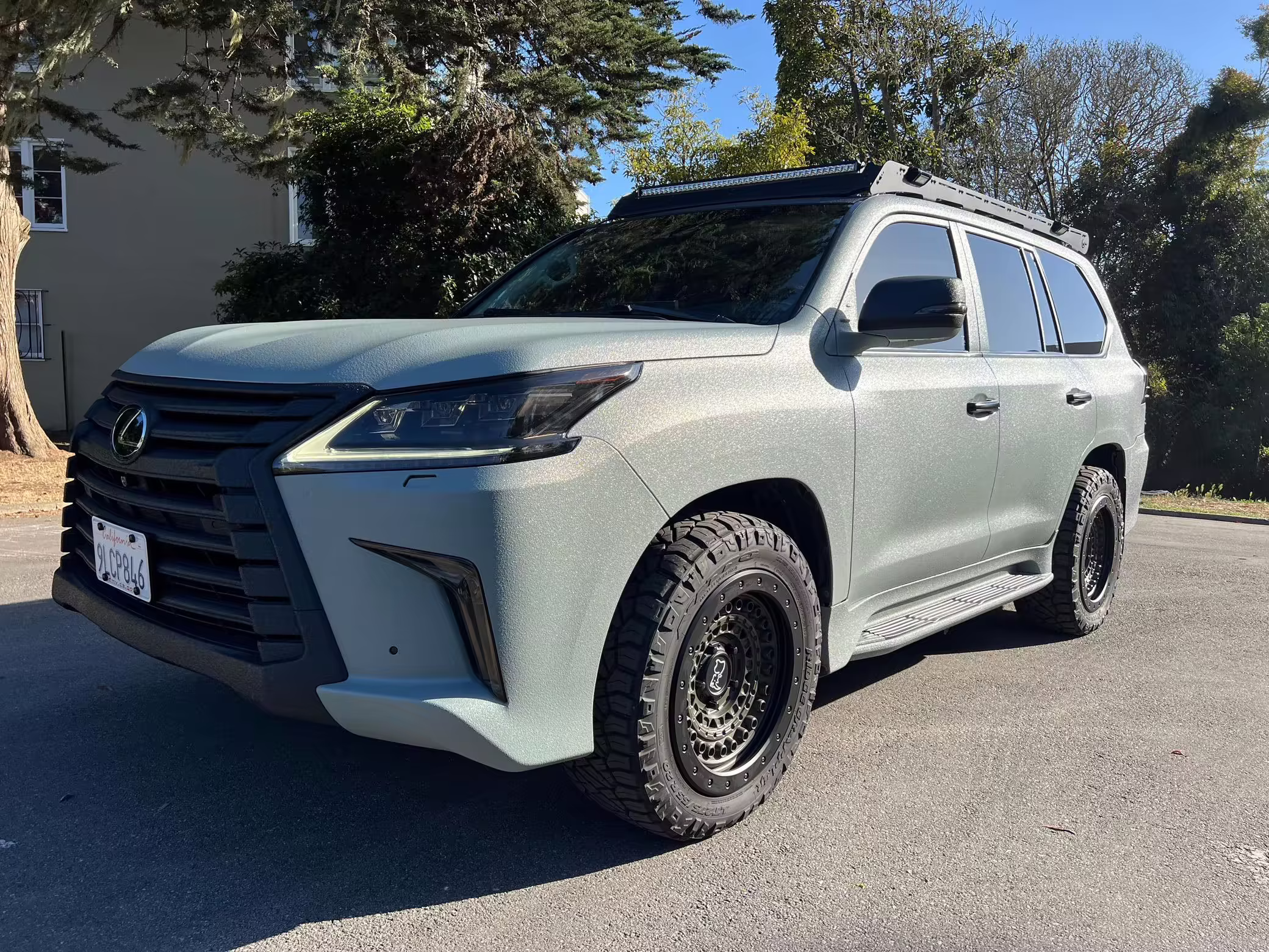 2016 Lexus LX 570, finished in Tiffany Green Rhino Liner textured coating with a Cabernet interior.