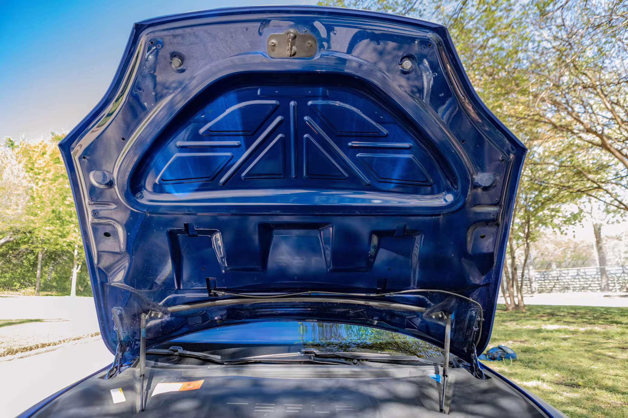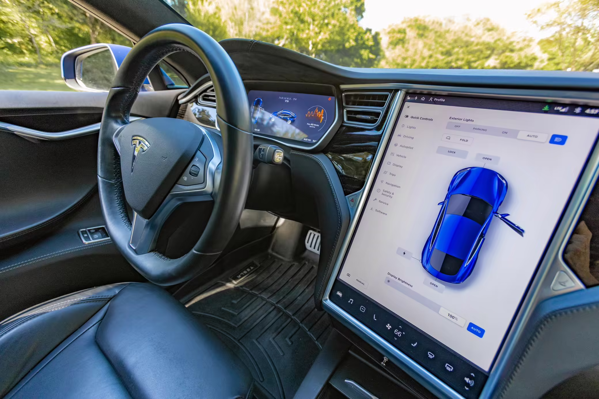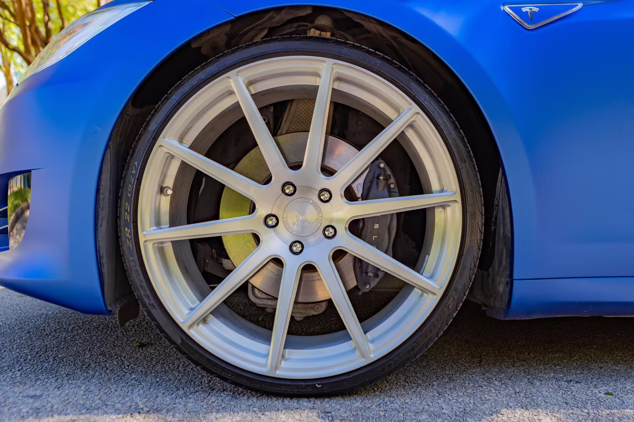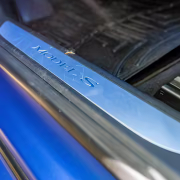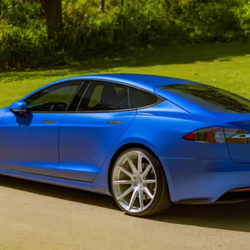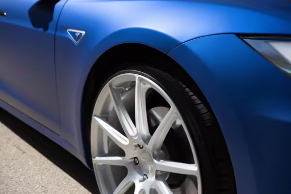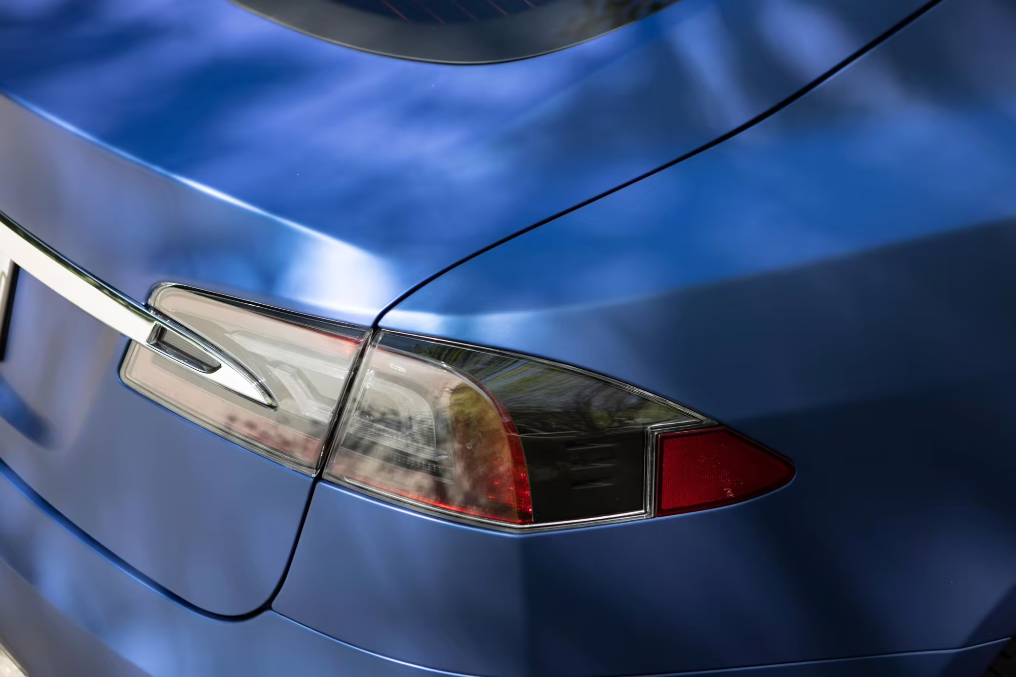 2016 Tesla Model S 75, finished in blue with an Avery Intelligent Blue wrap and a black leather interior.