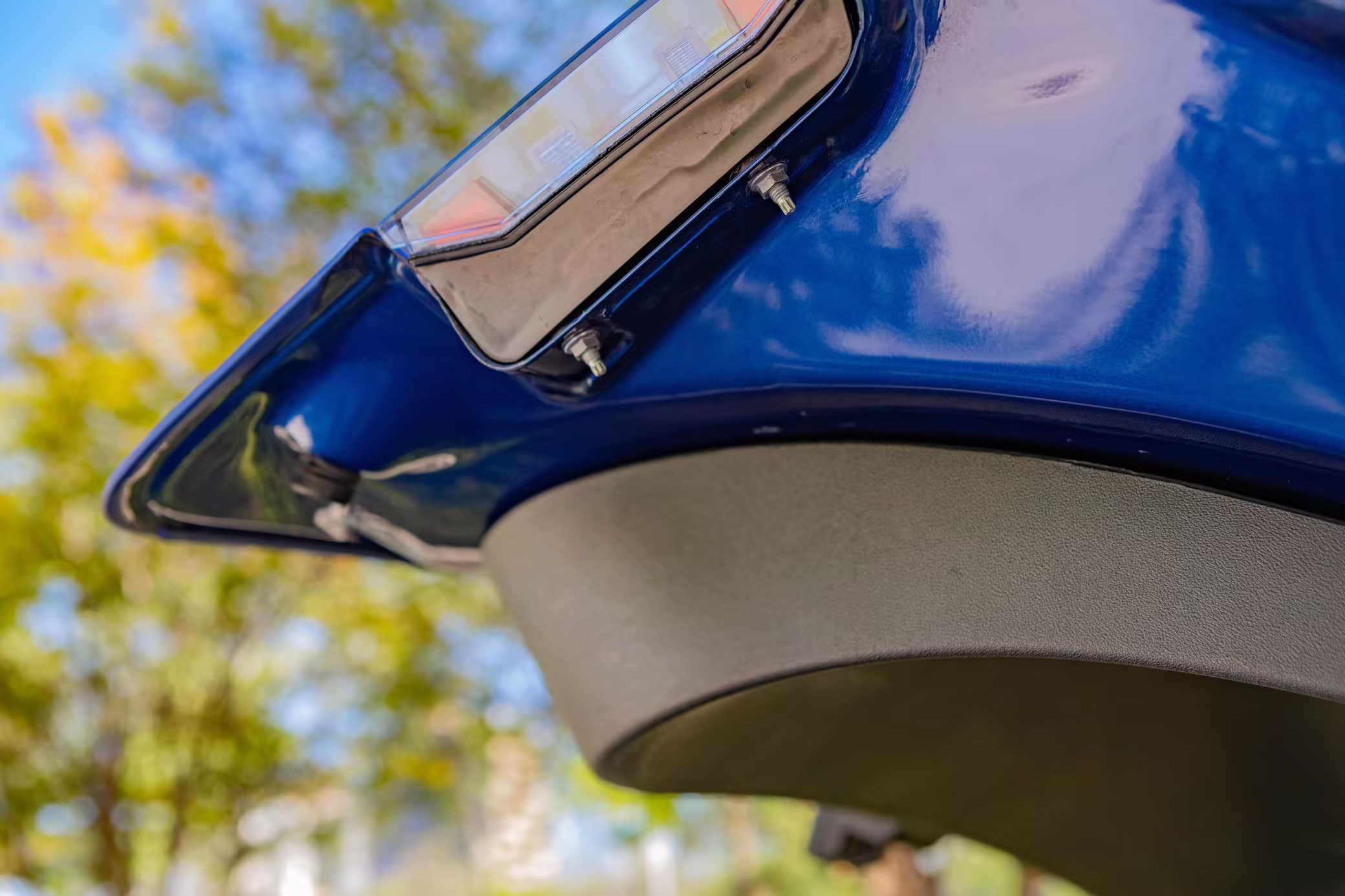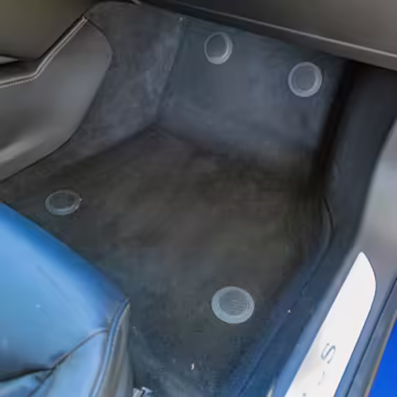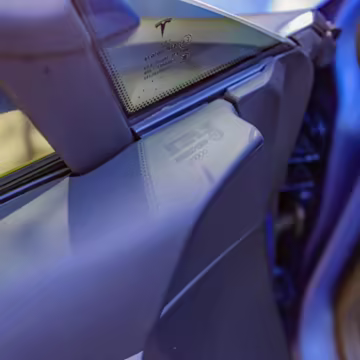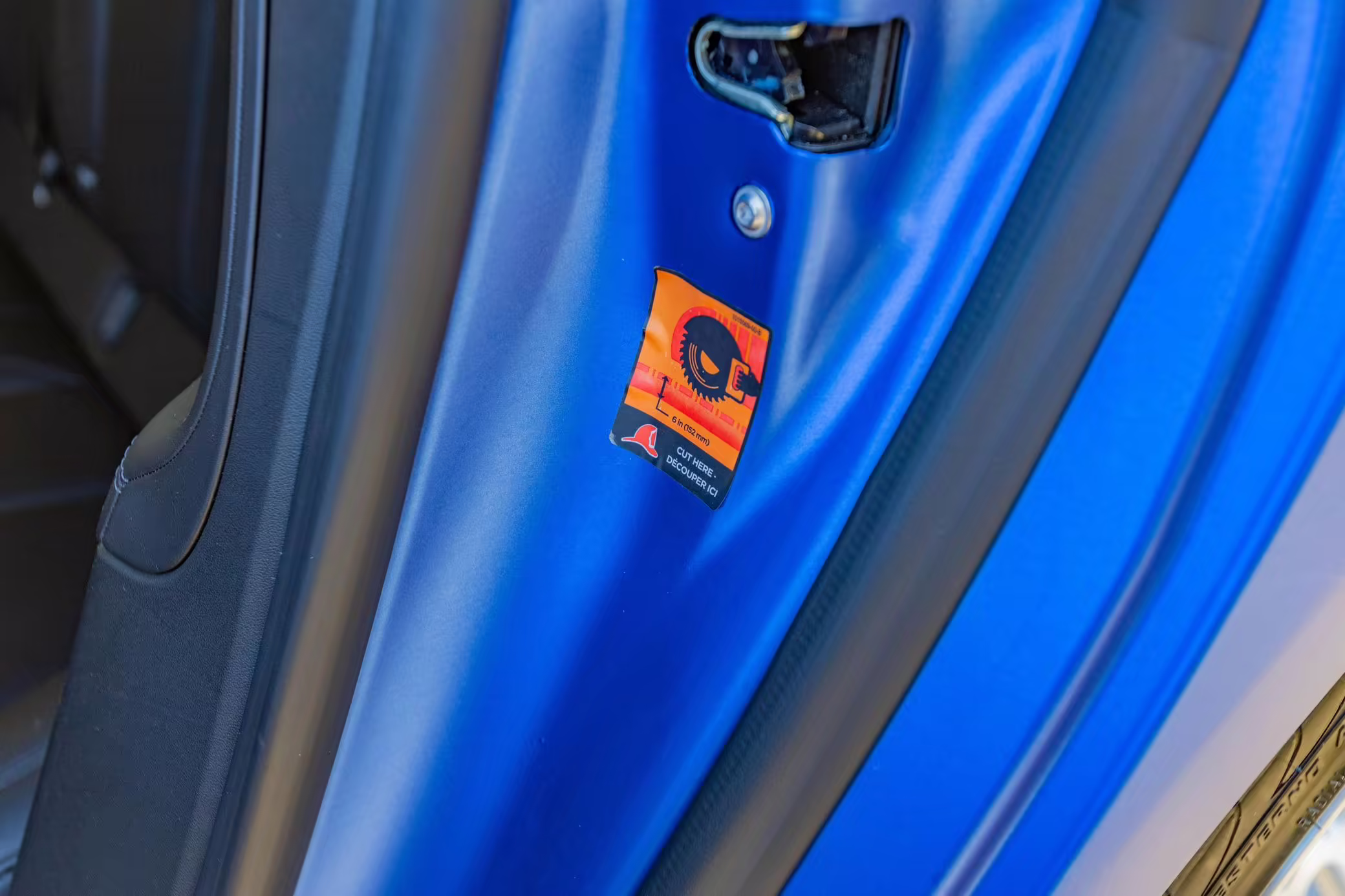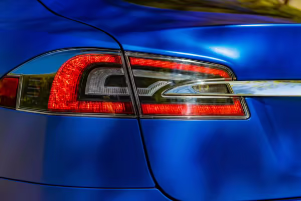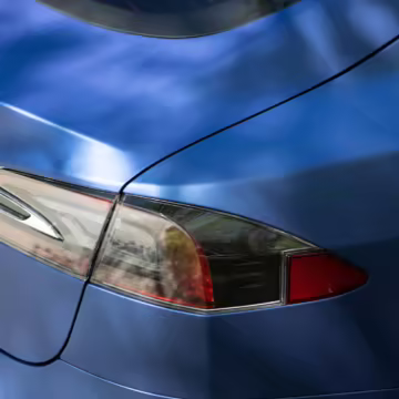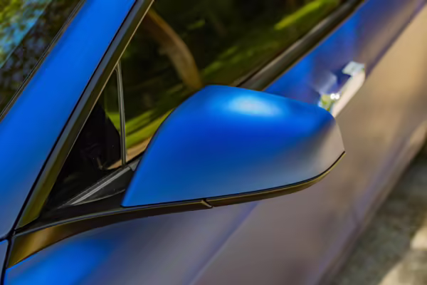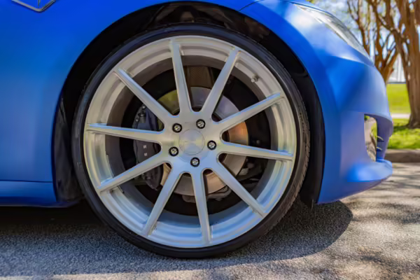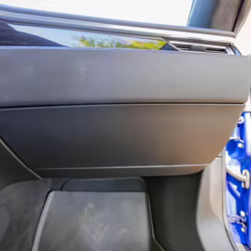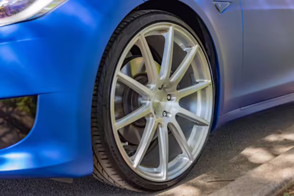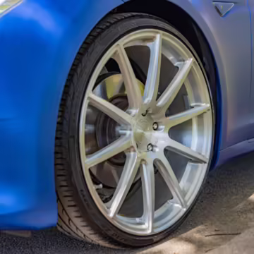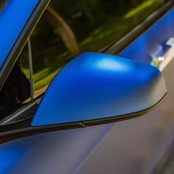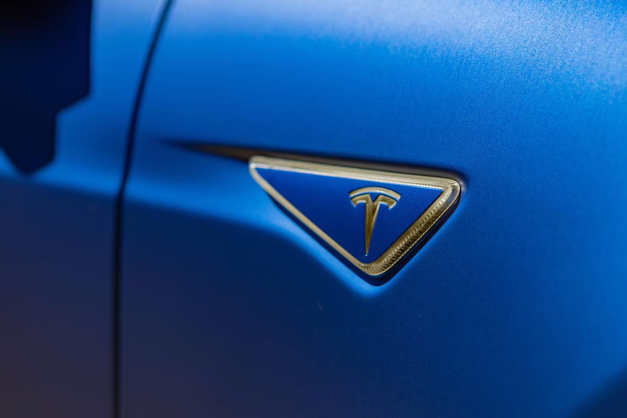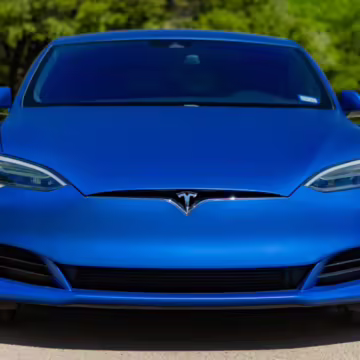 2016 Tesla Model S 75, finished in blue with an Avery Intelligent Blue wrap and a black leather interior.